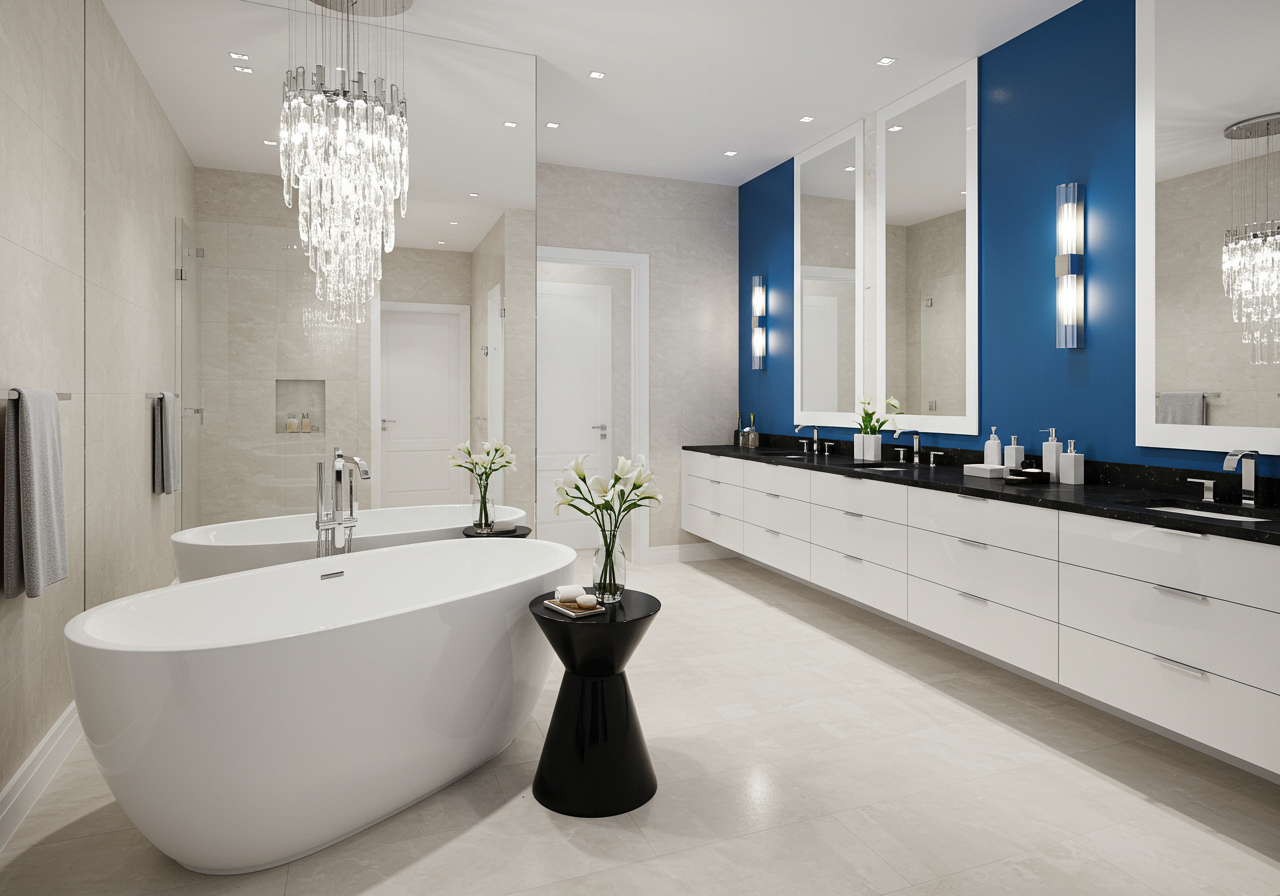 Next, consider adding a freestanding soaking tub or some double sinks with an extra-large mirror. The technology available in a luxurious, walk-in shower is nothing short of spectacular. You can equip the shower with temperature controls, pressure adjustments, and variable nozzle types. Each member of the household can even have their own individual settings.