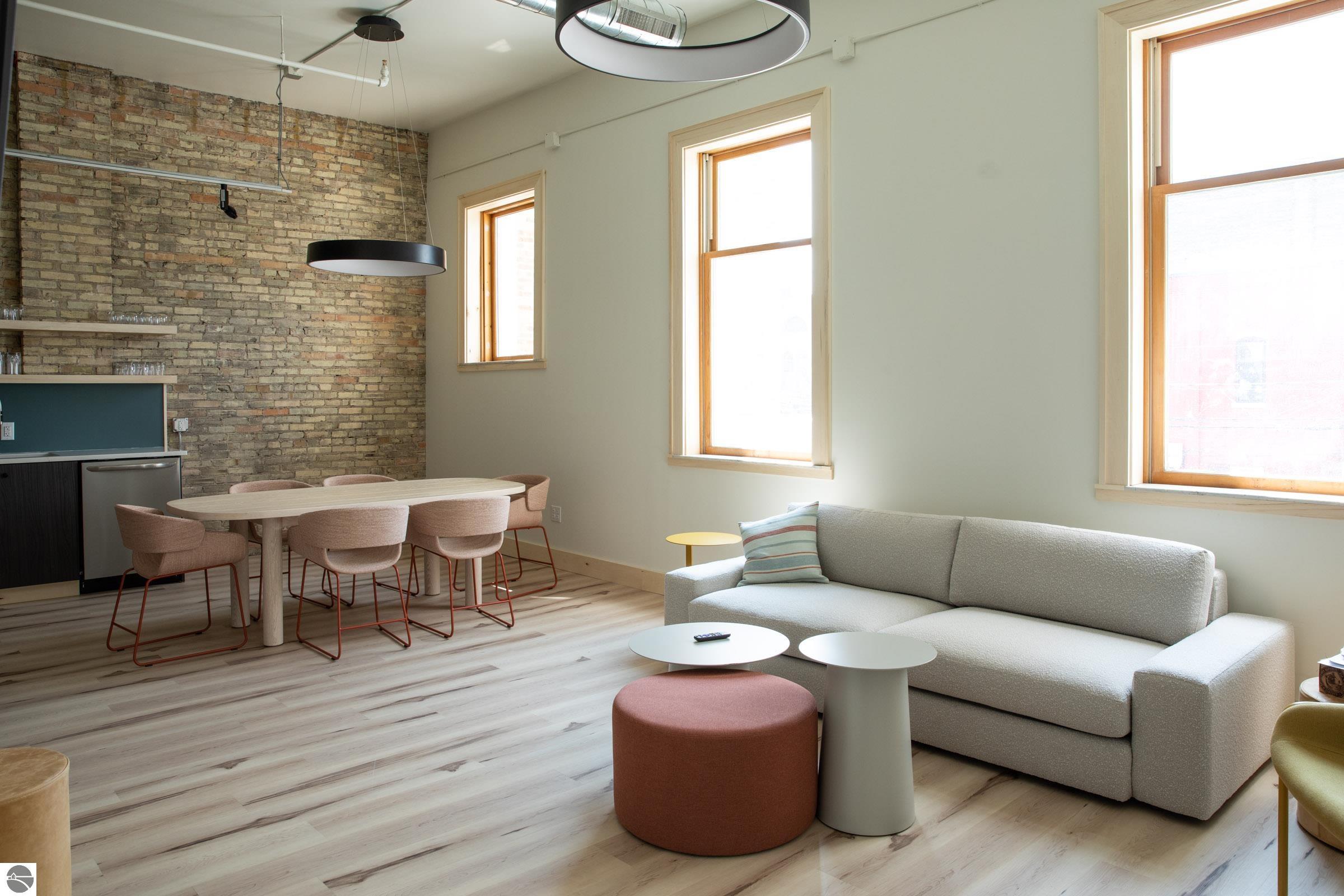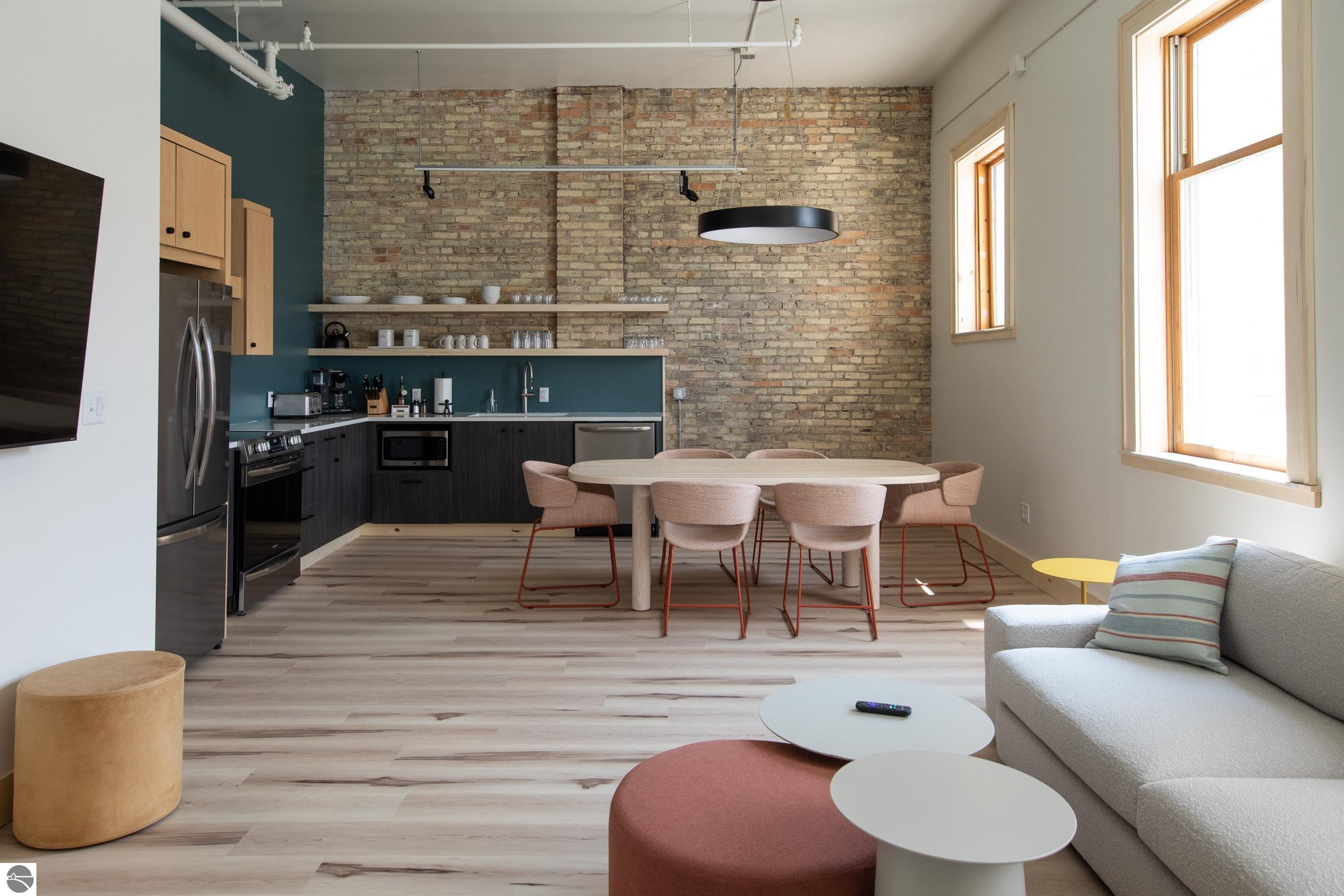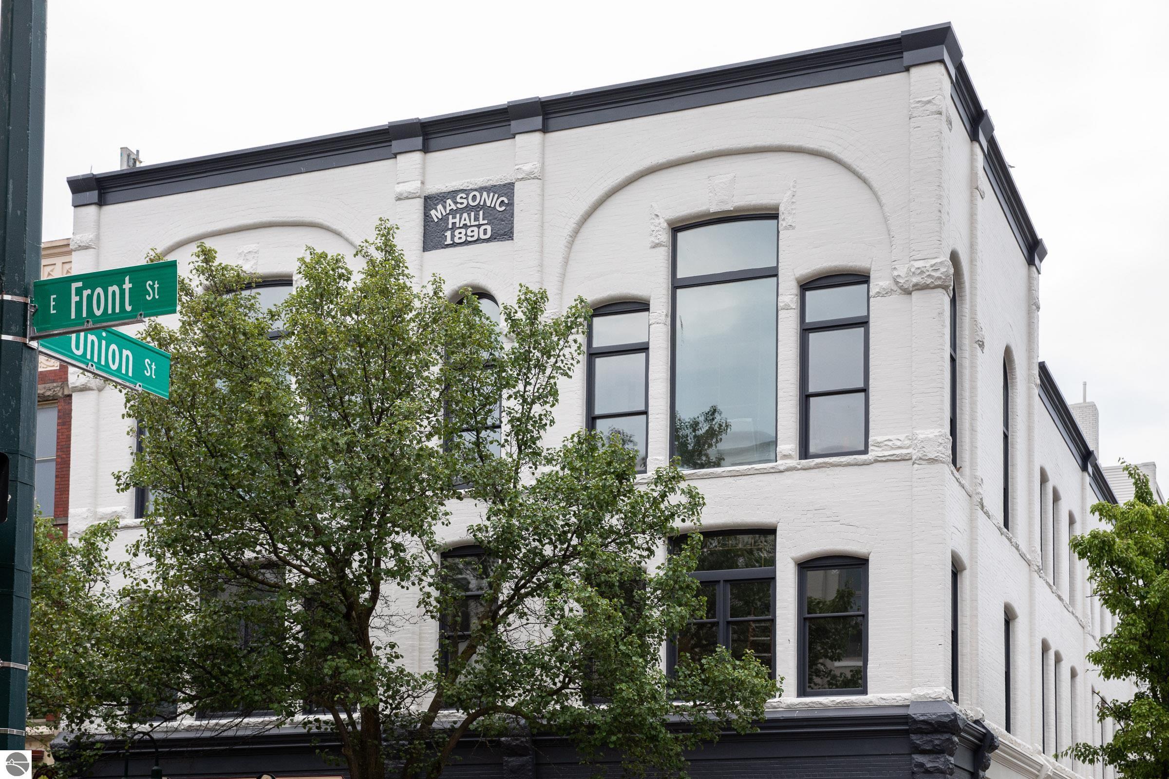 Introducing The Flats at Front + Union, a rare collection of seven residences nestled within the historic building at 100 East Front St, one of Traverse City's most iconic corners. Each flat has been thoughtfully designed to honor the history and character of the building while blending in the comfort of modern luxury and an unmistakable urban feel. These beautiful flats range from spacious 2-bedroom, 2-bath to 3-bedroom, 3-bath layouts, including two stunning corner signature flats. These special corner flats boast dramatic floor-to-ceiling windows, capturing light and views of west bay and the perfect vantage point to take in the heartbeat of downtown living. This collection is a rare opportunity in Traverse City offering elevator access to your floor, a leased private parking space right outside the building and a "coming soon" rooftop oasis. The over 3,000 square foot rooftop, designed by Environment Architects lead Ray Kendra will have private lounge spaces, an indoor/outdoor entertaining and cocktail kitchen and grilling stations -- all designed with unforgettable views. The Flats are modern simplicity at its best, six of the seven appointed spaces are being sold fully furnished -- right down to the furniture and bedding -- making them an effortless turnkey opportunity. The limited number inside this historic building will keep your investment strong while giving you peace of mind to lock and leave knowing the building is well cared for. Three thoughtfully designed entry points -- from the private parking area, Front Street, and Union Street -- provide convenient access for owners. Situated in the heart of downtown, The Flats at Front + Union are just steps from everything Traverse City has to offer. This 2023 complete renovation in one of Traverse City's most historic buildings was curated by a local family, designed by renowned local architect firm, Environment Architects and built to perfection by local contractors.
