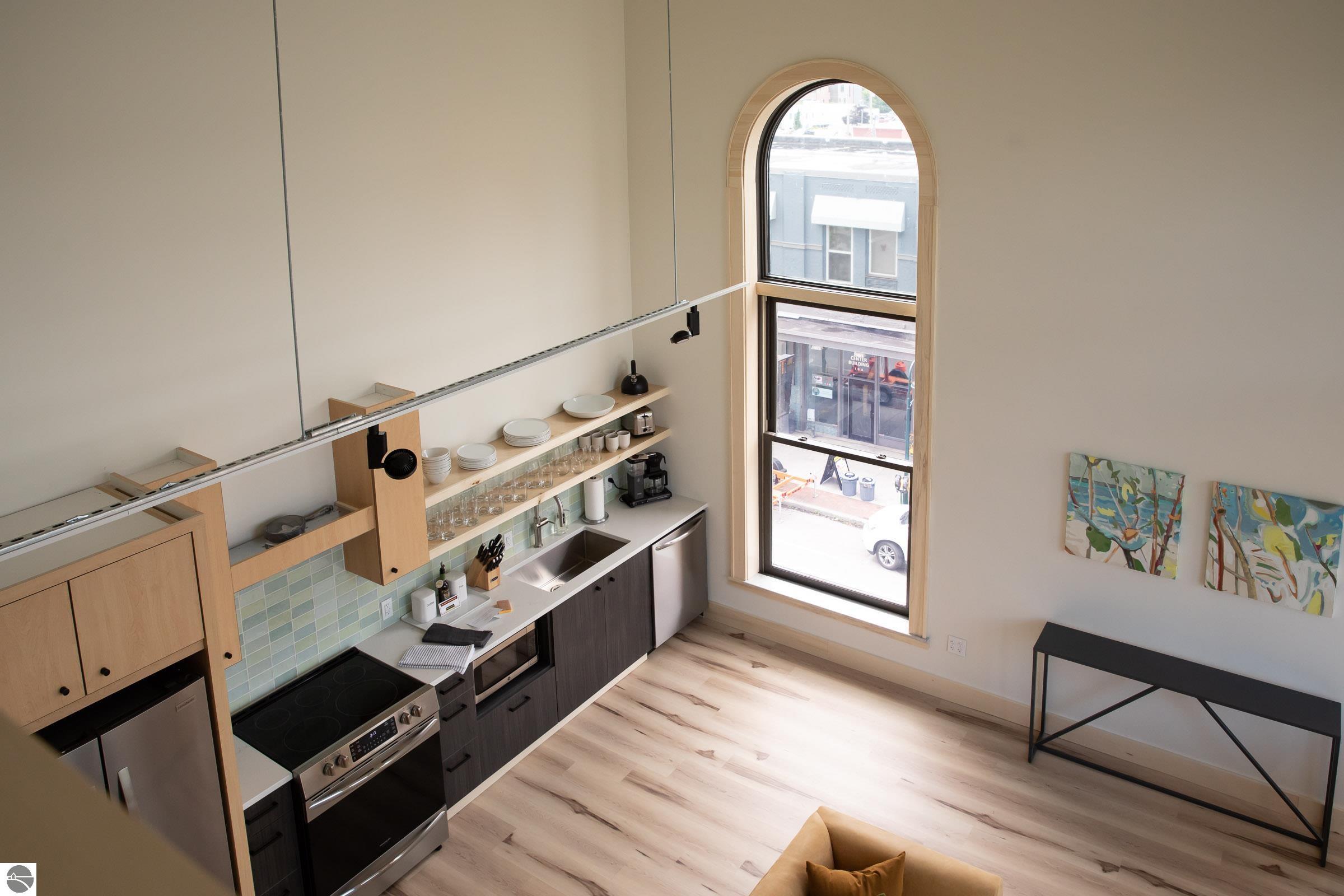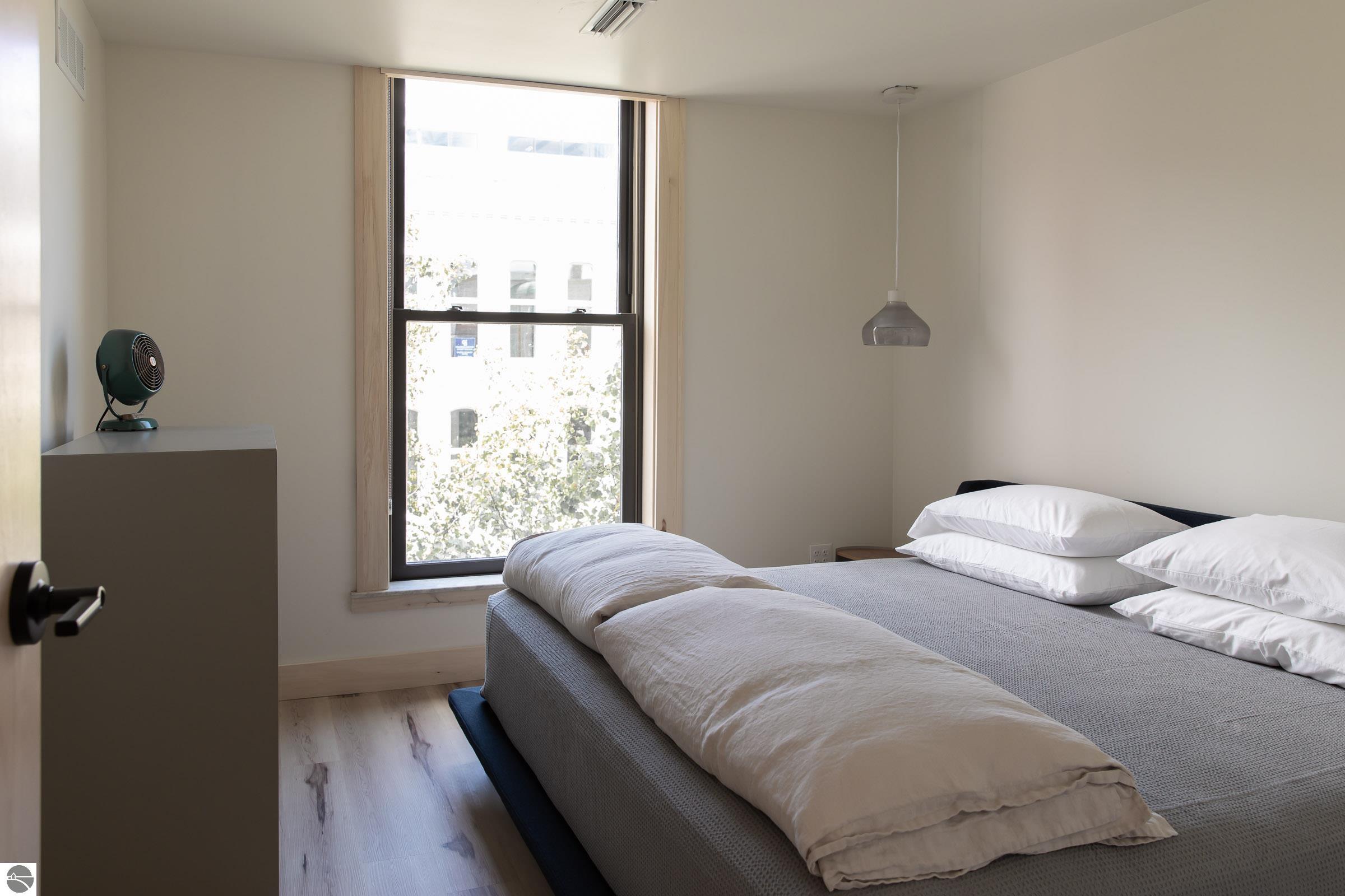 Introducing The Flats at Front + Union, a rare collection of seven residences nestled within the historic building at 100 East Front St, one of Traverse City's most iconic corners. Each flat has been thoughtfully designed to honor the history and character of the building while blending in the comfort of modern luxury and an unmistakable urban feel. These beautiful flats range from spacious 2-bedroom, 2-bath to 3-bedroom, 3-bath layouts, including two stunning corner signature flats. These special corner flats boast dramatic floor-to-ceiling windows, capturing light and views of west bay and the perfect vantage point to take in the heartbeat of downtown living. This collection is a rare opportunity in Traverse City offering elevator access to your floor, a leased private parking space right outside the building and a "coming soon" rooftop oasis. The over 3,000 square foot rooftop, designed by Environment Architects lead Ray Kendra will have private lounge spaces, an indoor/outdoor entertaining and cocktail kitchen and grilling stations -- all designed with unforgettable views. The Flats are modern simplicity at its best, six of the seven appointed spaces are being sold fully furnished -- right down to the furniture and bedding -- making them an effortless turnkey opportunity. The limited number inside this historic building will keep your investment strong while giving you peace of mind to lock and leave knowing the building is well cared for. Three thoughtfully designed entry points -- from the private parking area, Front Street, and Union Street -- provide convenient access for owners. Situated in the heart of downtown, The Flats at Front + Union are just steps from everything Traverse City has to offer. This 2023 complete renovation in one of Traverse City's most historic buildings was curated by a local family, designed by renowned local architect firm, Environment Architects and built to perfection by local contractors.