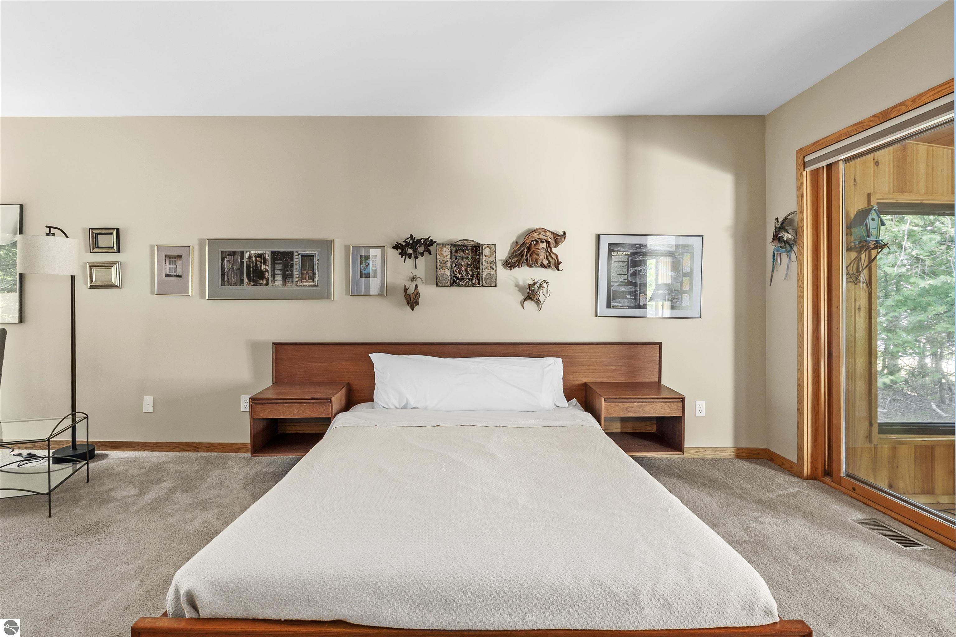 This stunning approximately 3900' sq.ft. custom home offers 4 bedrooms, 4 baths, and a 2-car garage, nestled on just under 10 acres of serene northern Michigan waterfront. With 150 feet of private Grand Traverse Bay to yourself, you will enjoy a wide, sandy beach and the soothing hues of blue-green waters stretching out before you. Perfect for swimming, boating, or simply relaxing, this is the kind of setting that makes every day feel like a getaway. The layout of the home is perfect for entertaining family and friends with bedroom and bathroom space on both levels. 2 separate family living areas and lots of deck and screen porch space to get away from the hustle bustle and enjoy downtime. Conveniently located only 15 minutes from downtown Elk Rapids and a short drive to both Traverse City and Charlevoix, this rare offering combines privacy, space, and world-class waterfront living. An exceptional opportunity to own your piece of paradise on the bay.