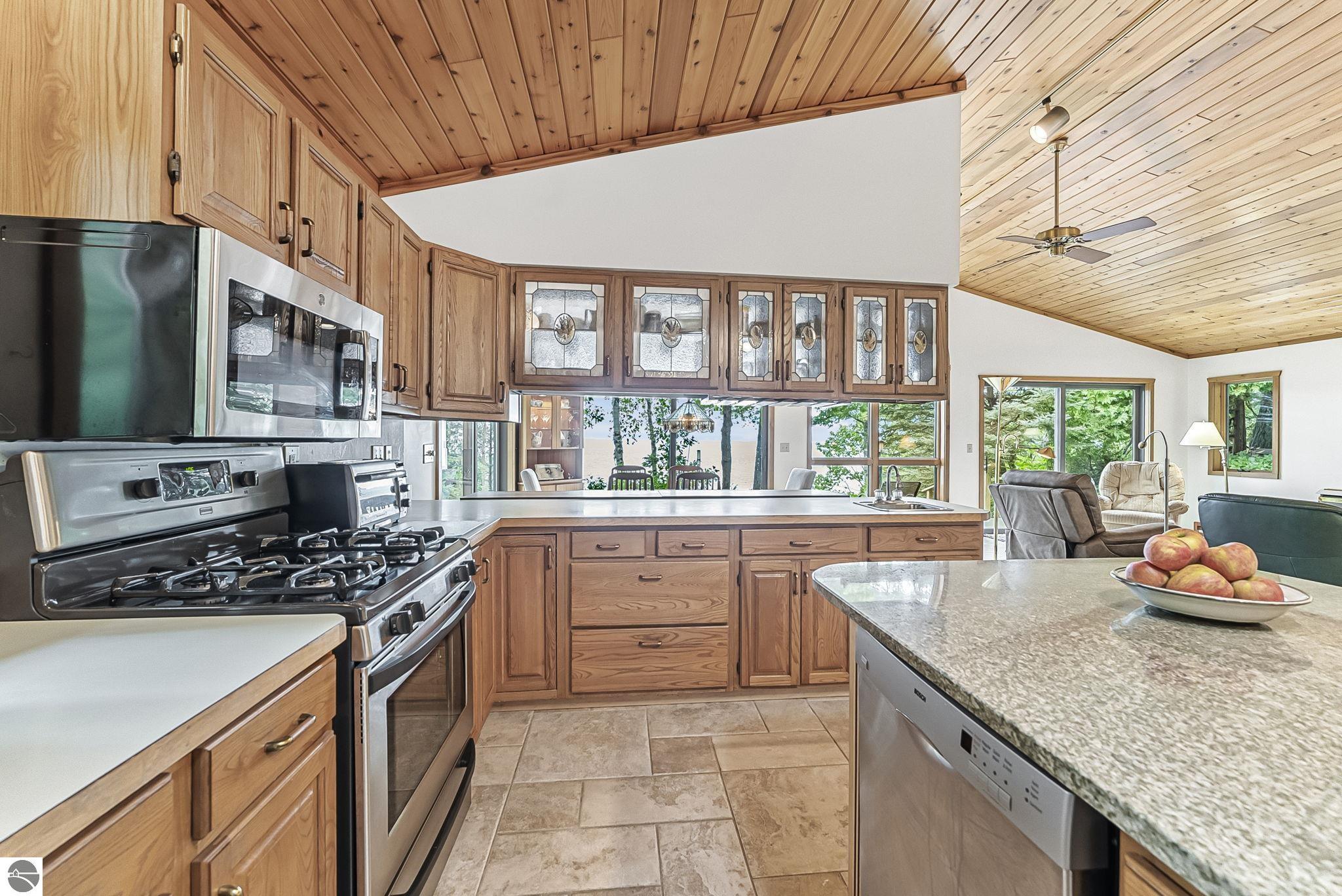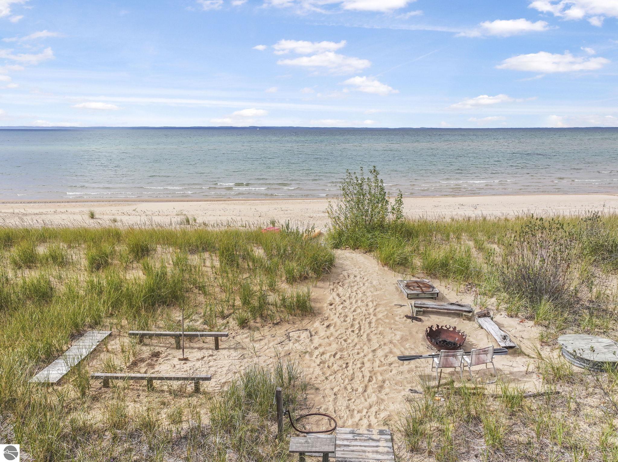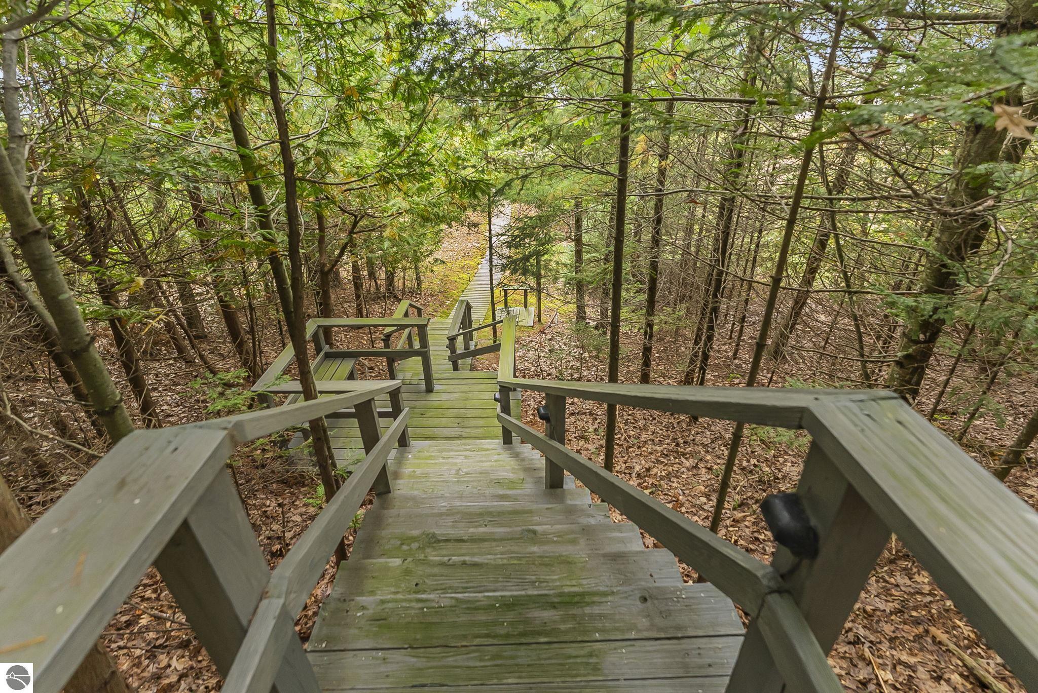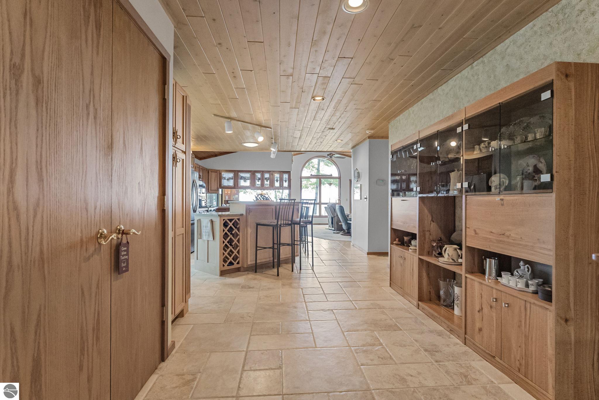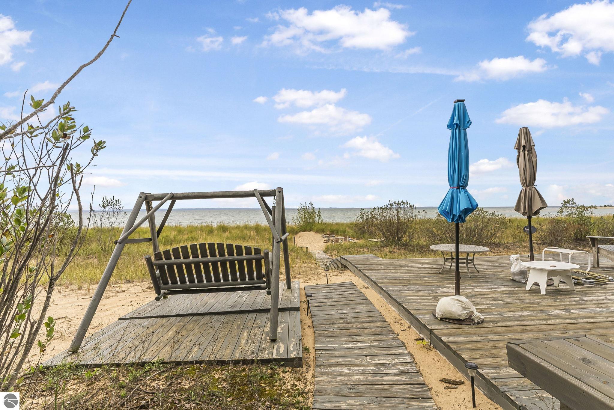 This stunning home along the coveted San Marino Trail in Kewadin--ideally located between Elk Rapids and Charlevoix--offers the perfect Up North retreat. Whether used as a primary residence or a vacation getaway, it blends privacy, comfort, and spectacular views of Grand Traverse Bay. Set on gorgeous, pristine frontage and surrounded by hardwoods, the property features expansive decks and outdoor living areas, combining seclusion with breathtaking scenery. Inside, the open design with soaring ceilings and walls of windows brings the outdoors in. The large kitchen flows seamlessly to a spacious living area and dining room, while multiple gathering spaces provide plenty of room for entertaining or relaxing. The thoughtful layout includes 2 main-floor bedrooms, four baths, and office space or potential for five bedrooms if needed. The lower level has a large living area with laundry and 2 additional bedrooms. A designated space for a future elevator supports aging in place, and a whole-house generator ensures peace of mind during inclement weather. This home truly has it all: stunning views, flexible living spaces, and an unbeatable location. Don't miss this rare opportunity.