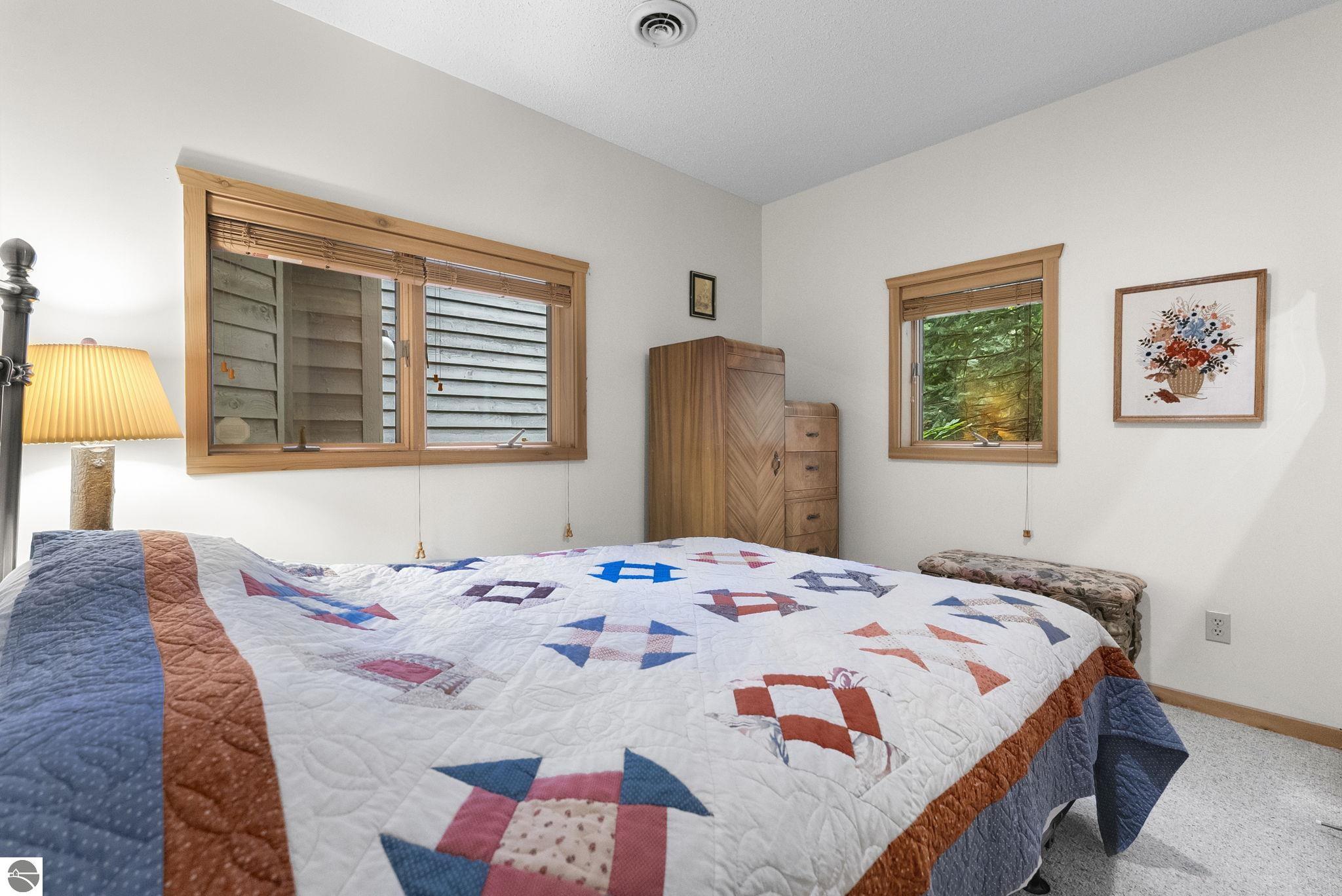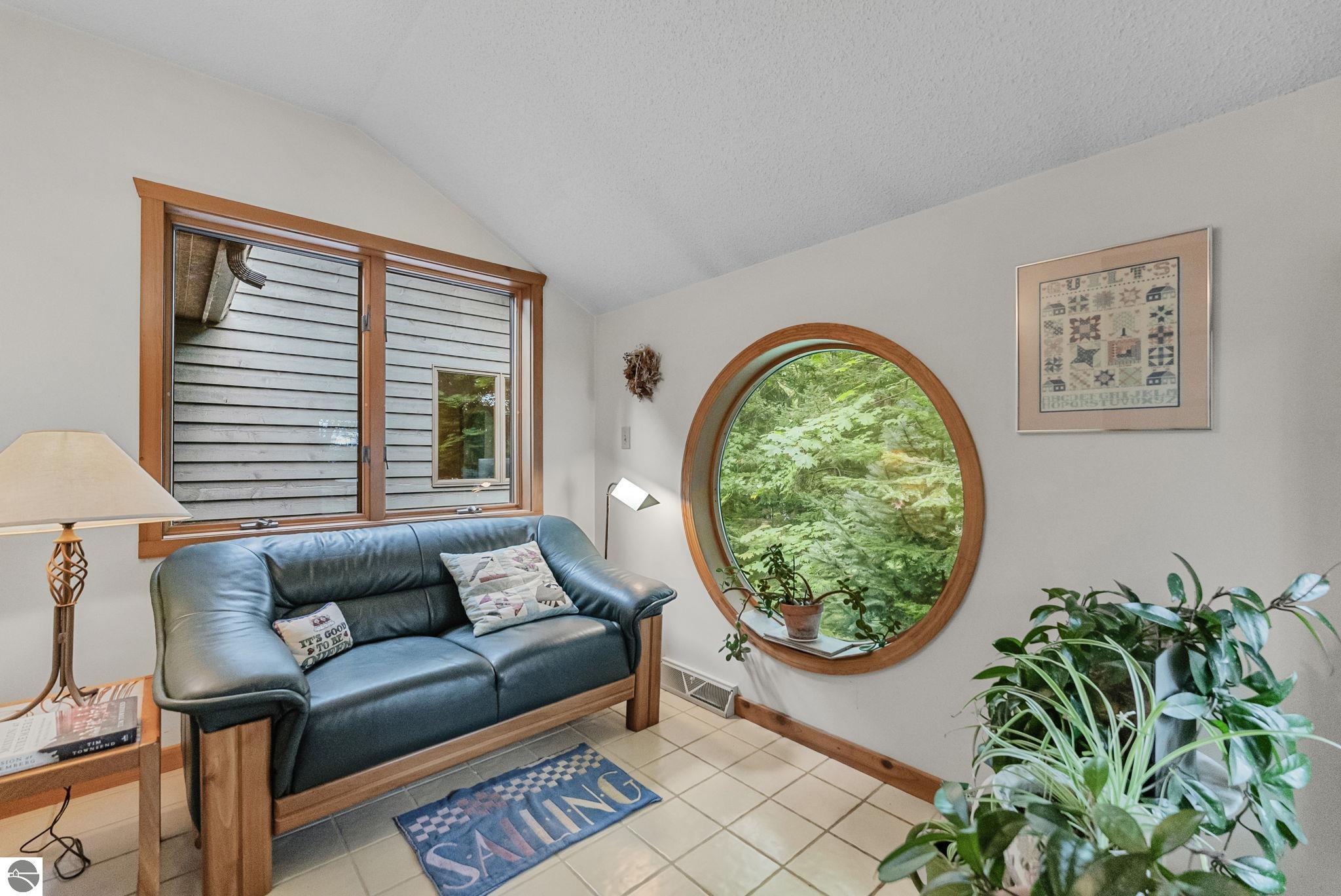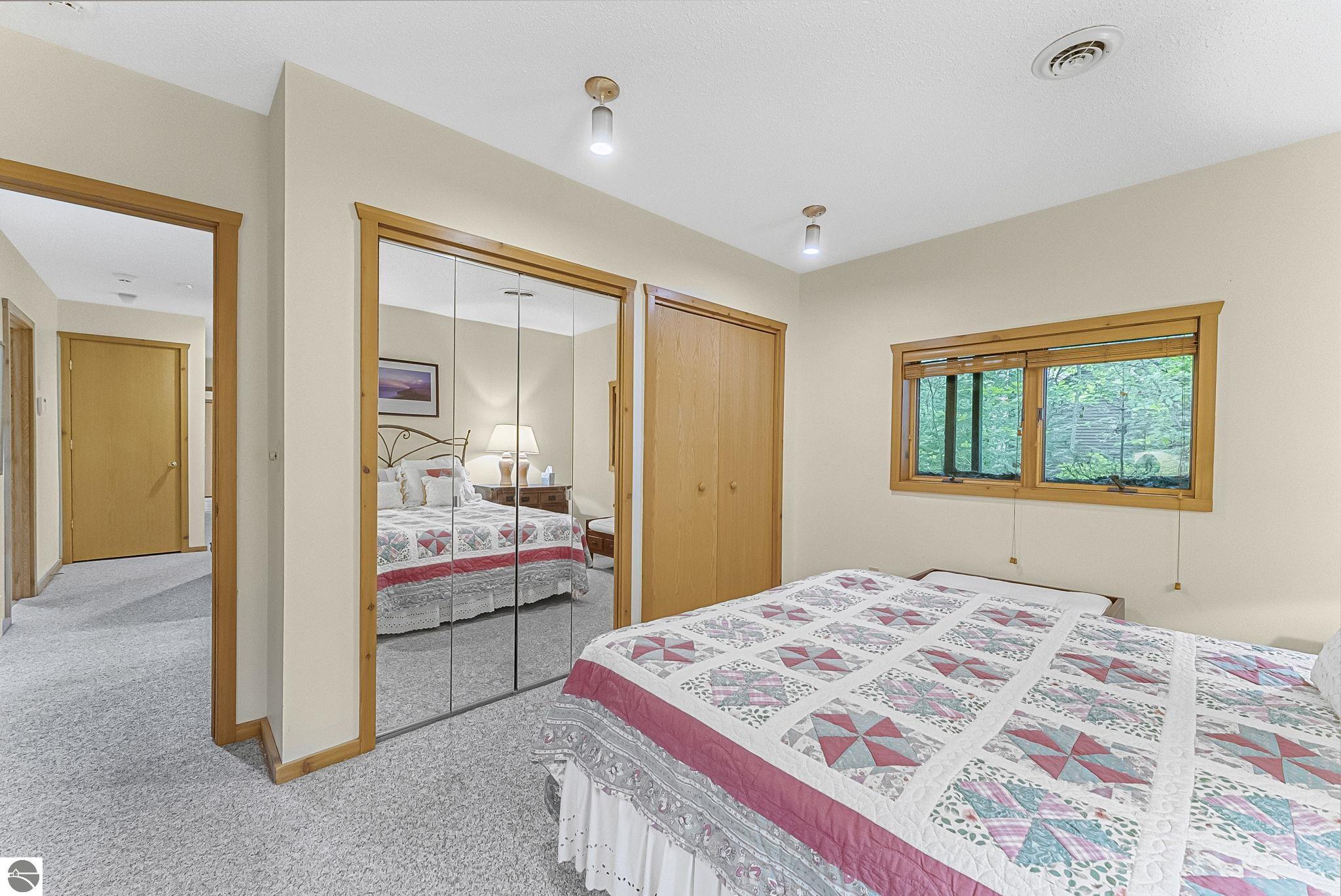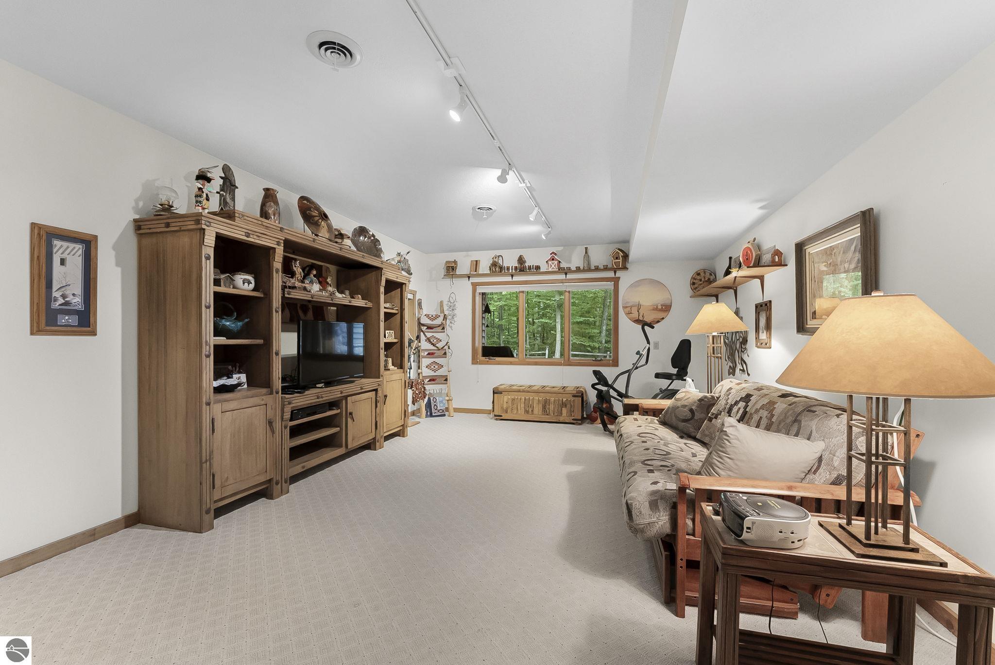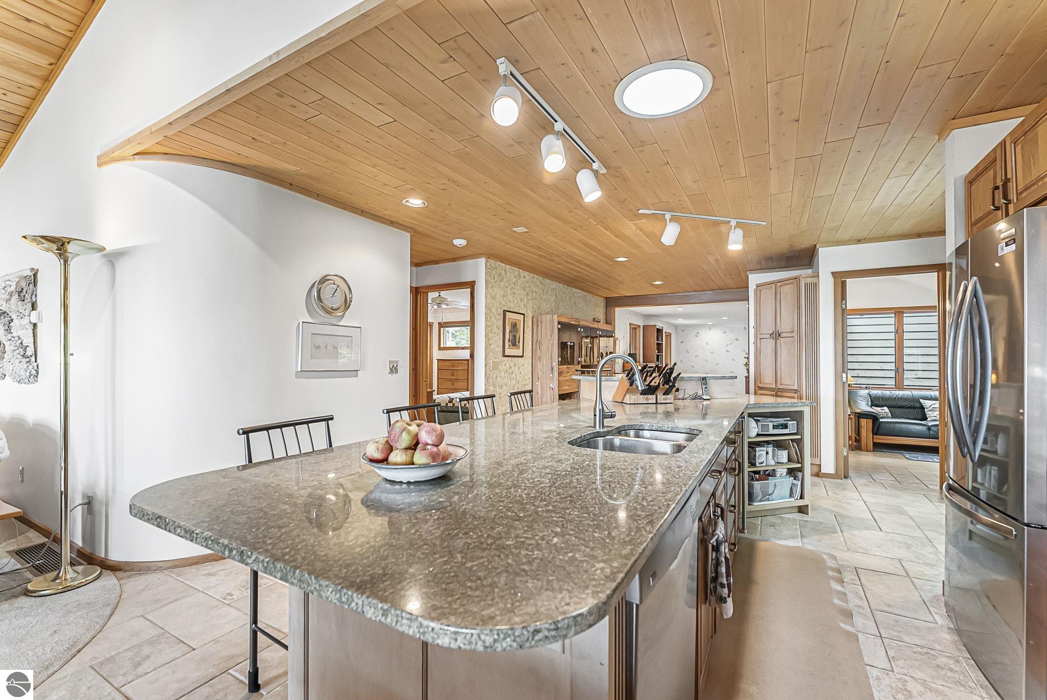 This stunning home along the coveted San Marino Trail in Kewadin--ideally located between Elk Rapids and Charlevoix--offers the perfect Up North retreat. Whether used as a primary residence or a vacation getaway, it blends privacy, comfort, and spectacular views of Grand Traverse Bay. Set on gorgeous, pristine frontage and surrounded by hardwoods, the property features expansive decks and outdoor living areas, combining seclusion with breathtaking scenery. Inside, the open design with soaring ceilings and walls of windows brings the outdoors in. The large kitchen flows seamlessly to a spacious living area and dining room, while multiple gathering spaces provide plenty of room for entertaining or relaxing. The thoughtful layout includes 2 main-floor bedrooms, four baths, and office space or potential for five bedrooms if needed. The lower level has a large living area with laundry and 2 additional bedrooms. A designated space for a future elevator supports aging in place, and a whole-house generator ensures peace of mind during inclement weather. This home truly has it all: stunning views, flexible living spaces, and an unbeatable location. Don't miss this rare opportunity.