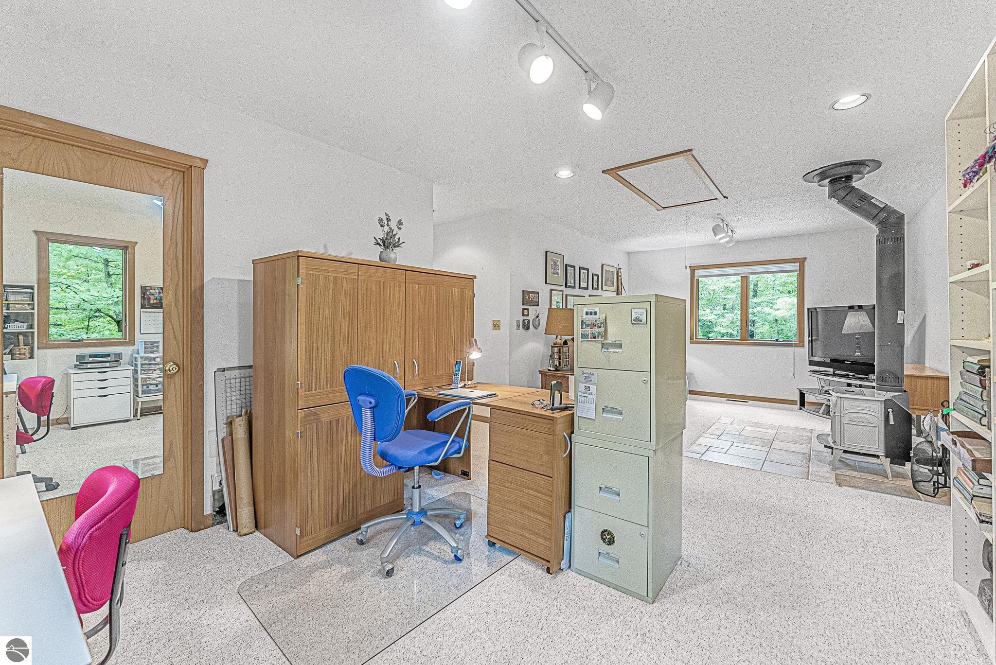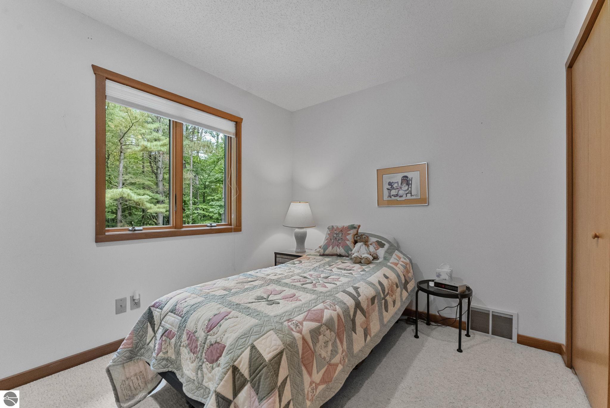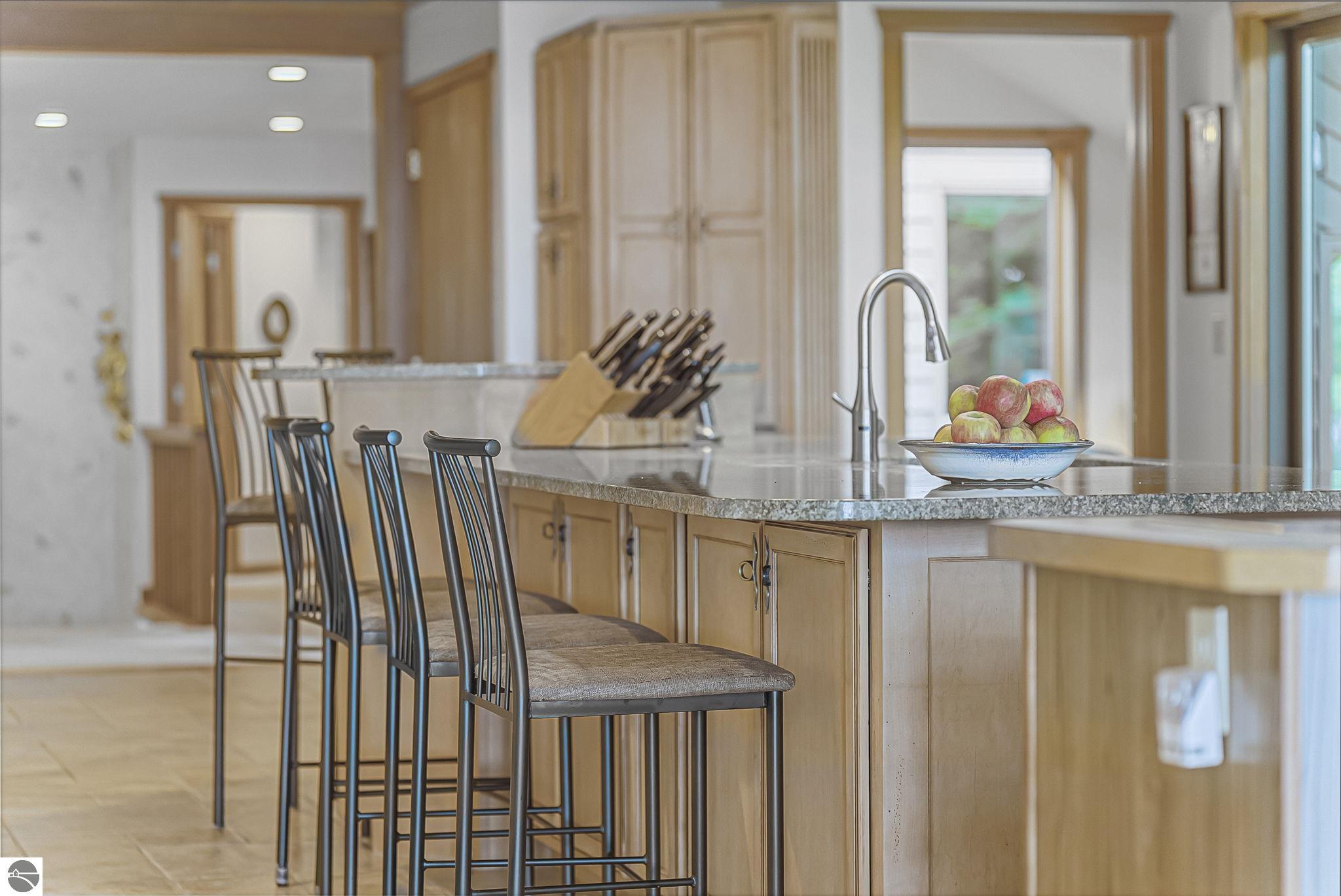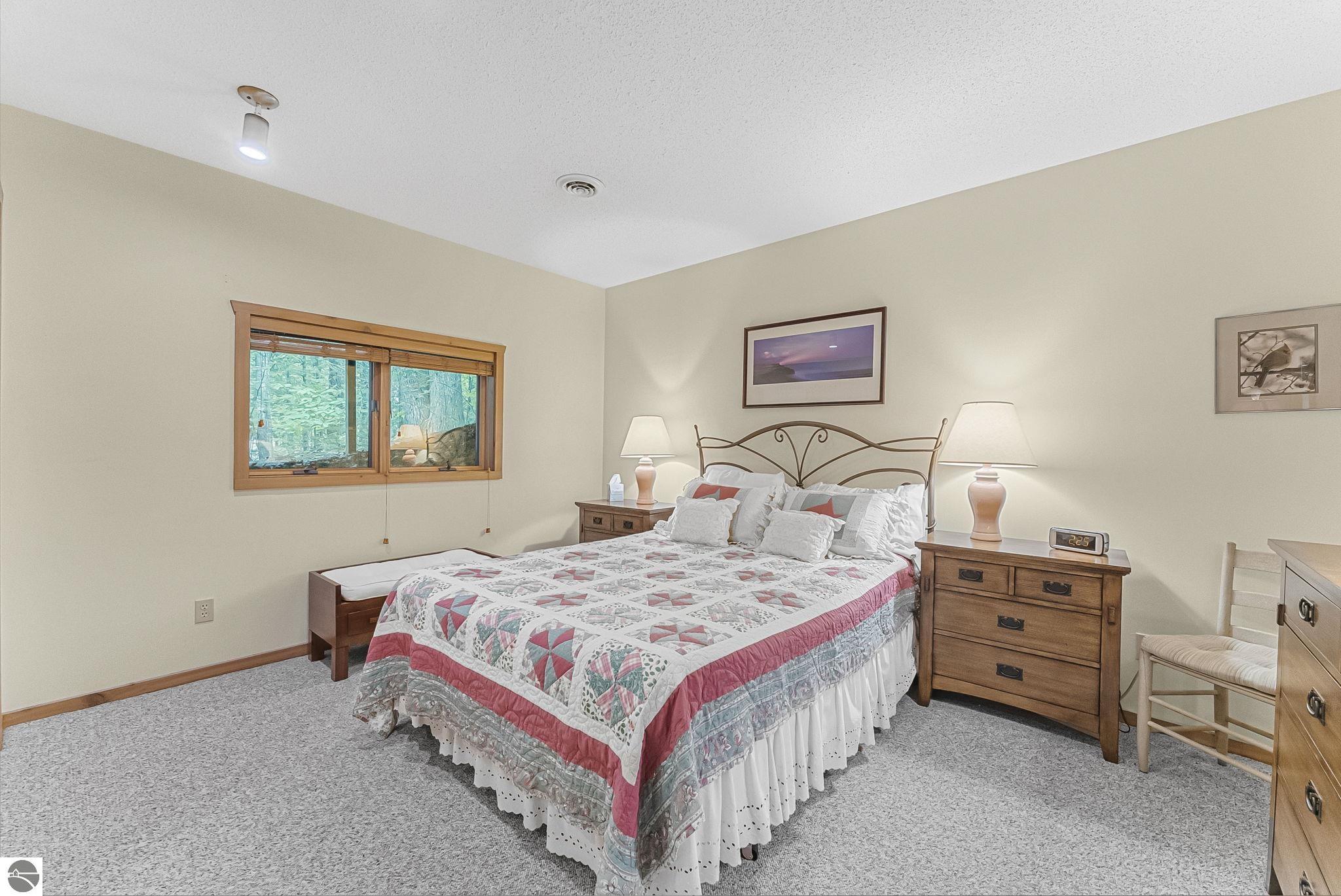 This stunning home along the coveted San Marino Trail in Kewadin--ideally located between Elk Rapids and Charlevoix--offers the perfect Up North retreat. Whether used as a primary residence or a vacation getaway, it blends privacy, comfort, and spectacular views of Grand Traverse Bay. Set on gorgeous, pristine frontage and surrounded by hardwoods, the property features expansive decks and outdoor living areas, combining seclusion with breathtaking scenery. Inside, the open design with soaring ceilings and walls of windows brings the outdoors in. The large kitchen flows seamlessly to a spacious living area and dining room, while multiple gathering spaces provide plenty of room for entertaining or relaxing. The thoughtful layout includes 2 main-floor bedrooms, four baths, and office space or potential for five bedrooms if needed. The lower level has a large living area with laundry and 2 additional bedrooms. A designated space for a future elevator supports aging in place, and a whole-house generator ensures peace of mind during inclement weather. This home truly has it all: stunning views, flexible living spaces, and an unbeatable location. Don't miss this rare opportunity.