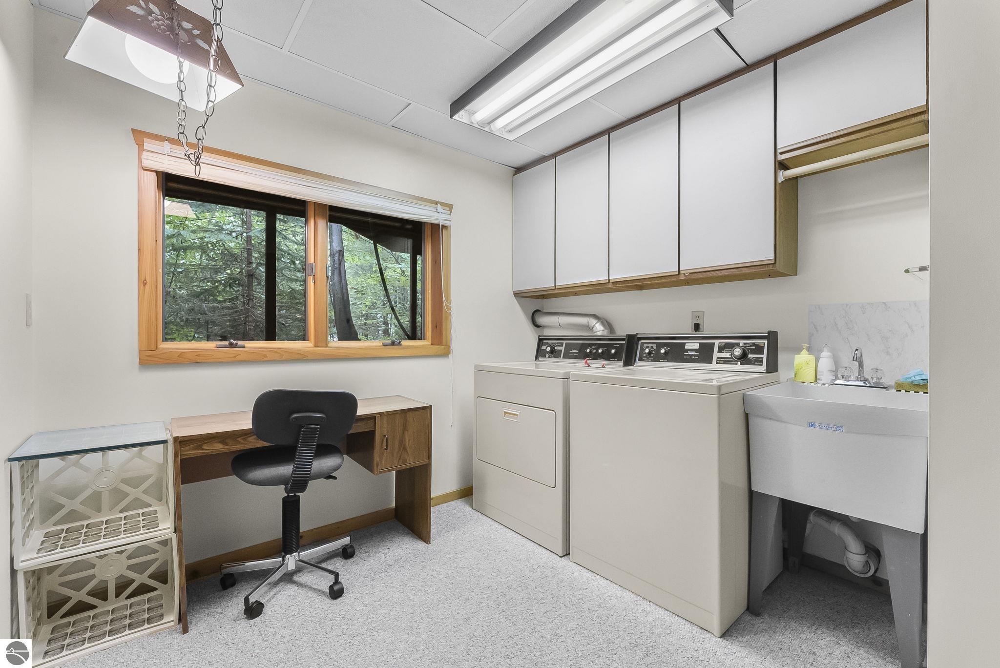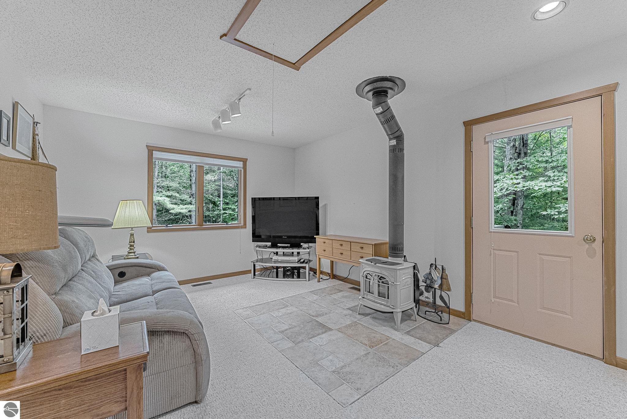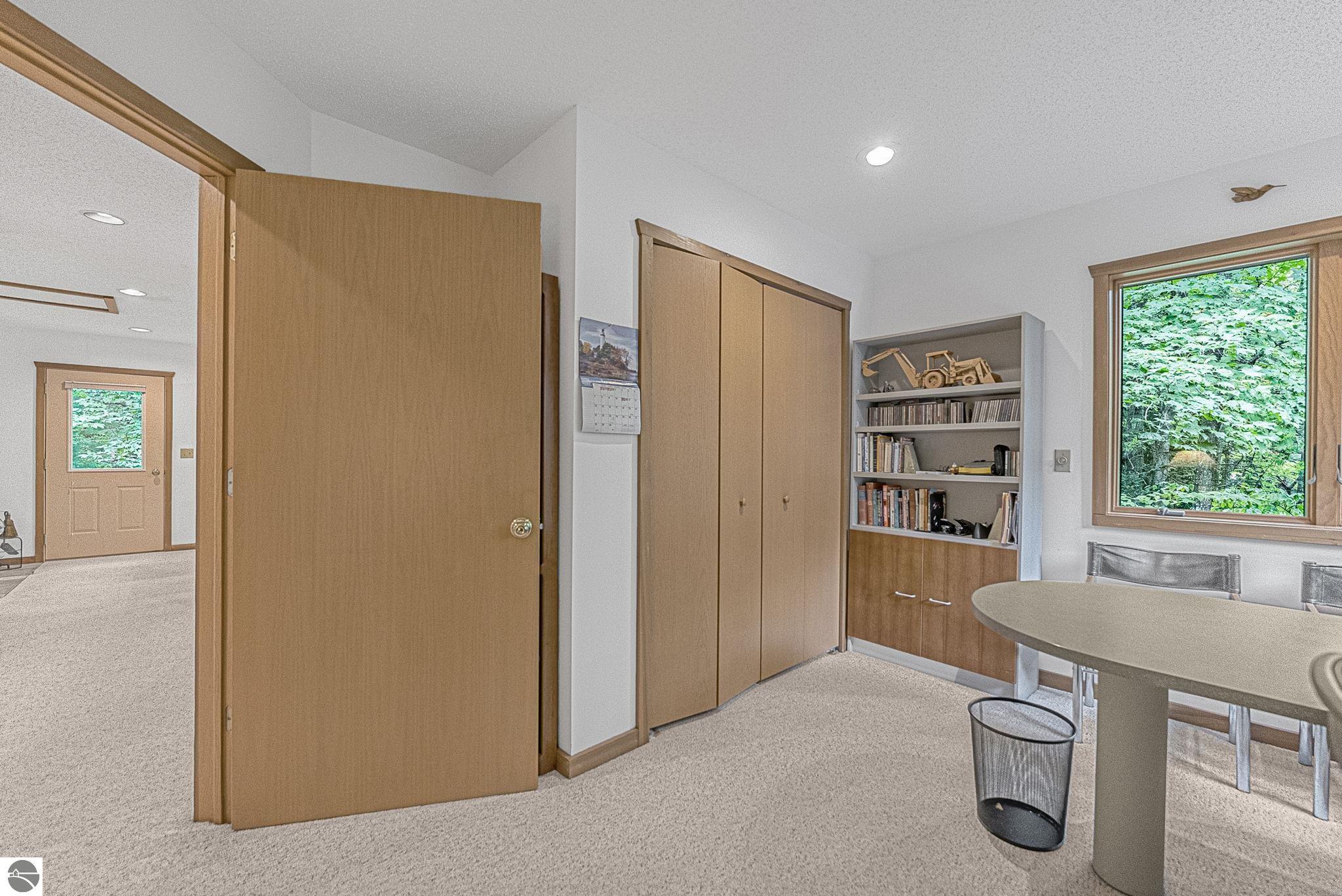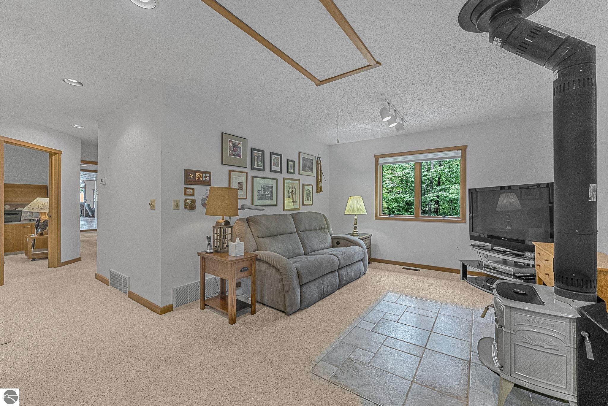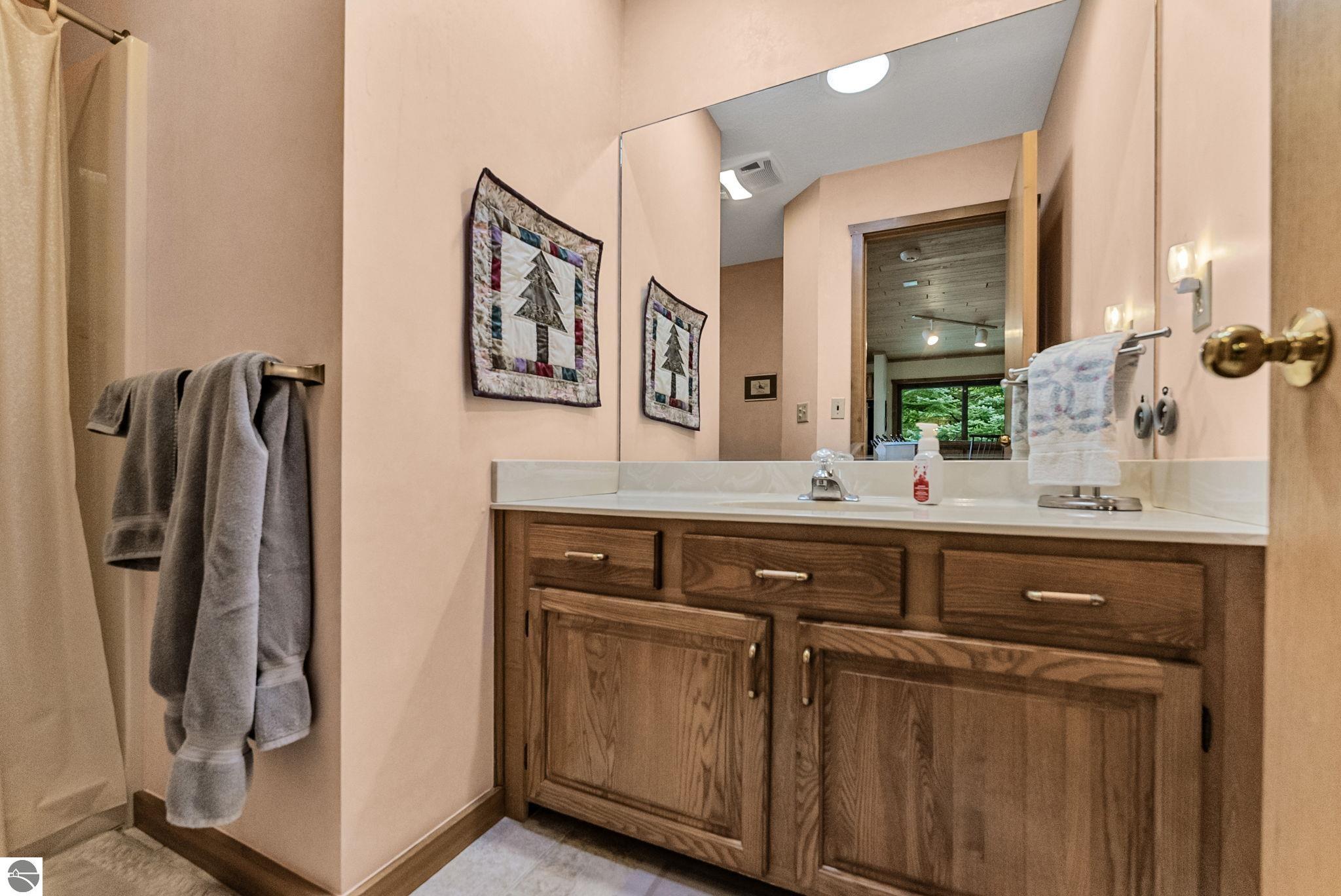 This stunning home along the coveted San Marino Trail in Kewadin--ideally located between Elk Rapids and Charlevoix--offers the perfect Up North retreat. Whether used as a primary residence or a vacation getaway, it blends privacy, comfort, and spectacular views of Grand Traverse Bay. Set on gorgeous, pristine frontage and surrounded by hardwoods, the property features expansive decks and outdoor living areas, combining seclusion with breathtaking scenery. Inside, the open design with soaring ceilings and walls of windows brings the outdoors in. The large kitchen flows seamlessly to a spacious living area and dining room, while multiple gathering spaces provide plenty of room for entertaining or relaxing. The thoughtful layout includes 2 main-floor bedrooms, four baths, and office space or potential for five bedrooms if needed. The lower level has a large living area with laundry and 2 additional bedrooms. A designated space for a future elevator supports aging in place, and a whole-house generator ensures peace of mind during inclement weather. This home truly has it all: stunning views, flexible living spaces, and an unbeatable location. Don't miss this rare opportunity.