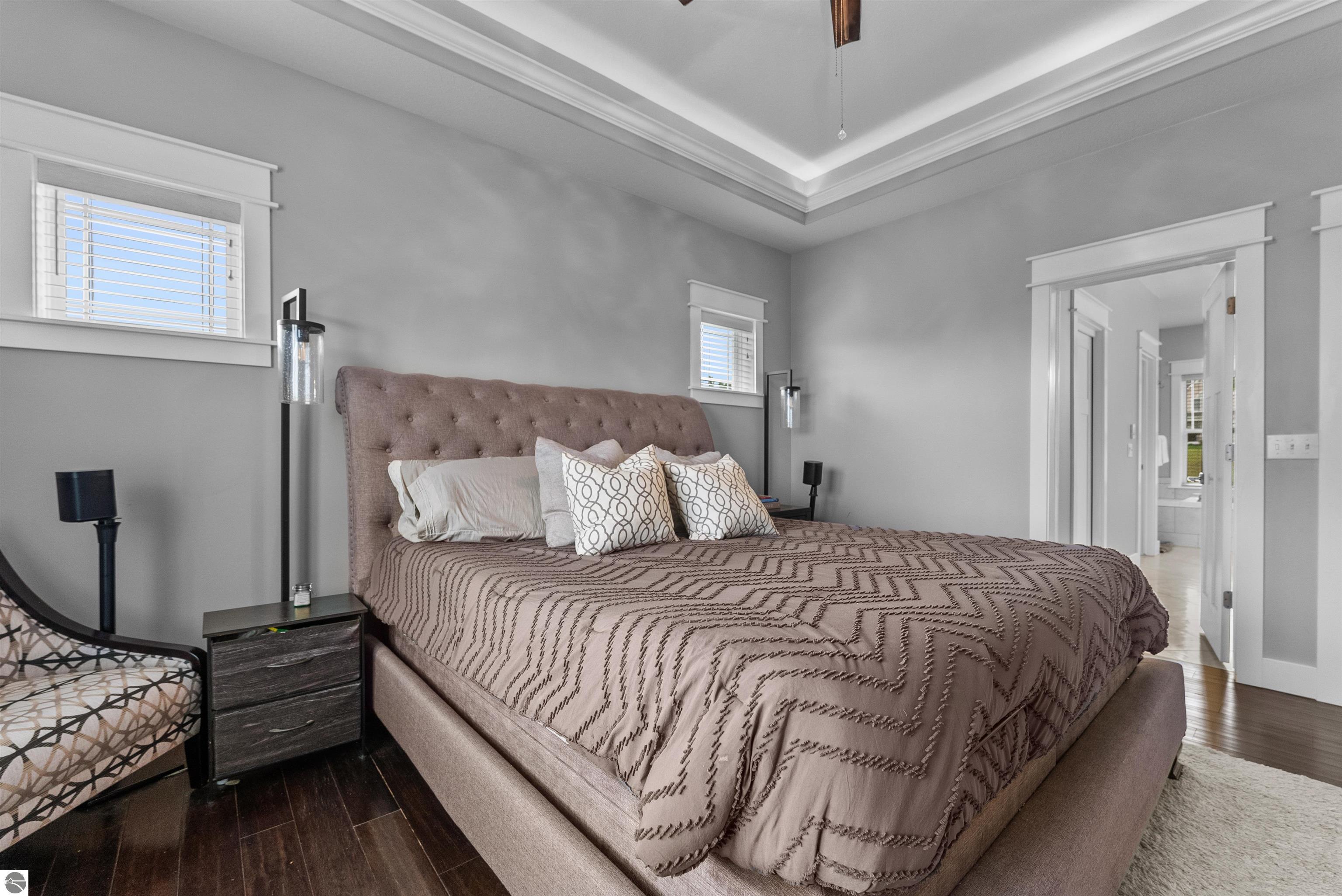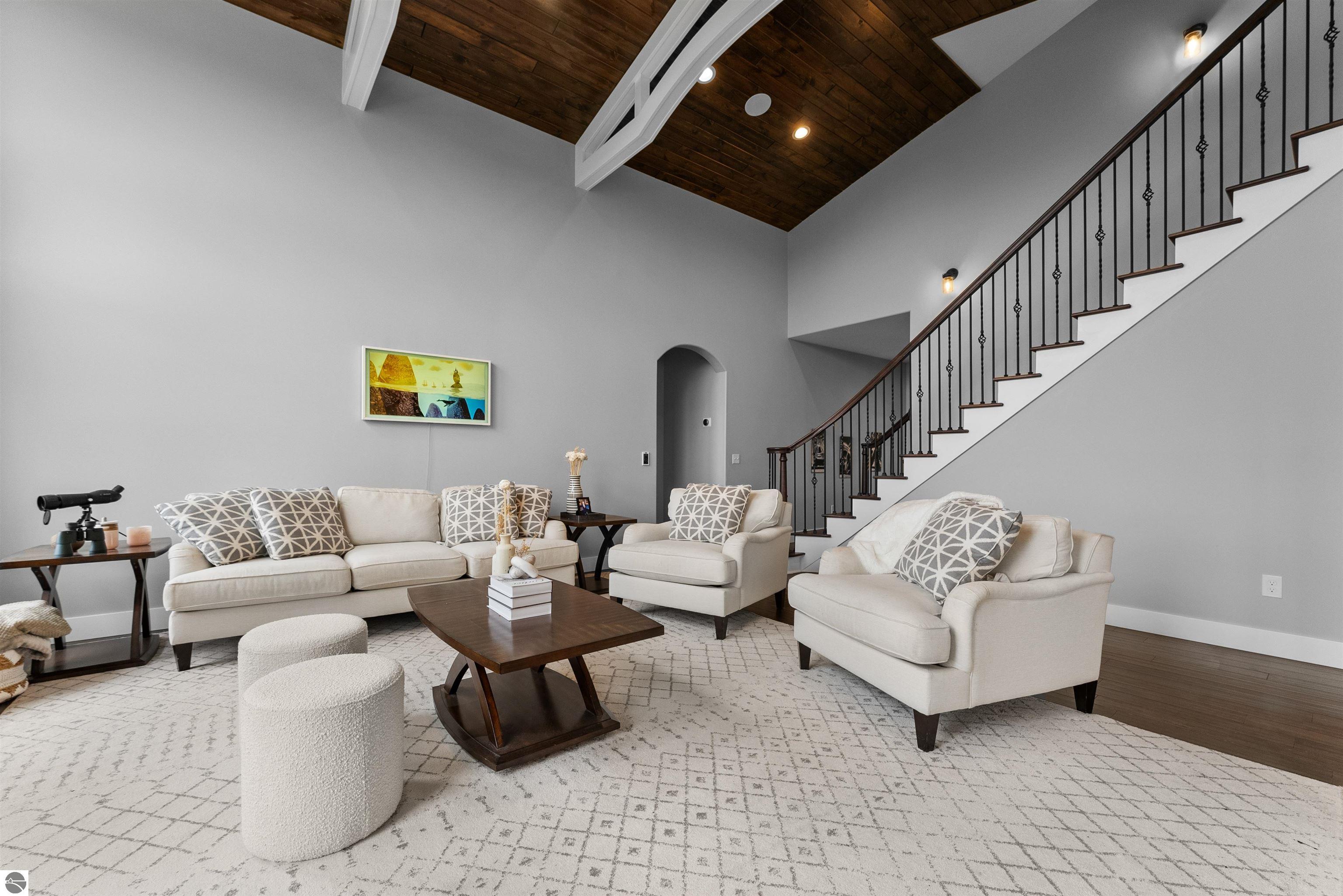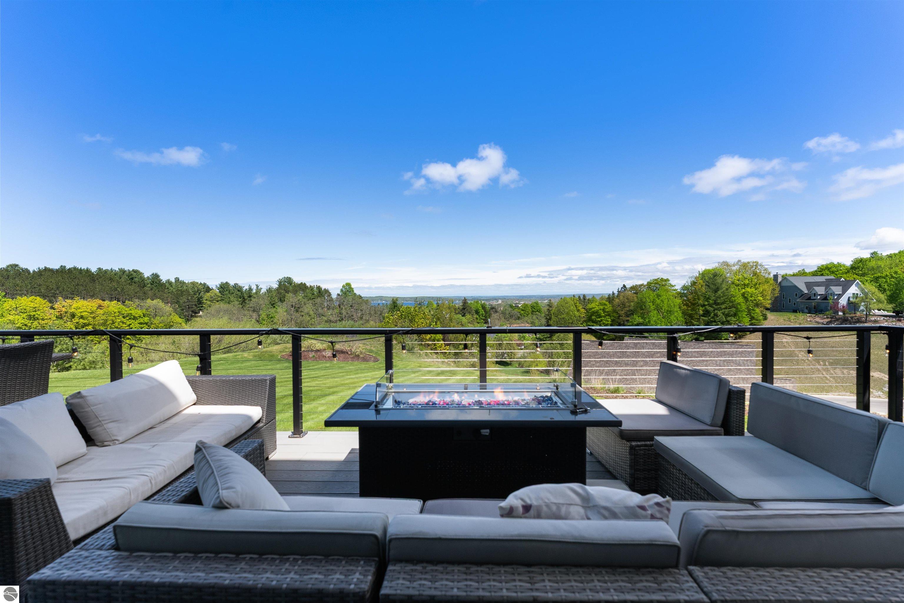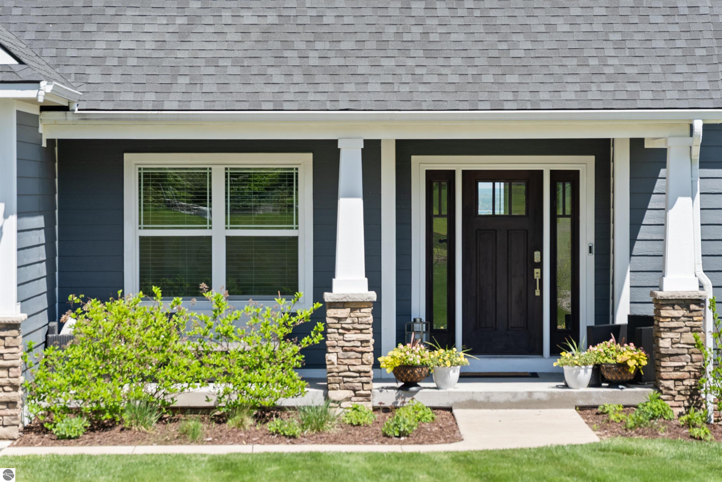 SPACIOUS & ELEGANT HOME WITH BAY VIEWS IN PRIME GARFIELD TOWNSHIP NEIGHBORHOOD. Perched atop a scenic hillside in beautiful Grayhawk neighborhood, this beautifully designed 4700 sq ft home offers sweeping, distant views of West Grand Traverse Bay and an elevated sense of privacy. The driveway is not just a feature-its what allows for the stunning vantage point that sets this home apart, bringing in natural light and showcasing breathtaking sunsets from multiple rooms. Inside, you'll find 5 spacious bedrooms and 4.5 baths, along with a three-car garage and a very flexible floor plan that provides functionality for any lifestyle. The interior boasts beautiful finishes throughout, creating a warm and refined atmosphere to entertain or relax in. There are three distinct living areas, this home is ideal for a growing family needing space to unwind, entertain, or work from home. Whether its game night, movie time, or quiet reading, theres room for everyone. Located minutes, and an easy bike ride or walk through the beautiful hospital grounds to the trails and downtown. The Views in this home are worth the visit.