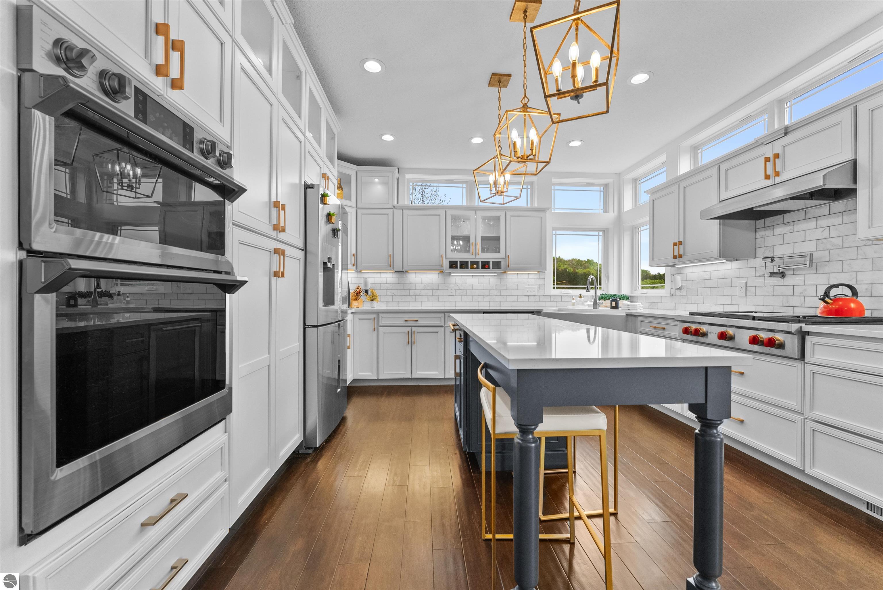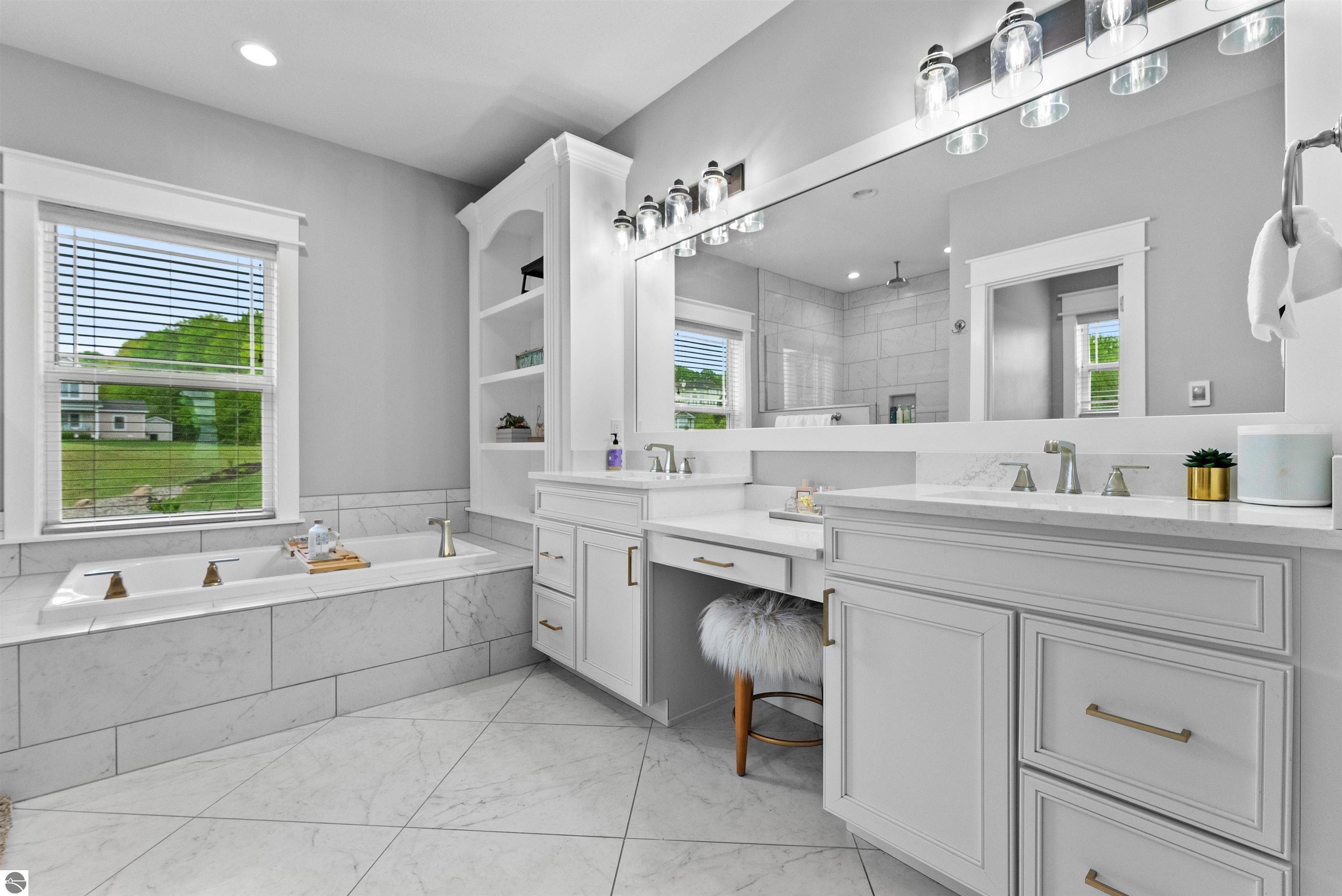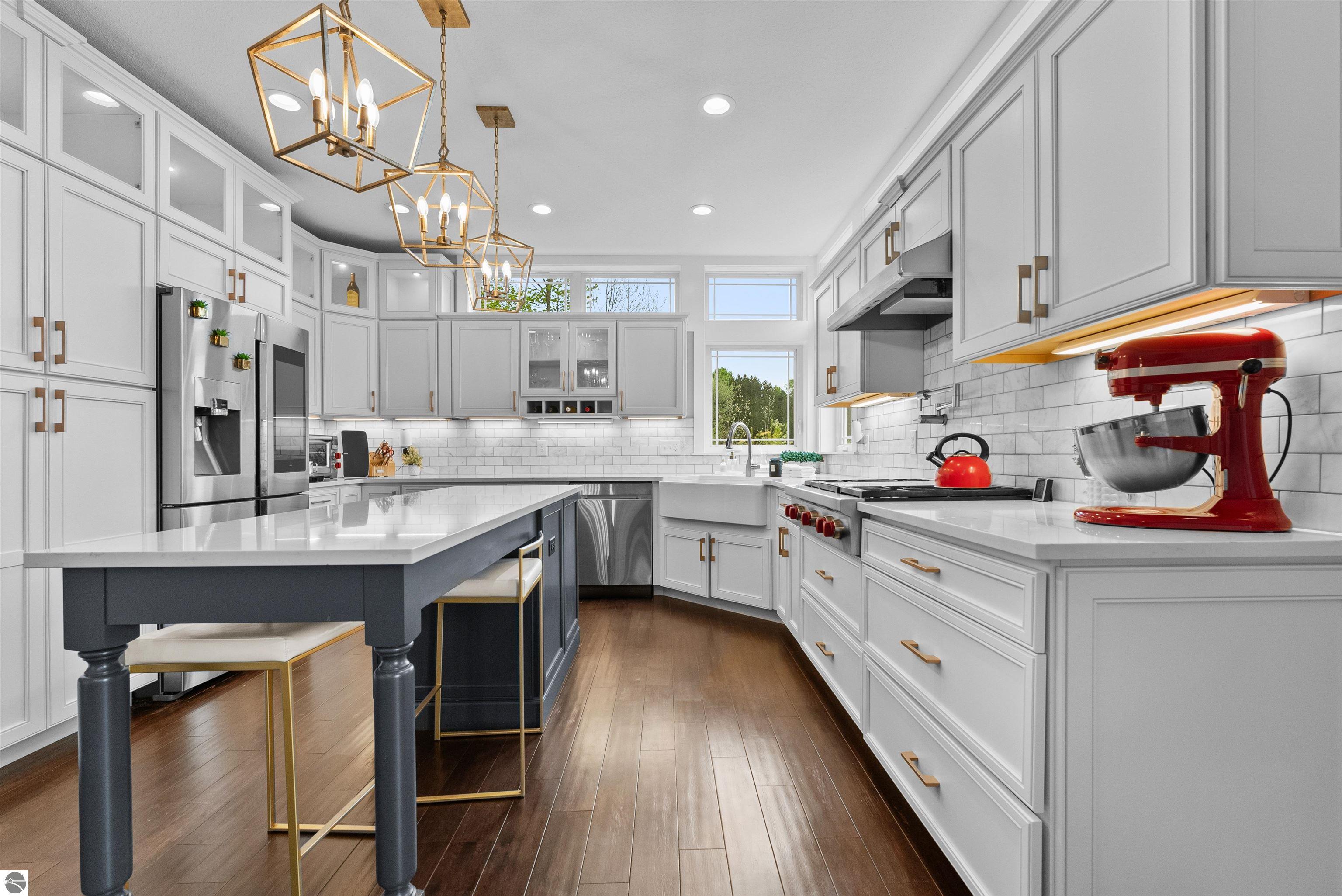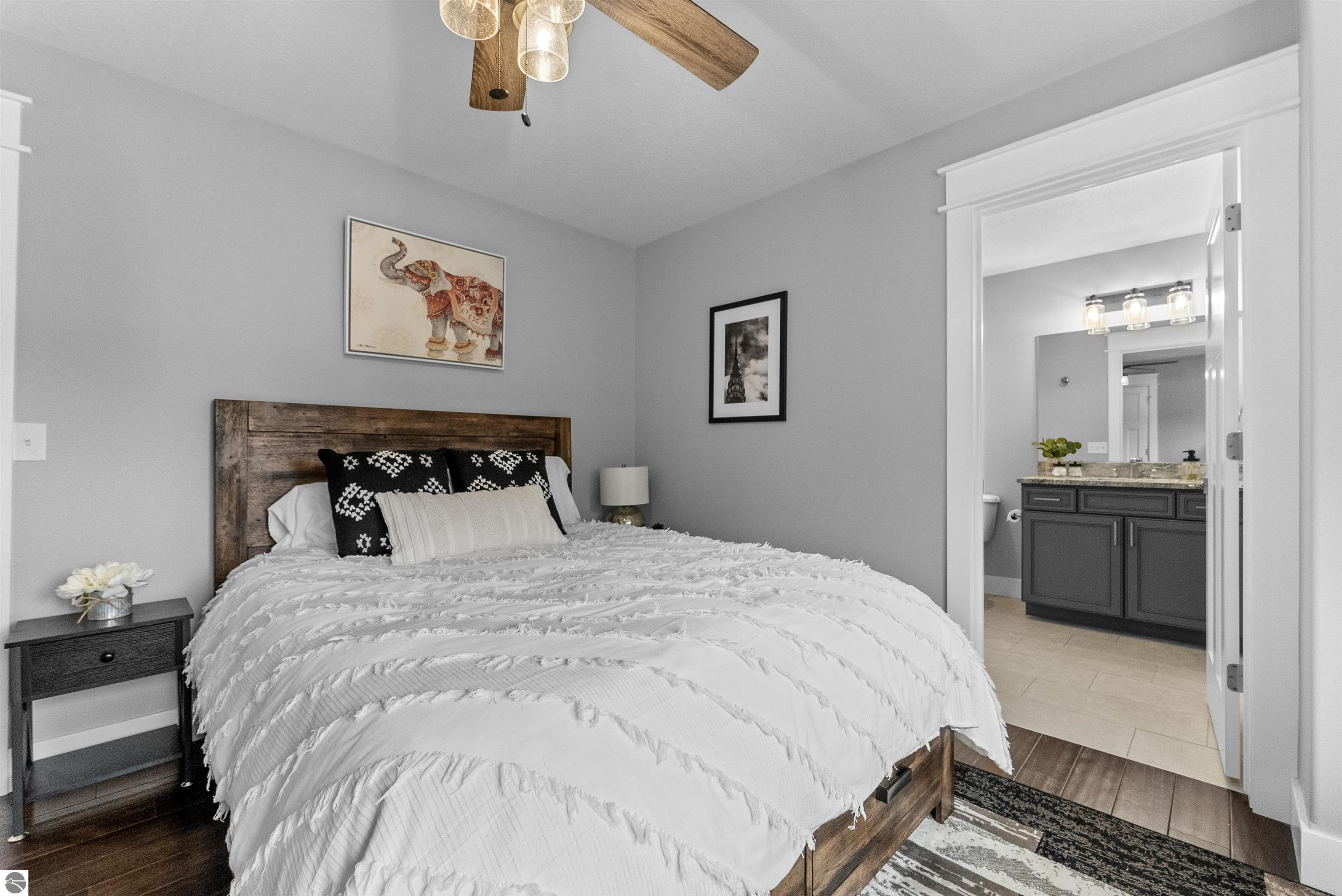 SPACIOUS & ELEGANT HOME WITH BAY VIEWS IN PRIME GARFIELD TOWNSHIP NEIGHBORHOOD. Perched atop a scenic hillside in beautiful Grayhawk neighborhood, this beautifully designed 4700 sq ft home offers sweeping, distant views of West Grand Traverse Bay and an elevated sense of privacy. The driveway is not just a feature-its what allows for the stunning vantage point that sets this home apart, bringing in natural light and showcasing breathtaking sunsets from multiple rooms. Inside, you'll find 5 spacious bedrooms and 4.5 baths, along with a three-car garage and a very flexible floor plan that provides functionality for any lifestyle. The interior boasts beautiful finishes throughout, creating a warm and refined atmosphere to entertain or relax in. There are three distinct living areas, this home is ideal for a growing family needing space to unwind, entertain, or work from home. Whether its game night, movie time, or quiet reading, theres room for everyone. Located minutes, and an easy bike ride or walk through the beautiful hospital grounds to the trails and downtown. The Views in this home are worth the visit.