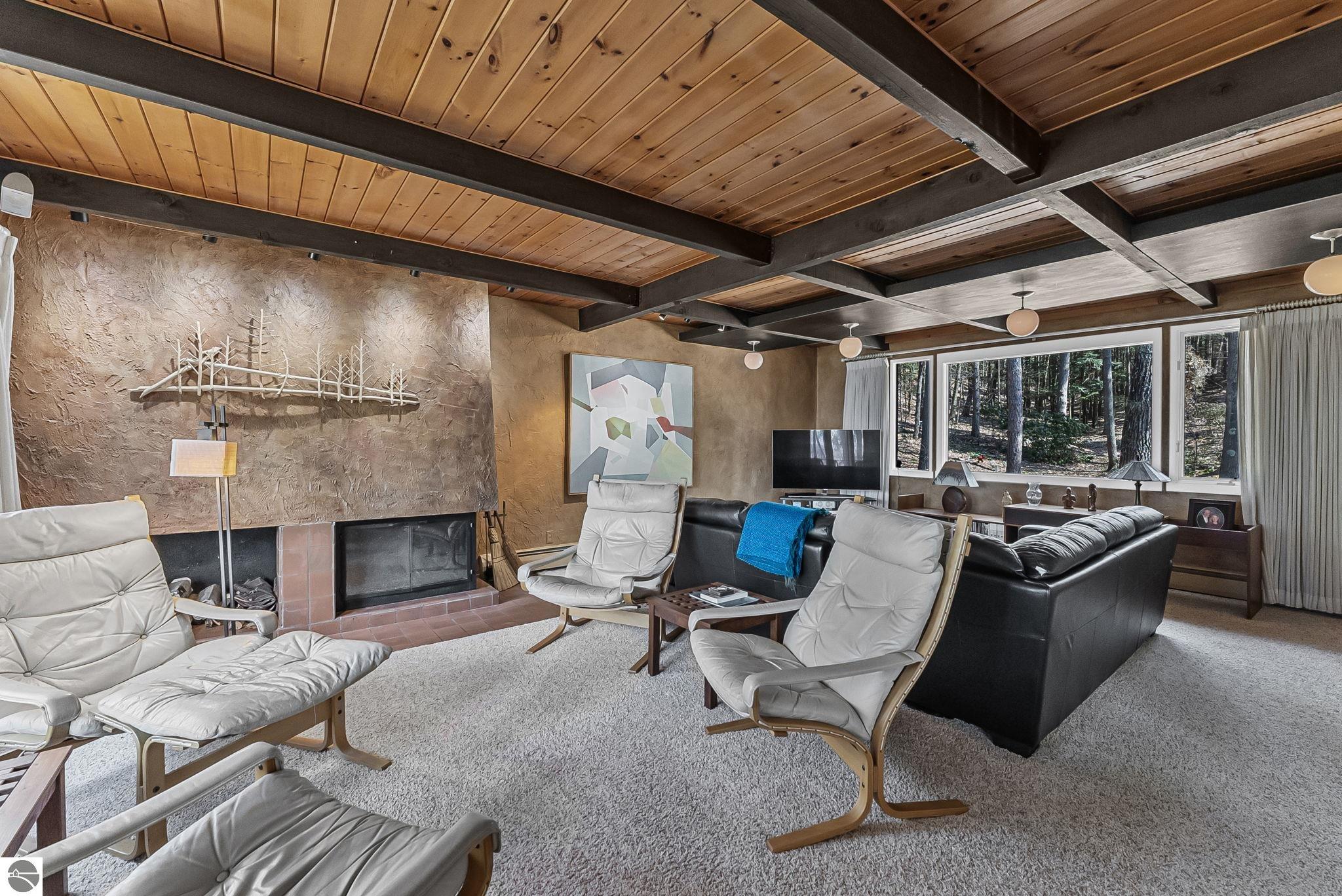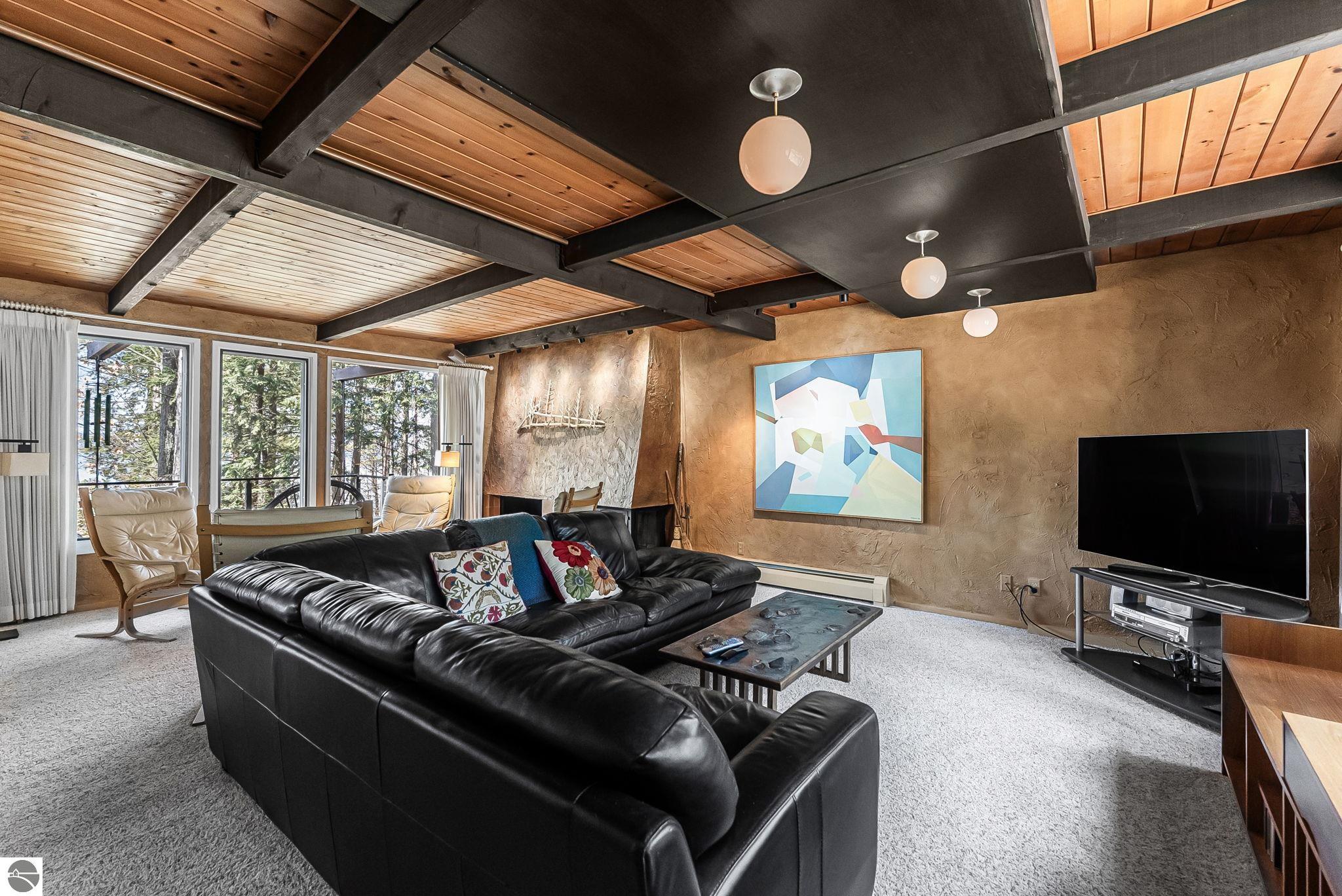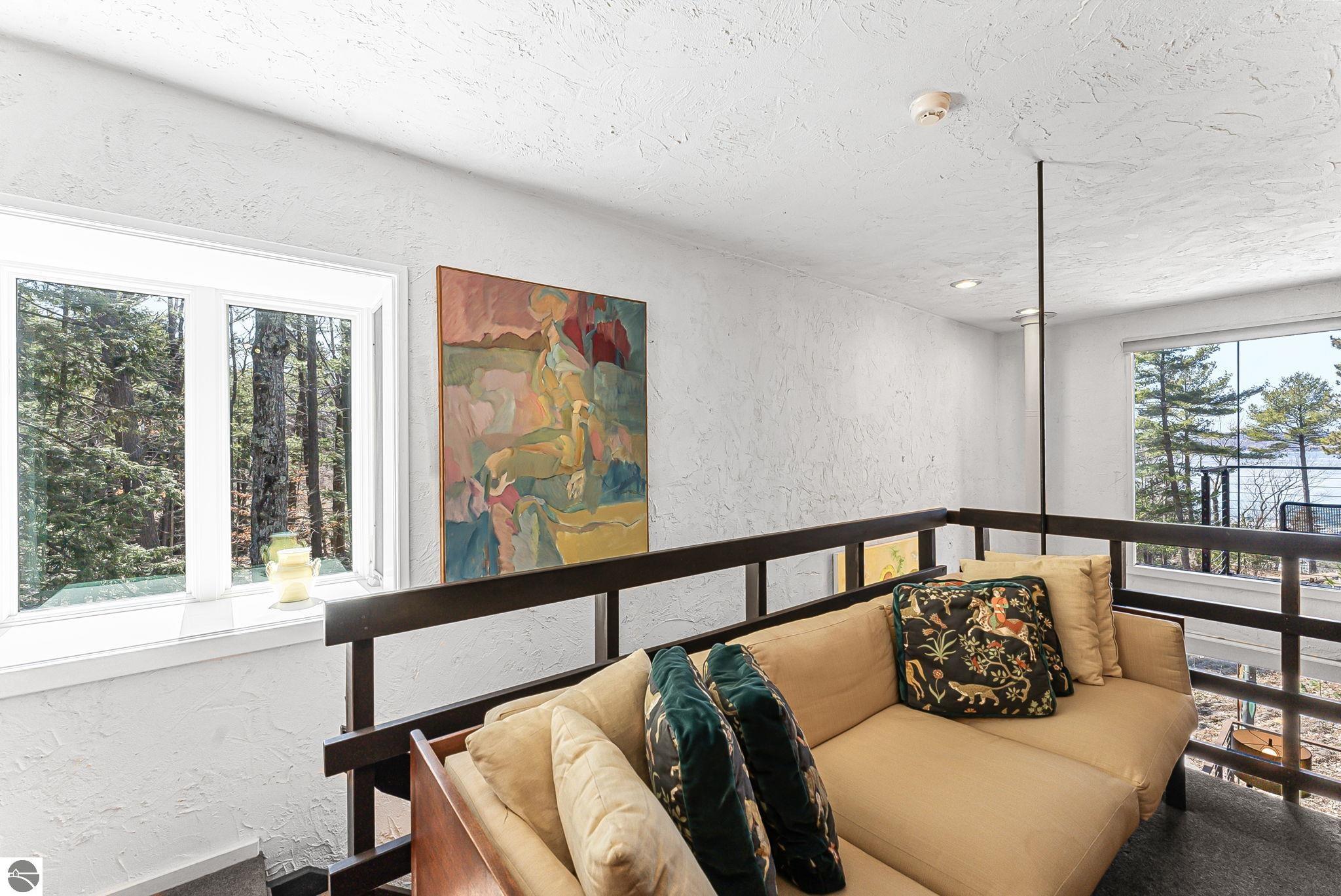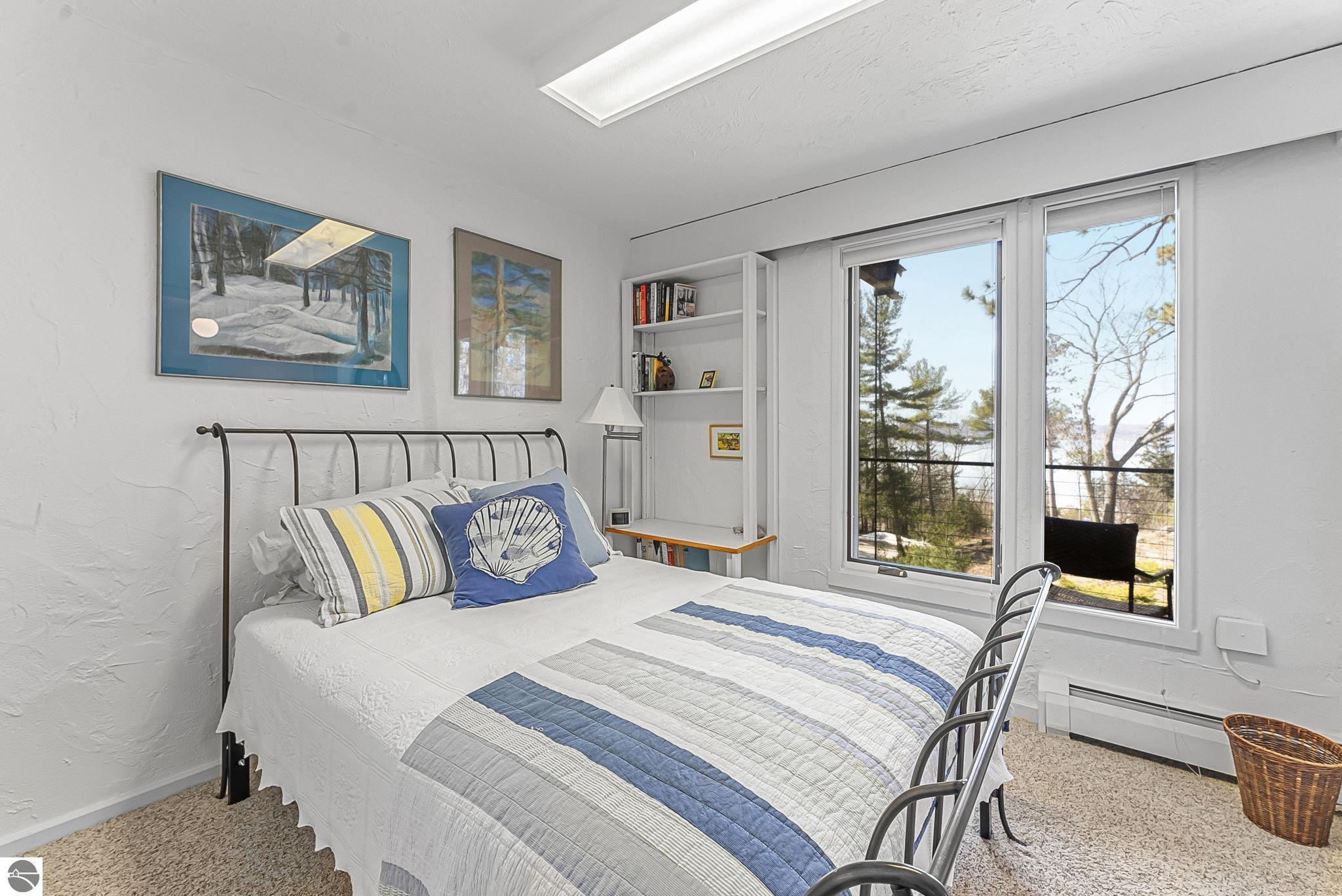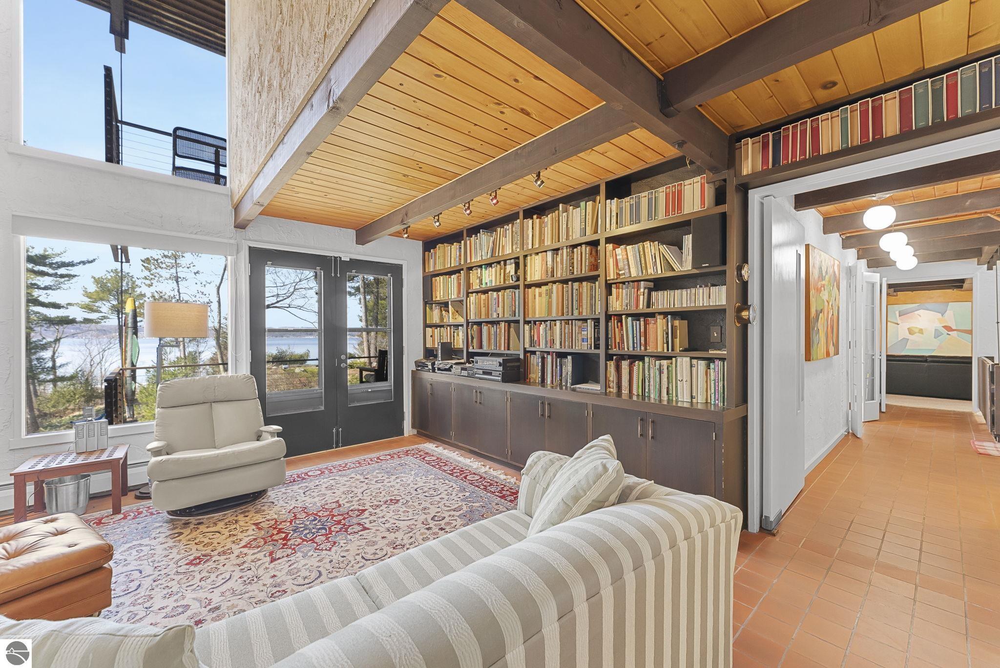 Set near the coveted base of Old Mission Peninsula, this exceptional property offers a rare combination of scale, privacy, and proximity--features seldom found in a single offering. The beautiful and unique architecture of this home is like no other on Old Mission. With just over six acres, the estate presents an extraordinary opportunity in one of Traverse City's most sought-after locations, where acreage of this magnitude is virtually unheard of. The 3,500-square-foot residence is thoughtfully positioned to capture sweeping sunset views over West Bay, with a front-row seat to summer airshows, holiday fireworks, and the ever-changing rhythm of boat traffic along the shoreline. The home offers several separate family areas for entertaining, celebrating family or simply downtime in the cozy and warm interior. Expansive windows and well-proportioned living spaces bring the outdoors in, creating a seamless connection to the surrounding landscape. With three bedrooms and three baths, the home is both substantial and comfortable, offering flexibility for year-round living or a refined seasonal retreat. Just minutes from downtown Traverse City, yet removed enough to feel private and serene, this is a truly rare holding on Old Mission Peninsula--where location, land, and view converge in a way that is increasingly difficult to find. A lower level workshop with tons of storage and a really nice sized garden shed are another bonus with this property. The Views are incredible and the wooded and rolling acreage offers so many opportunities you wont find with other homes.