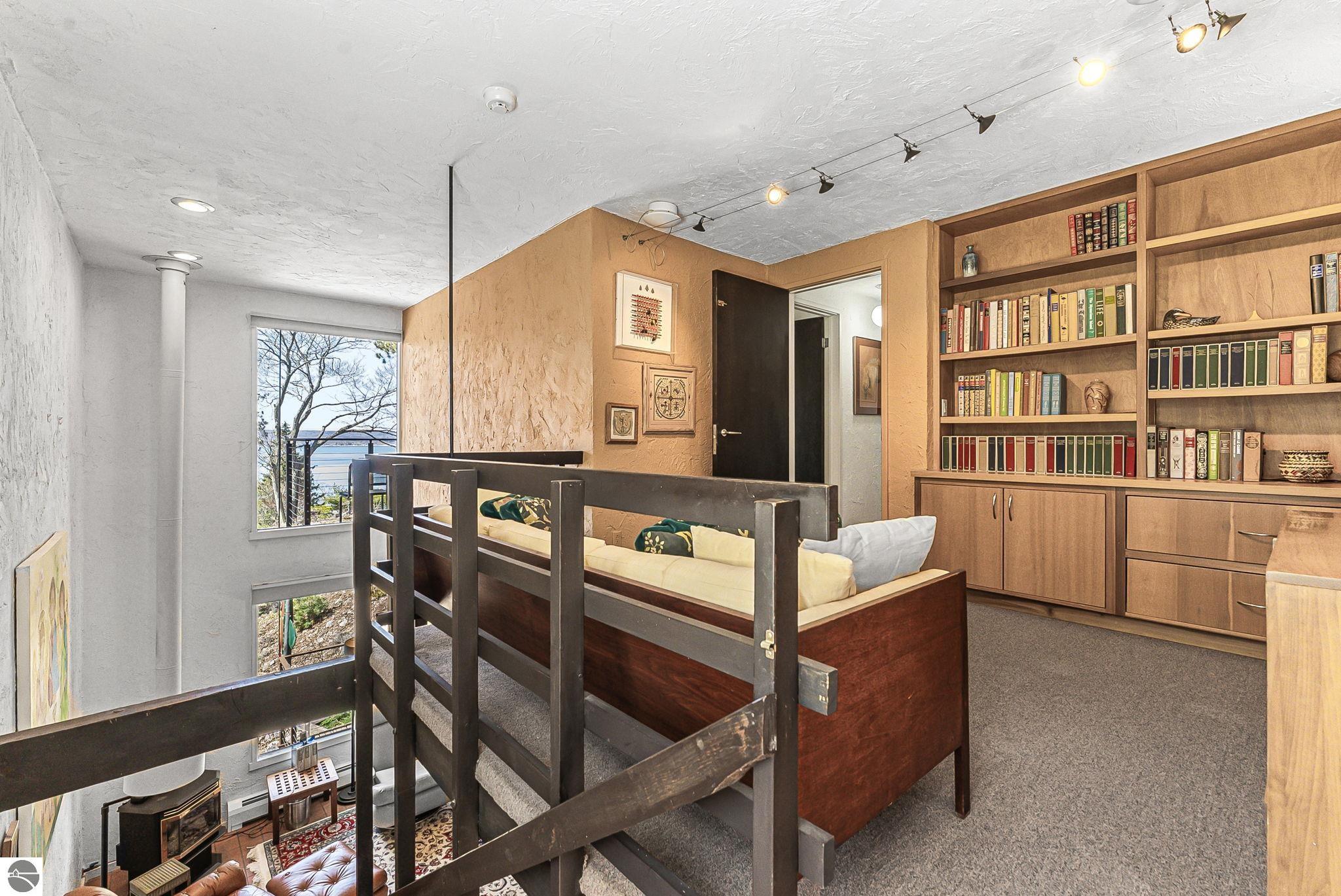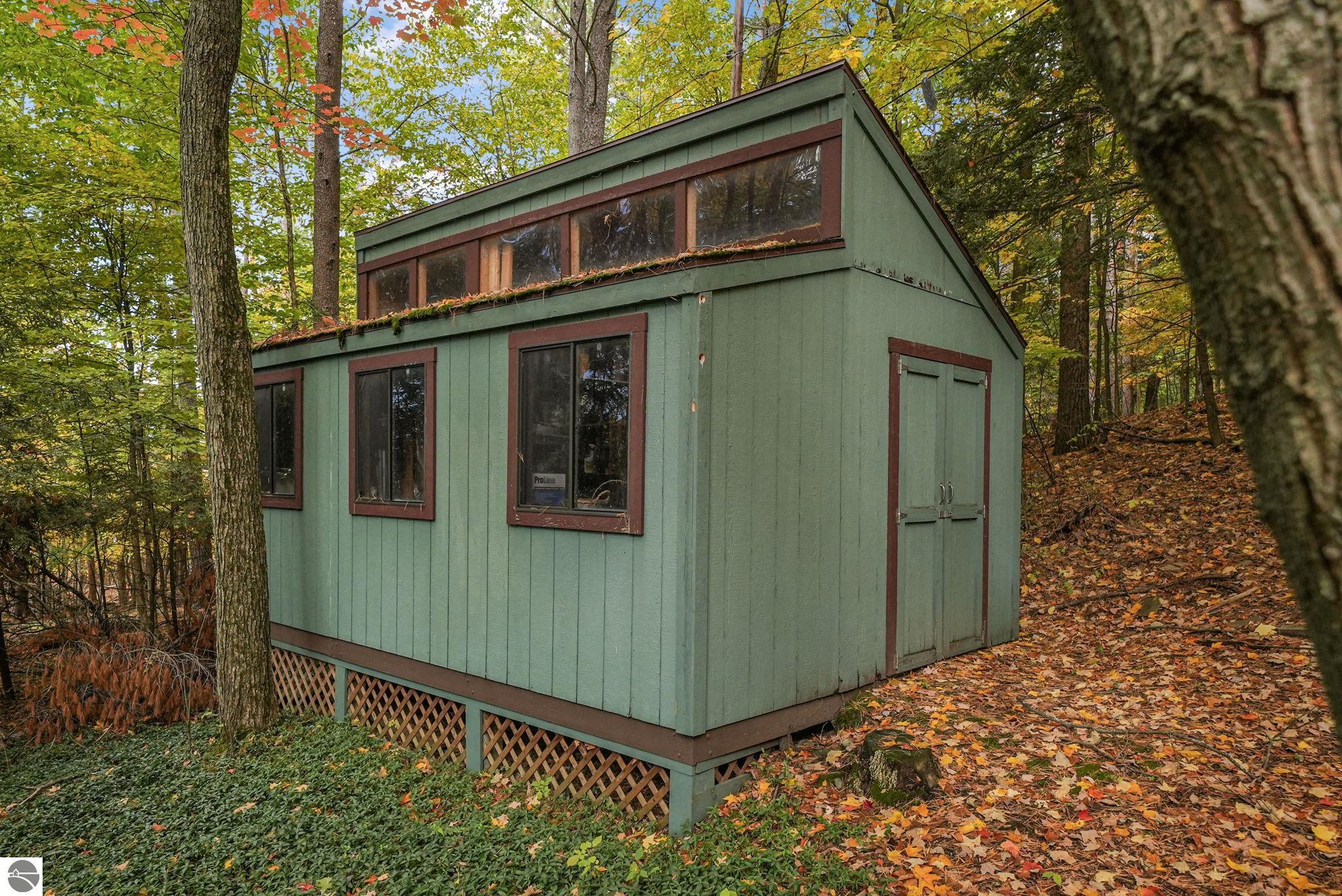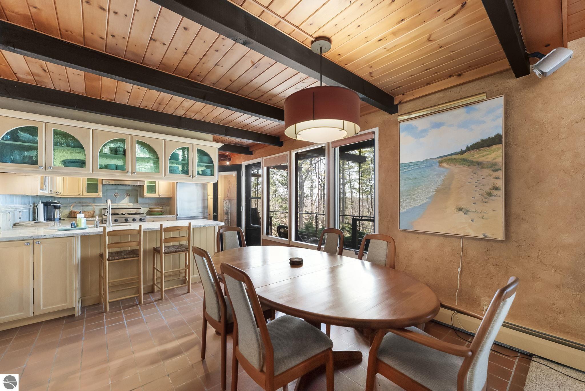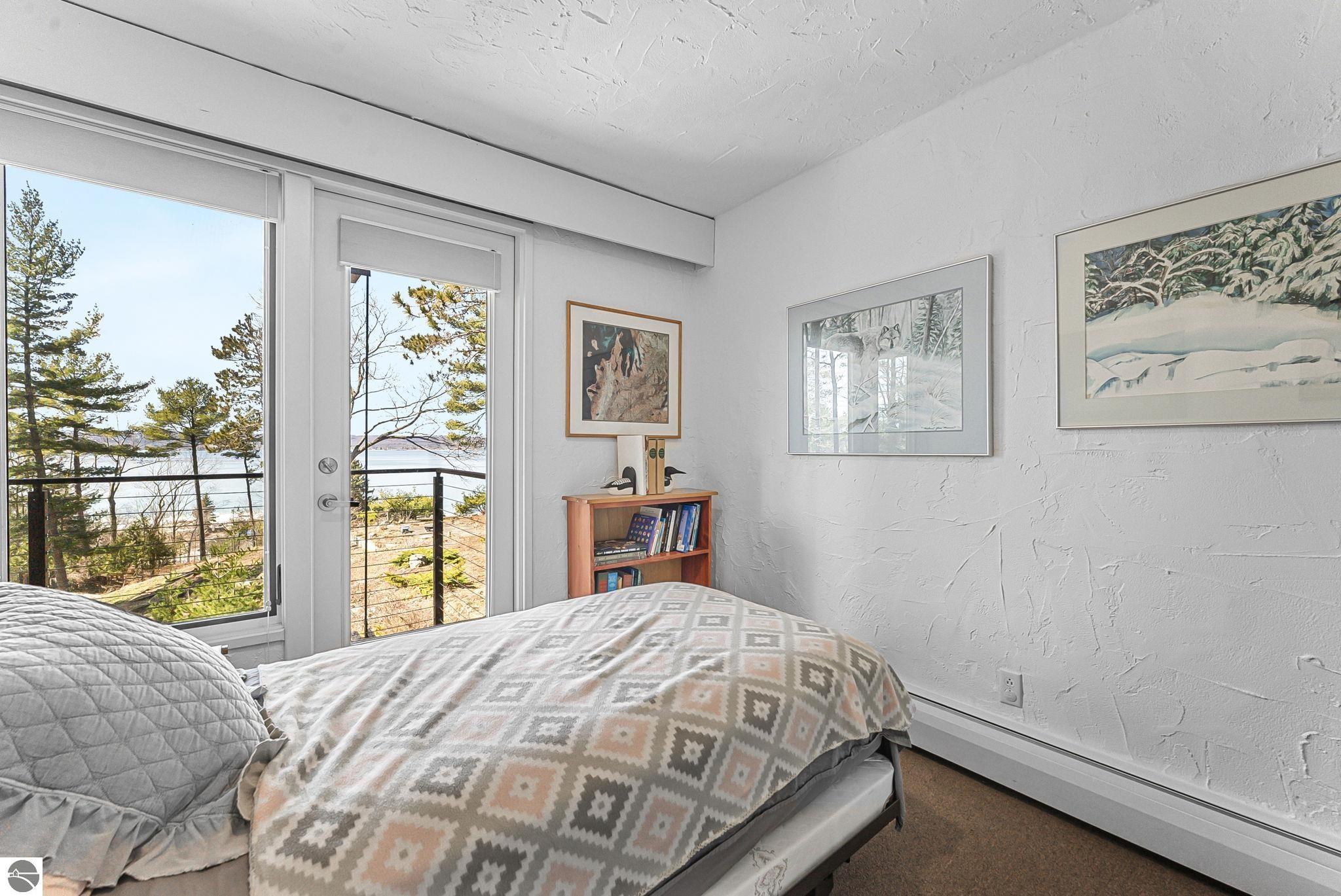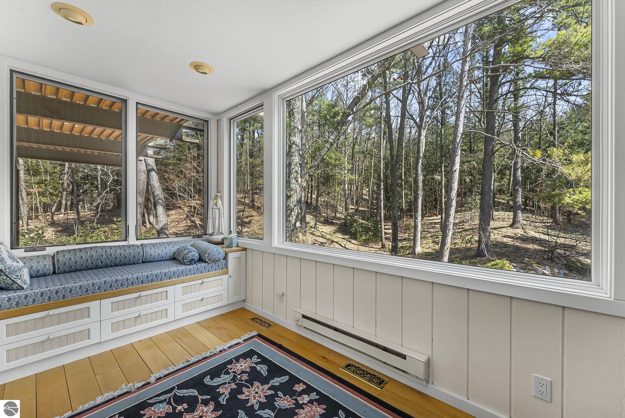 Set near the coveted base of Old Mission Peninsula, this exceptional property offers a rare combination of scale, privacy, and proximity--features seldom found in a single offering. The beautiful and unique architecture of this home is like no other on Old Mission. With just over six acres, the estate presents an extraordinary opportunity in one of Traverse City's most sought-after locations, where acreage of this magnitude is virtually unheard of. The 3,500-square-foot residence is thoughtfully positioned to capture sweeping sunset views over West Bay, with a front-row seat to summer airshows, holiday fireworks, and the ever-changing rhythm of boat traffic along the shoreline. The home offers several separate family areas for entertaining, celebrating family or simply downtime in the cozy and warm interior. Expansive windows and well-proportioned living spaces bring the outdoors in, creating a seamless connection to the surrounding landscape. With three bedrooms and three baths, the home is both substantial and comfortable, offering flexibility for year-round living or a refined seasonal retreat. Just minutes from downtown Traverse City, yet removed enough to feel private and serene, this is a truly rare holding on Old Mission Peninsula--where location, land, and view converge in a way that is increasingly difficult to find. A lower level workshop with tons of storage and a really nice sized garden shed are another bonus with this property. The Views are incredible and the wooded and rolling acreage offers so many opportunities you wont find with other homes.
