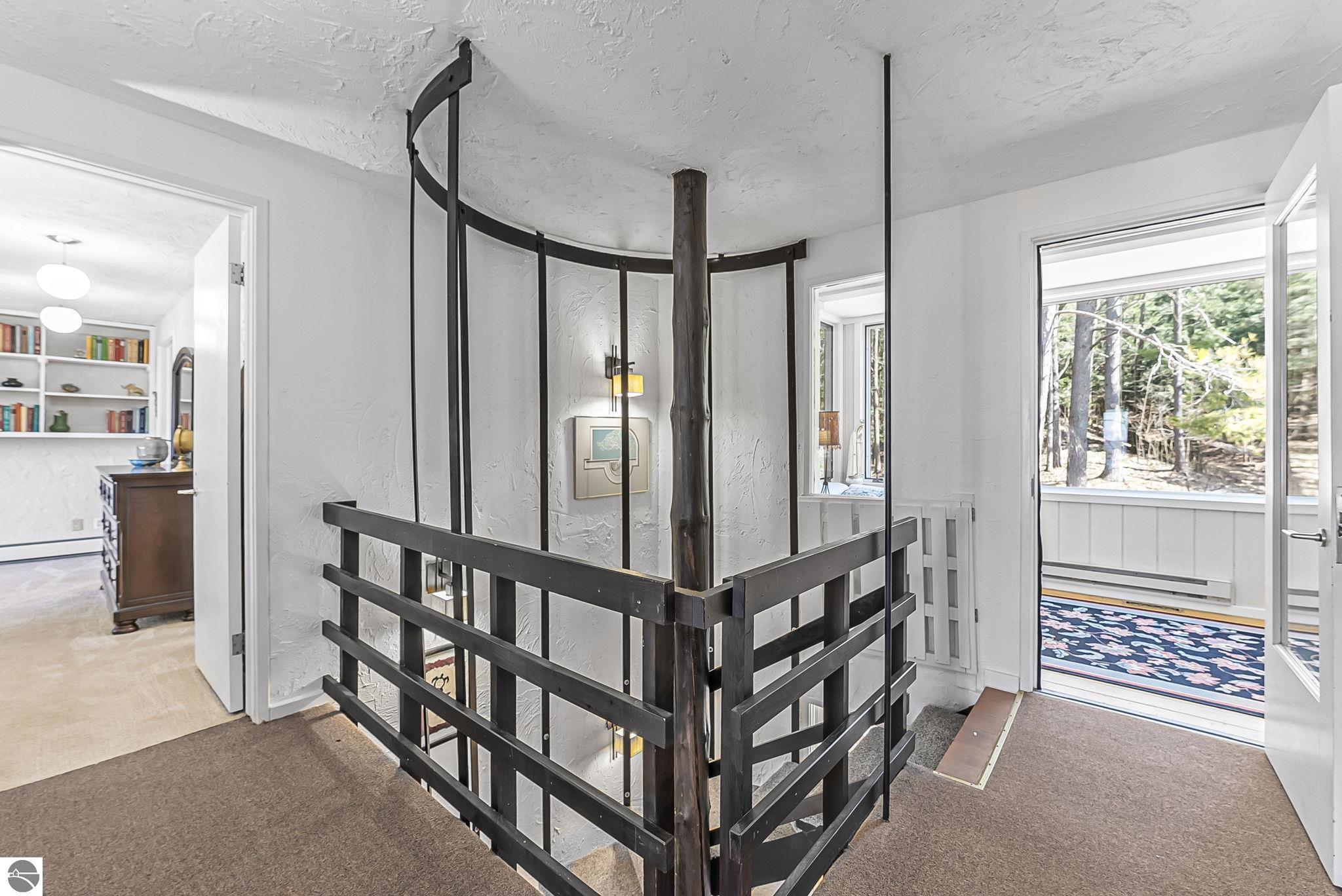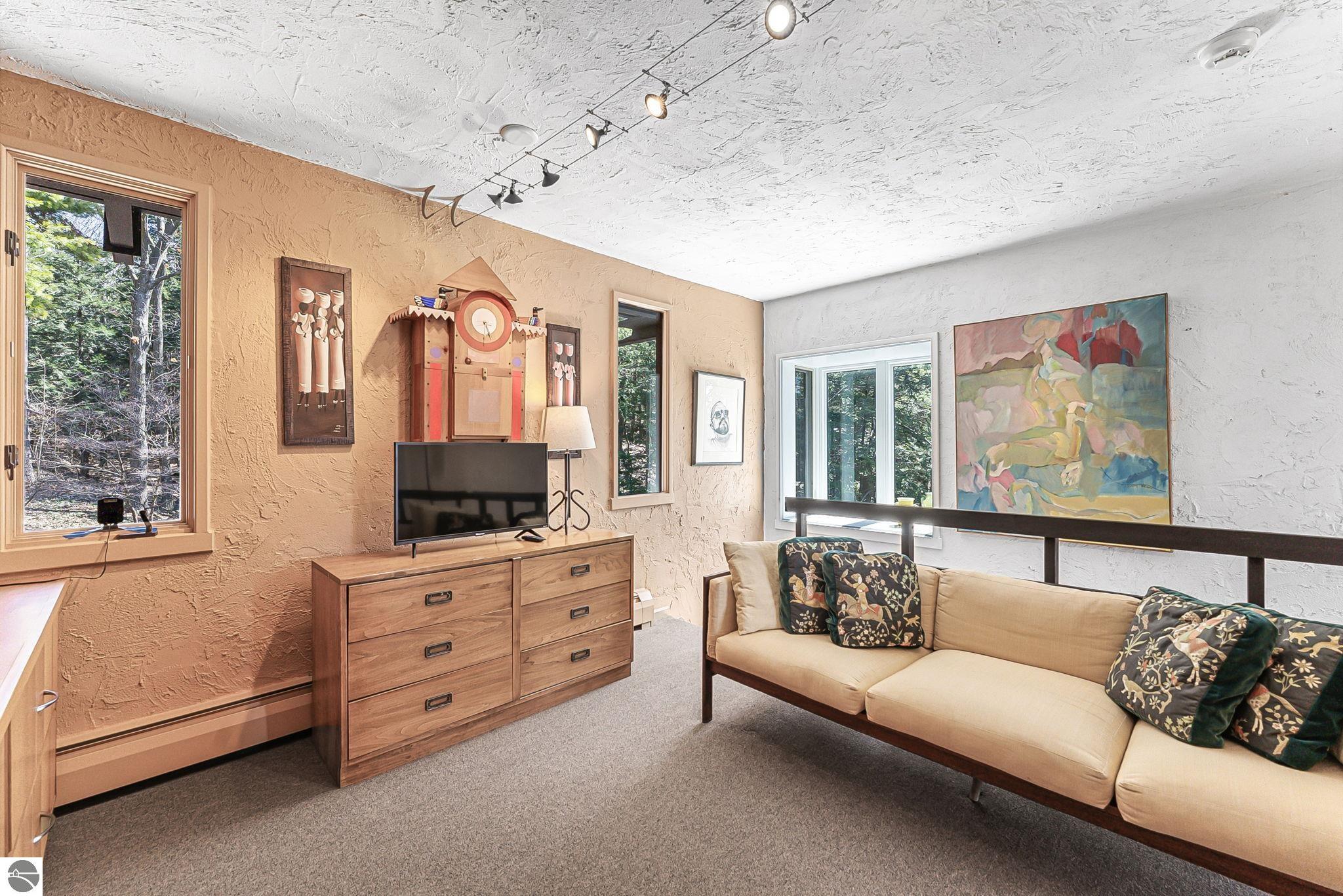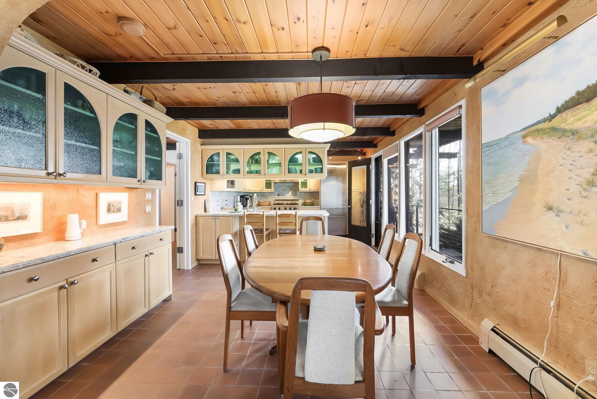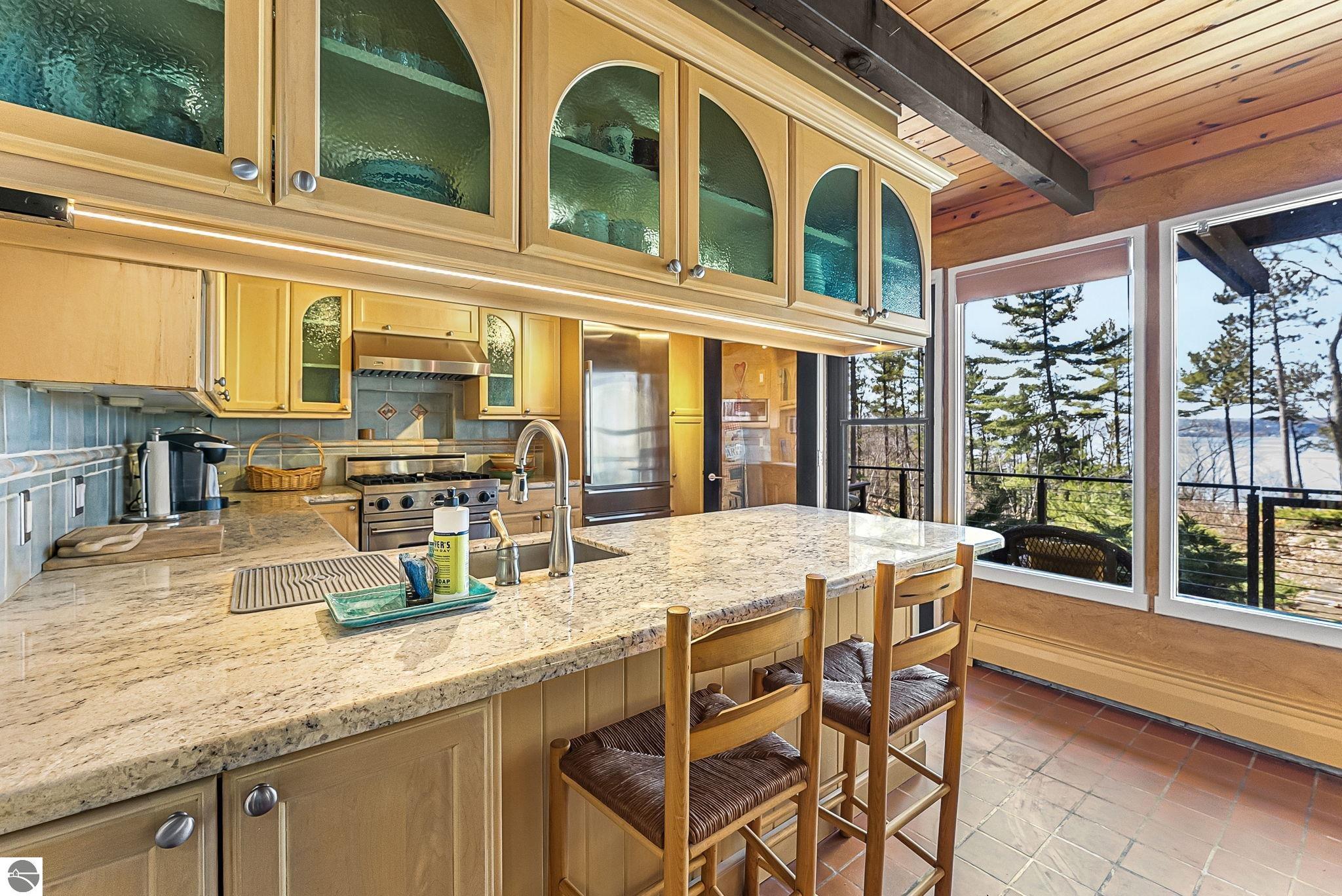 Set near the coveted base of Old Mission Peninsula, this exceptional property offers a rare combination of scale, privacy, and proximity--features seldom found in a single offering. The beautiful and unique architecture of this home is like no other on Old Mission. With just over six acres, the estate presents an extraordinary opportunity in one of Traverse City's most sought-after locations, where acreage of this magnitude is virtually unheard of. The 3,500-square-foot residence is thoughtfully positioned to capture sweeping sunset views over West Bay, with a front-row seat to summer airshows, holiday fireworks, and the ever-changing rhythm of boat traffic along the shoreline. The home offers several separate family areas for entertaining, celebrating family or simply downtime in the cozy and warm interior. Expansive windows and well-proportioned living spaces bring the outdoors in, creating a seamless connection to the surrounding landscape. With three bedrooms and three baths, the home is both substantial and comfortable, offering flexibility for year-round living or a refined seasonal retreat. Just minutes from downtown Traverse City, yet removed enough to feel private and serene, this is a truly rare holding on Old Mission Peninsula--where location, land, and view converge in a way that is increasingly difficult to find. A lower level workshop with tons of storage and a really nice sized garden shed are another bonus with this property. The Views are incredible and the wooded and rolling acreage offers so many opportunities you wont find with other homes.
