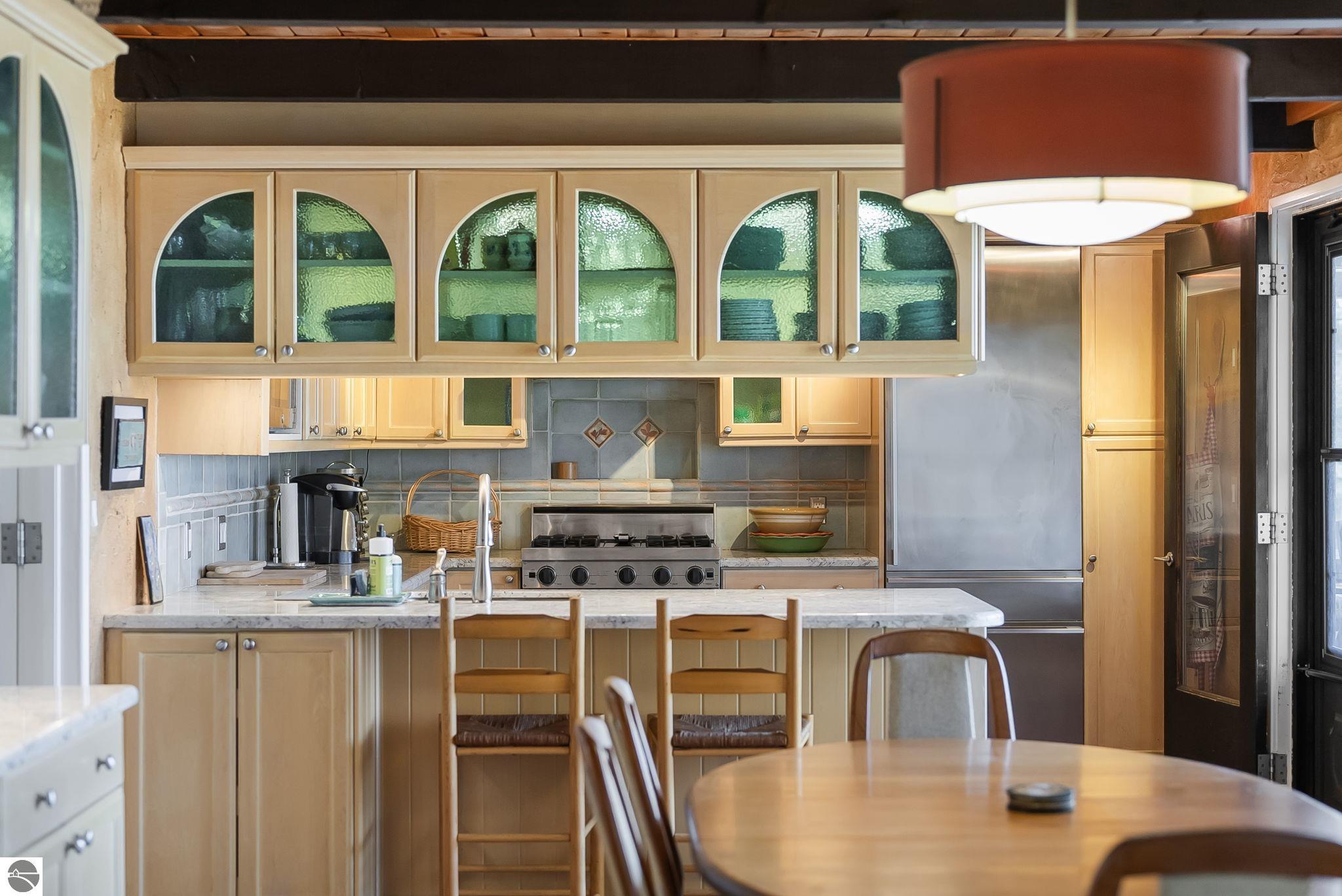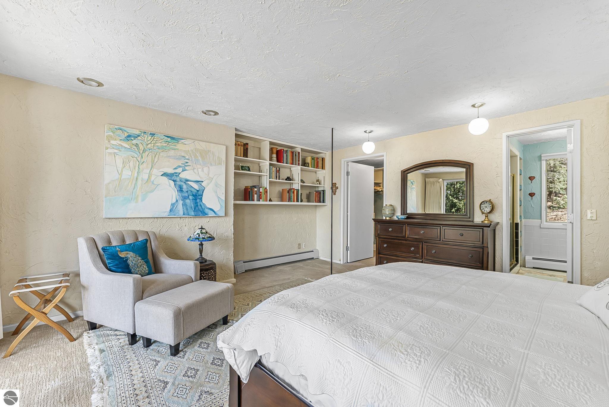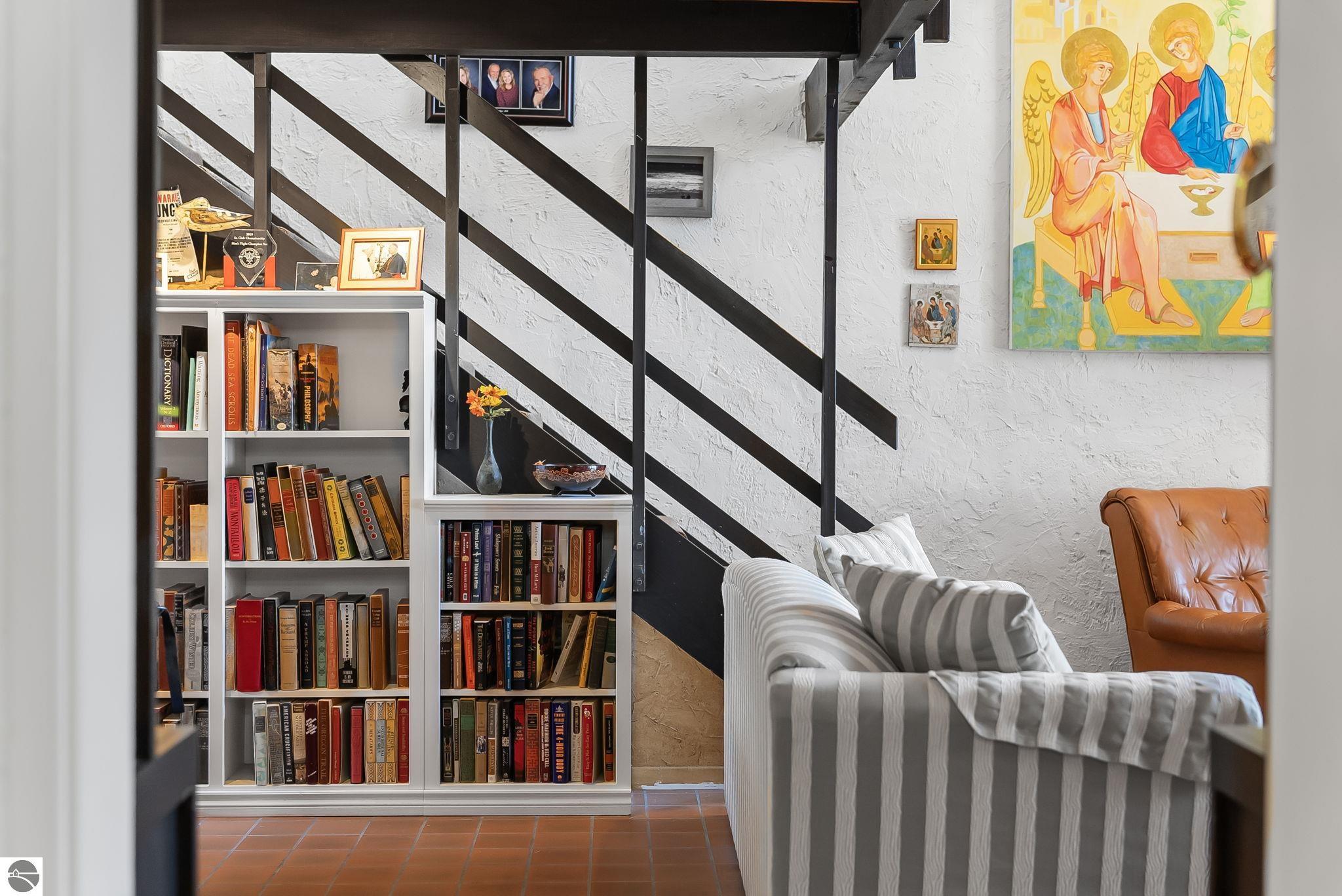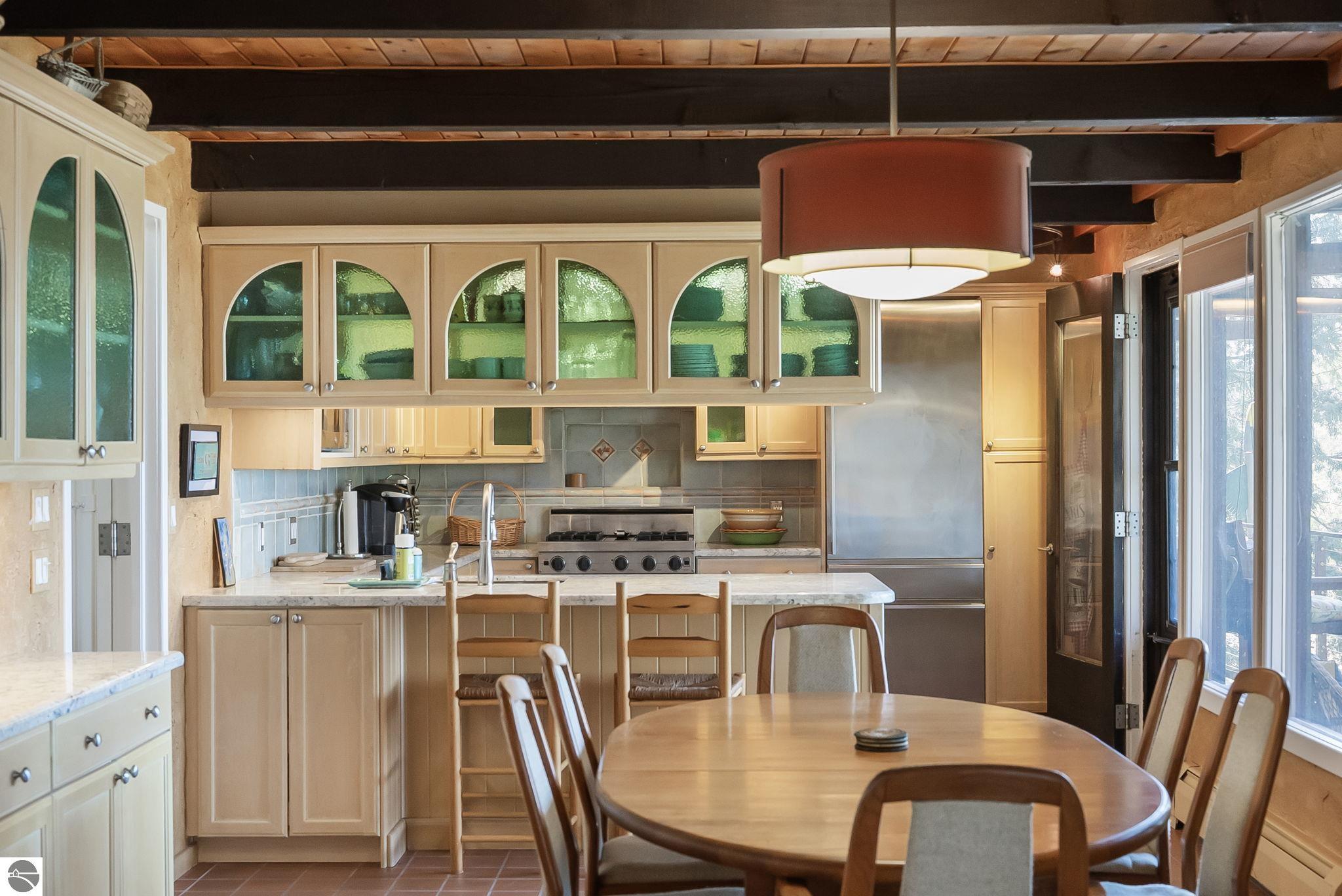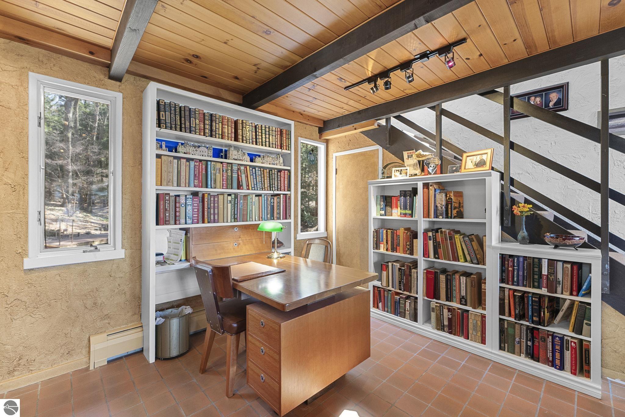 Set near the coveted base of Old Mission Peninsula, this exceptional property offers a rare combination of scale, privacy, and proximity--features seldom found in a single offering. The beautiful and unique architecture of this home is like no other on Old Mission. With just over six acres, the estate presents an extraordinary opportunity in one of Traverse City's most sought-after locations, where acreage of this magnitude is virtually unheard of. The 3,500-square-foot residence is thoughtfully positioned to capture sweeping sunset views over West Bay, with a front-row seat to summer airshows, holiday fireworks, and the ever-changing rhythm of boat traffic along the shoreline. The home offers several separate family areas for entertaining, celebrating family or simply downtime in the cozy and warm interior. Expansive windows and well-proportioned living spaces bring the outdoors in, creating a seamless connection to the surrounding landscape. With three bedrooms and three baths, the home is both substantial and comfortable, offering flexibility for year-round living or a refined seasonal retreat. Just minutes from downtown Traverse City, yet removed enough to feel private and serene, this is a truly rare holding on Old Mission Peninsula--where location, land, and view converge in a way that is increasingly difficult to find. A lower level workshop with tons of storage and a really nice sized garden shed are another bonus with this property. The Views are incredible and the wooded and rolling acreage offers so many opportunities you wont find with other homes.