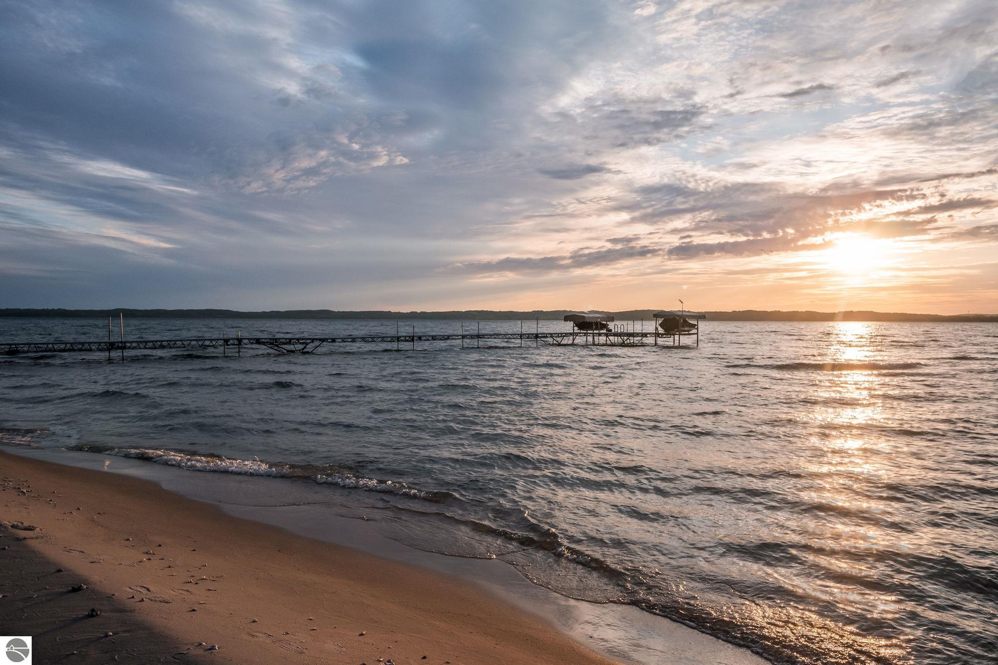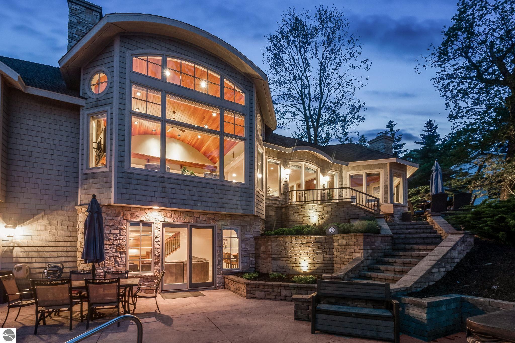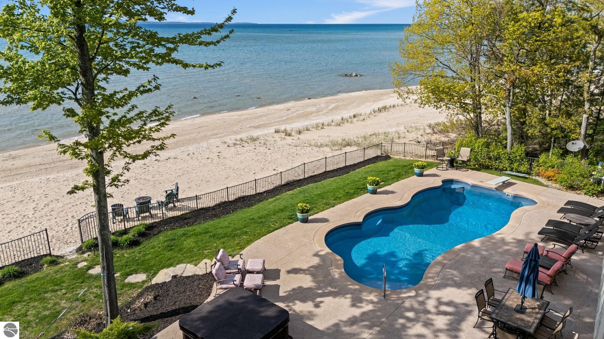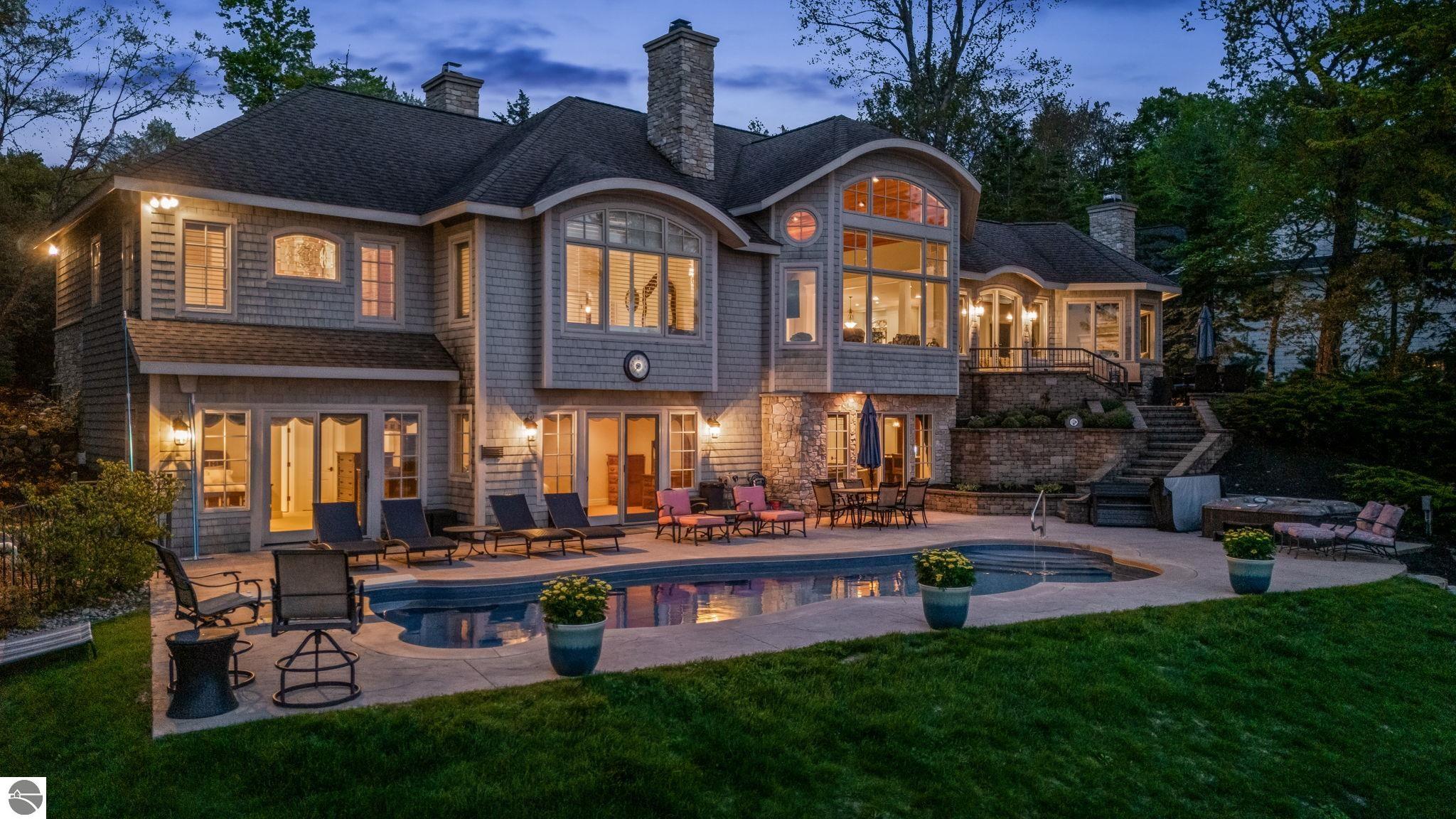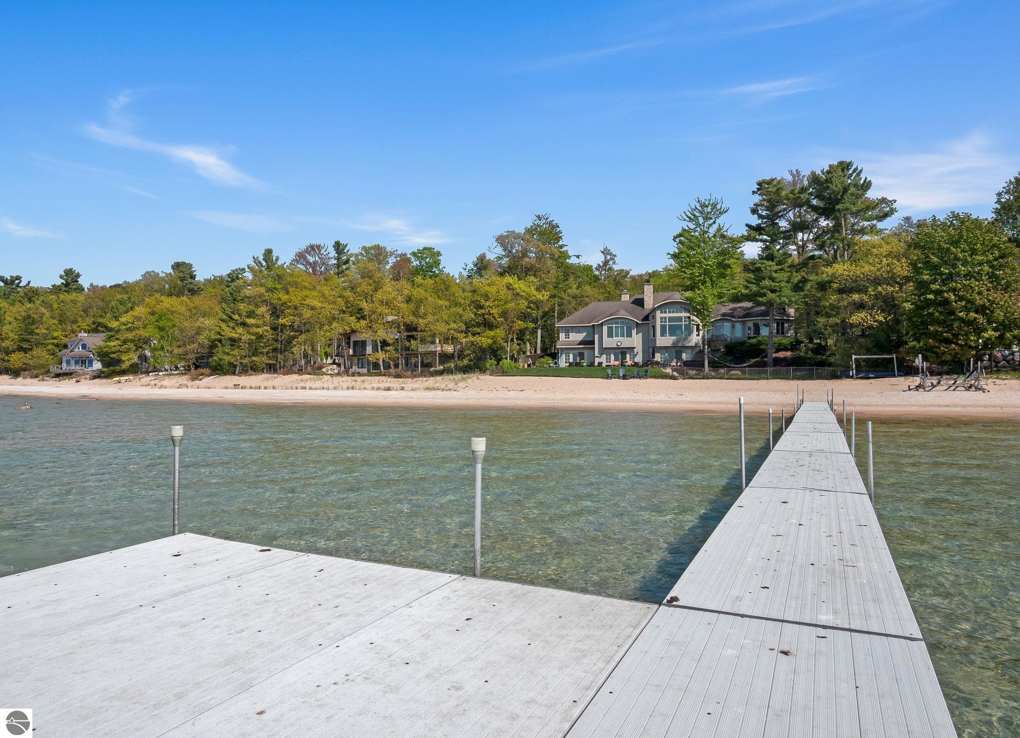 The name says it all-Beautiful Shores. This extraordinary property offers 150' of private West Grand Traverse Bay frontage with a beautiful sandy beach and sweeping west-facing views of Power Island and unforgettable sunsets. A true reflection of everything Traverse City has to offer. Set on an acre with incredible privacy, this 6300-square-foot Craftsman-style home was built by one of the areas top builders and exudes warmth, quality and character throughout. With four very sizable bedrooms, ensuites in the lower level and a jaw dropping master bath on the main floor the layout is functional and inviting. The closet space in this home is exceptional with solid built-ins in each of them. The heart of the home is a gourmet kitchen quipped with high-end appliances and top of the line timeless cabinetry. Just off the kitchen prepare to be in love with this thoughtfully designed multi-purpose mudroom, laundry room and a dedicated homework zone-perfect for the busy family. The lower level has a second laundry room, workout room and wet bar along with a comfortable and inviting family living space. Enjioy the ease of the elevator that goes to all three floors for convenience and generational assistance. "Above the garage, a private guest apartment-perfect for visiting family or in-laws, offers a full kitchenette, a spa like bath, and elevator access. A quiet space to make coffee, unwind and recharge after along day on the beach." Walls of windows flood the home with natural light and frame captivating views of the blue water. Outdoors, enjoy the lush, mature landscaping and a quiet, private drive with stone pillars-ready for a gate if added privacy is desired. A rare and coveted amenity: the added in-ground pool that overlooks West Bay, allowing you to swim and soak in the views. This once in a generation offering on one of Traverse City's most desirable shorelines. And those Sunsets!!!!