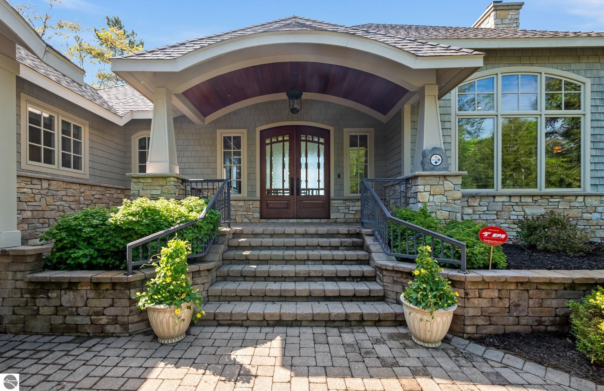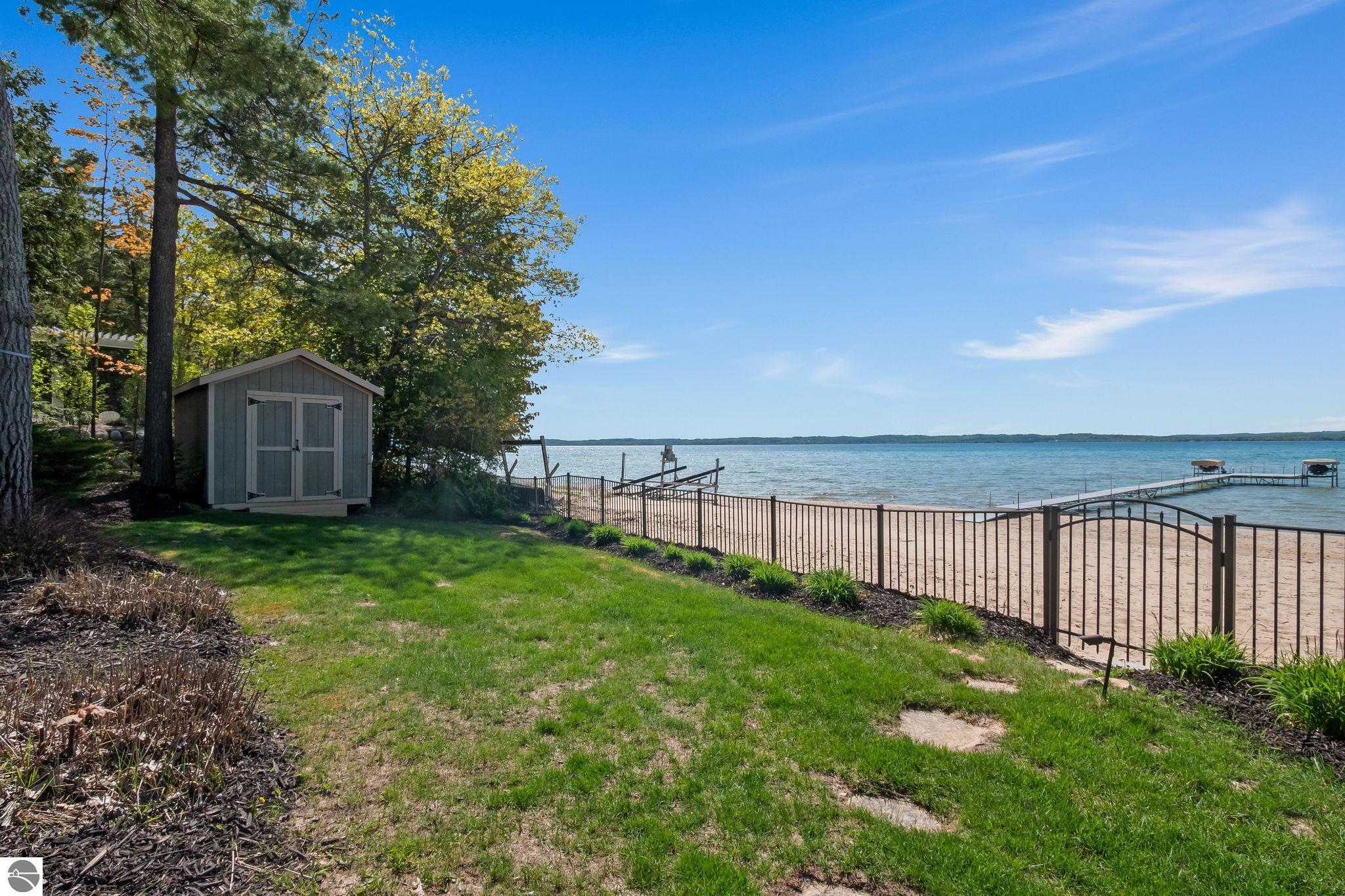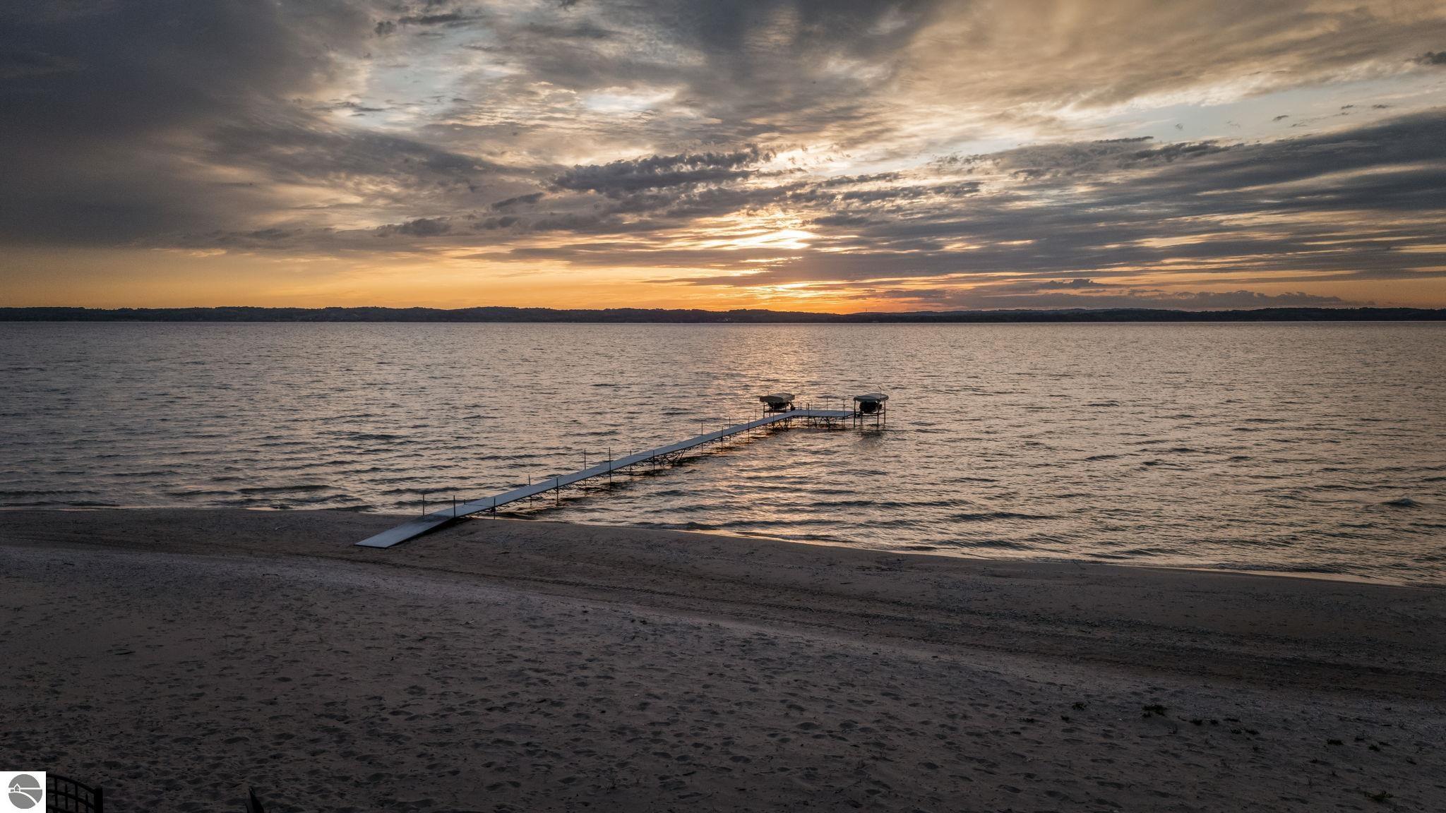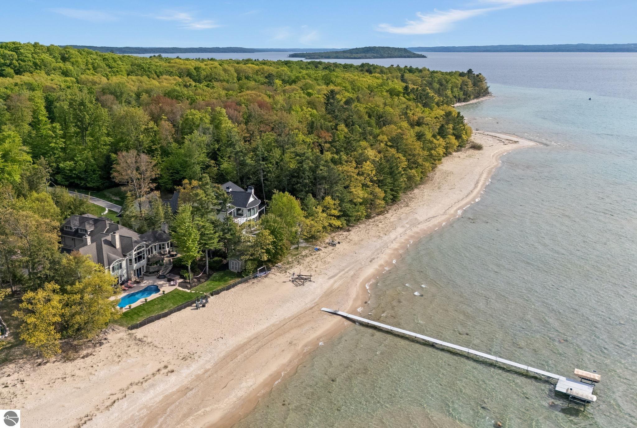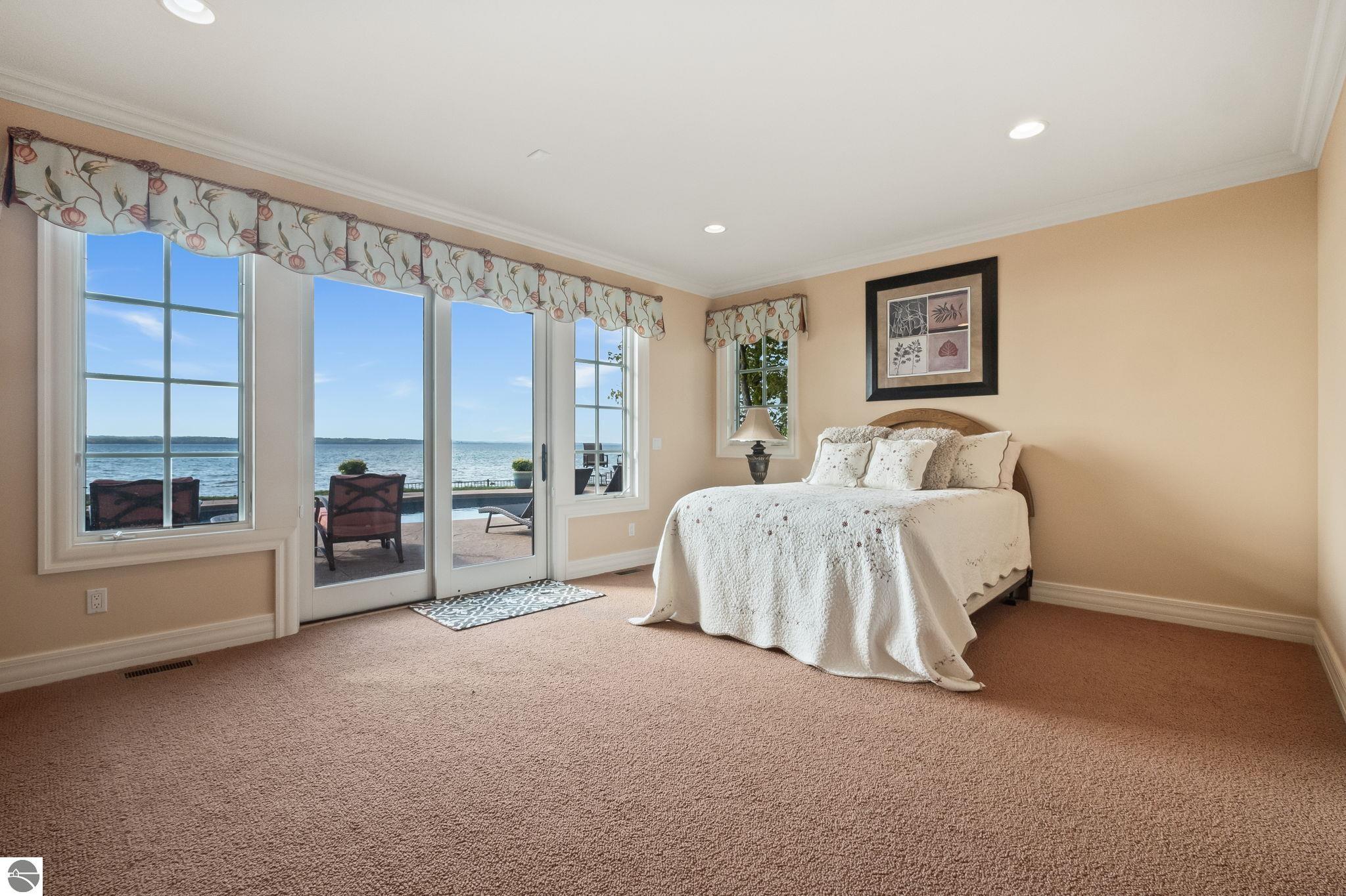 The name says it all-Beautiful Shores. This extraordinary property offers 150' of private West Grand Traverse Bay frontage with a beautiful sandy beach and sweeping west-facing views of Power Island and unforgettable sunsets. A true reflection of everything Traverse City has to offer. Set on an acre with incredible privacy, this 6300-square-foot Craftsman-style home was built by one of the areas top builders and exudes warmth, quality and character throughout. With four very sizable bedrooms, ensuites in the lower level and a jaw dropping master bath on the main floor the layout is functional and inviting. The closet space in this home is exceptional with solid built-ins in each of them. The heart of the home is a gourmet kitchen quipped with high-end appliances and top of the line timeless cabinetry. Just off the kitchen prepare to be in love with this thoughtfully designed multi-purpose mudroom, laundry room and a dedicated homework zone-perfect for the busy family. The lower level has a second laundry room, workout room and wet bar along with a comfortable and inviting family living space. Enjioy the ease of the elevator that goes to all three floors for convenience and generational assistance. "Above the garage, a private guest apartment-perfect for visiting family or in-laws, offers a full kitchenette, a spa like bath, and elevator access. A quiet space to make coffee, unwind and recharge after along day on the beach." Walls of windows flood the home with natural light and frame captivating views of the blue water. Outdoors, enjoy the lush, mature landscaping and a quiet, private drive with stone pillars-ready for a gate if added privacy is desired. A rare and coveted amenity: the added in-ground pool that overlooks West Bay, allowing you to swim and soak in the views. This once in a generation offering on one of Traverse City's most desirable shorelines. And those Sunsets!!!!