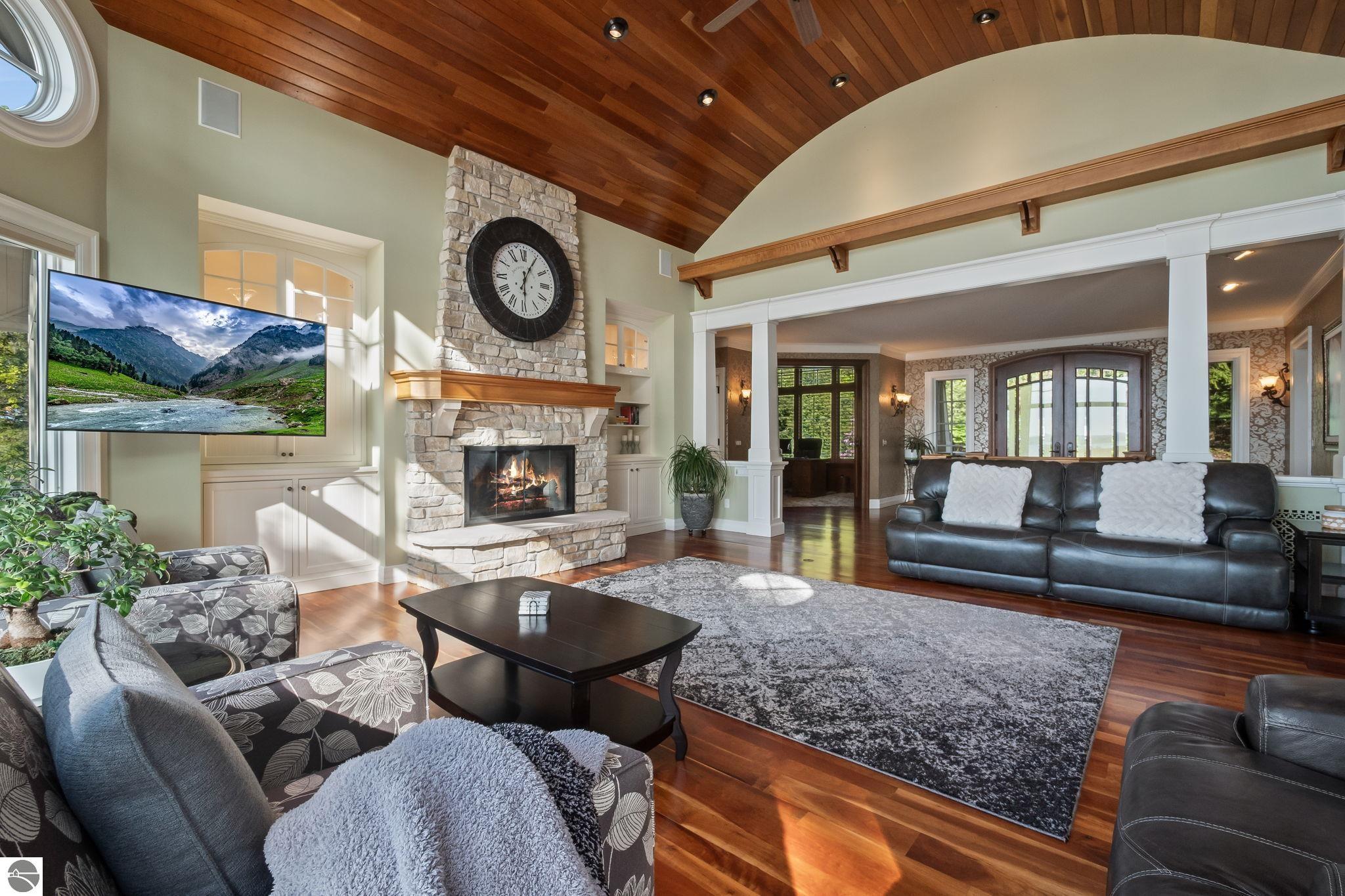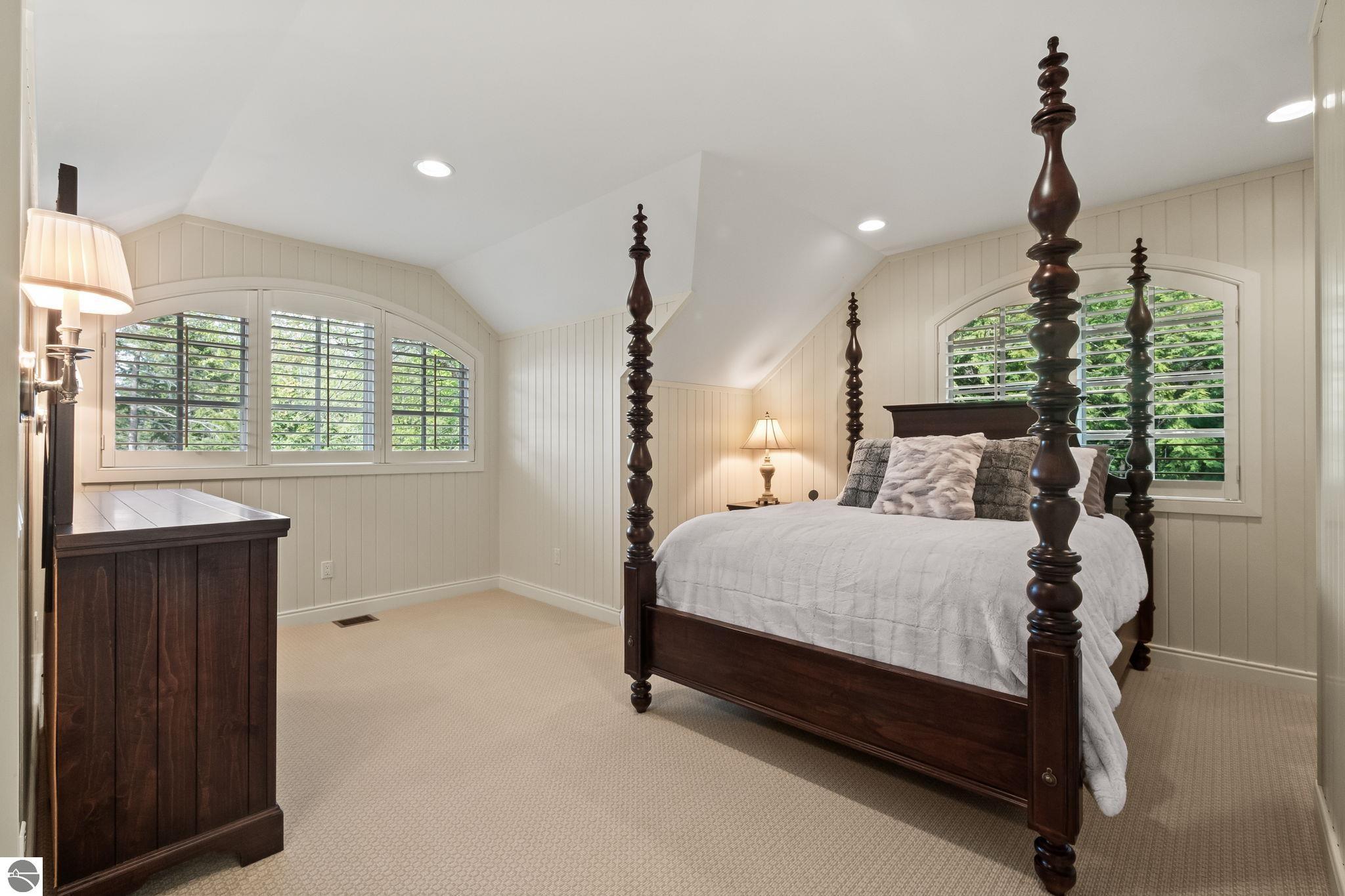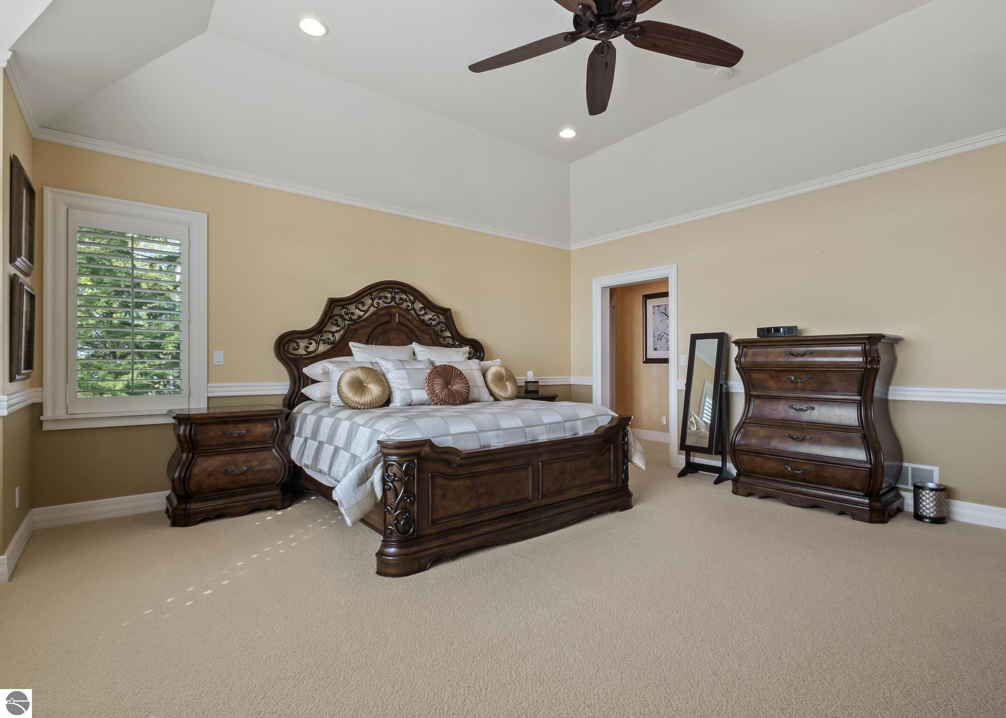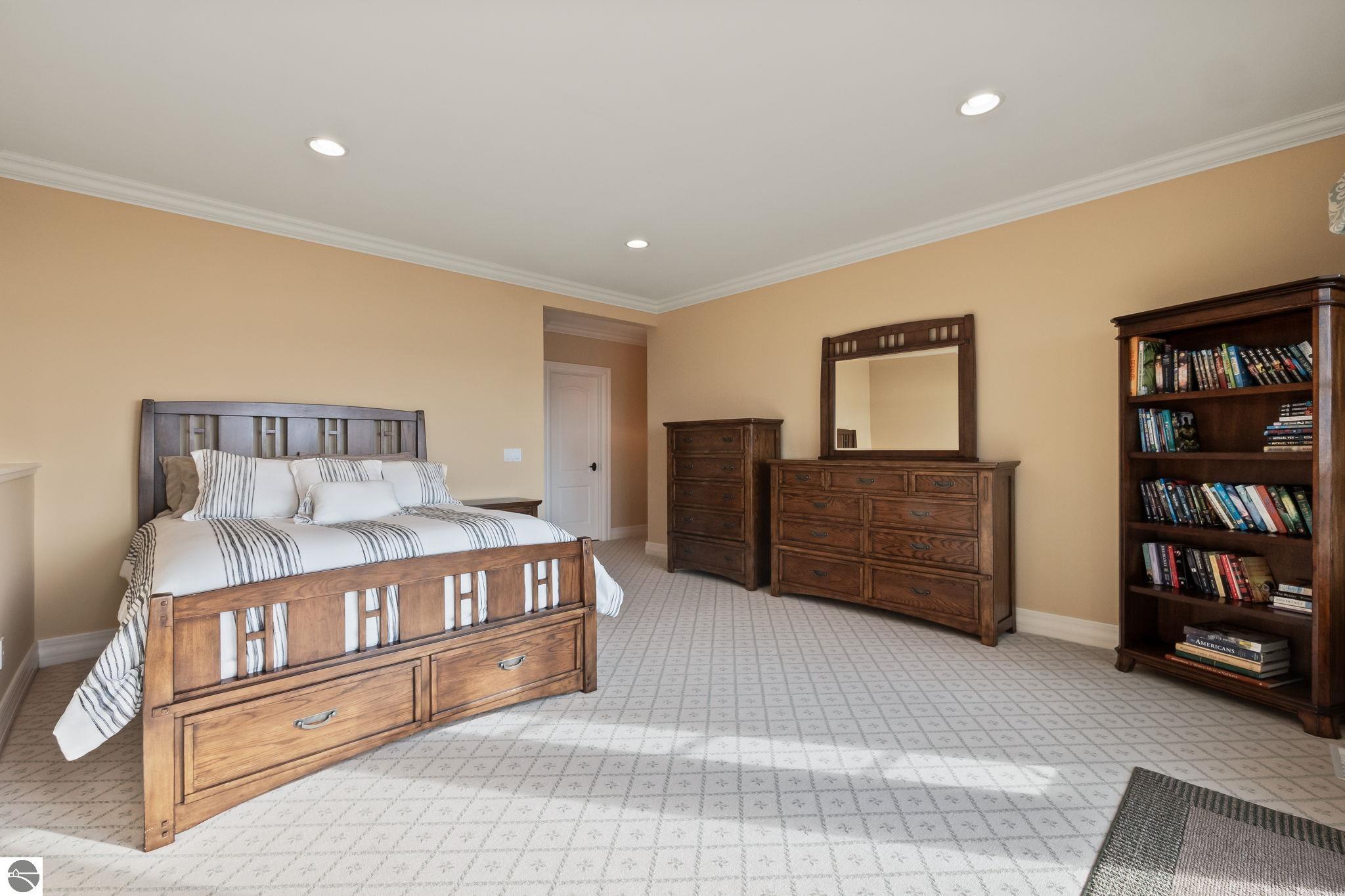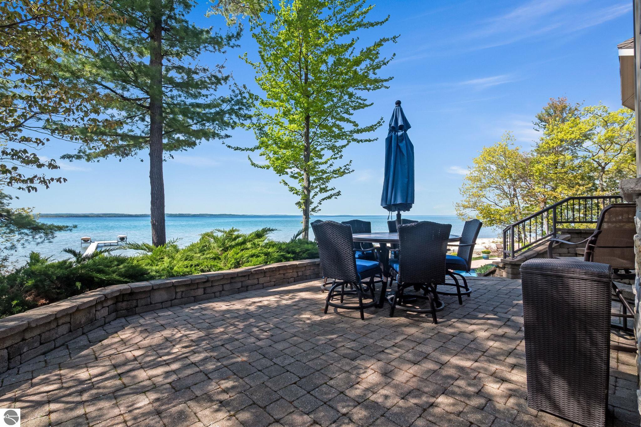 The name says it all-Beautiful Shores. This extraordinary property offers 150' of private West Grand Traverse Bay frontage with a beautiful sandy beach and sweeping west-facing views of Power Island and unforgettable sunsets. A true reflection of everything Traverse City has to offer. Set on an acre with incredible privacy, this 6300-square-foot Craftsman-style home was built by one of the areas top builders and exudes warmth, quality and character throughout. With four very sizable bedrooms, ensuites in the lower level and a jaw dropping master bath on the main floor the layout is functional and inviting. The closet space in this home is exceptional with solid built-ins in each of them. The heart of the home is a gourmet kitchen quipped with high-end appliances and top of the line timeless cabinetry. Just off the kitchen prepare to be in love with this thoughtfully designed multi-purpose mudroom, laundry room and a dedicated homework zone-perfect for the busy family. The lower level has a second laundry room, workout room and wet bar along with a comfortable and inviting family living space. Enjioy the ease of the elevator that goes to all three floors for convenience and generational assistance. "Above the garage, a private guest apartment-perfect for visiting family or in-laws, offers a full kitchenette, a spa like bath, and elevator access. A quiet space to make coffee, unwind and recharge after along day on the beach." Walls of windows flood the home with natural light and frame captivating views of the blue water. Outdoors, enjoy the lush, mature landscaping and a quiet, private drive with stone pillars-ready for a gate if added privacy is desired. A rare and coveted amenity: the added in-ground pool that overlooks West Bay, allowing you to swim and soak in the views. This once in a generation offering on one of Traverse City's most desirable shorelines. And those Sunsets!!!!