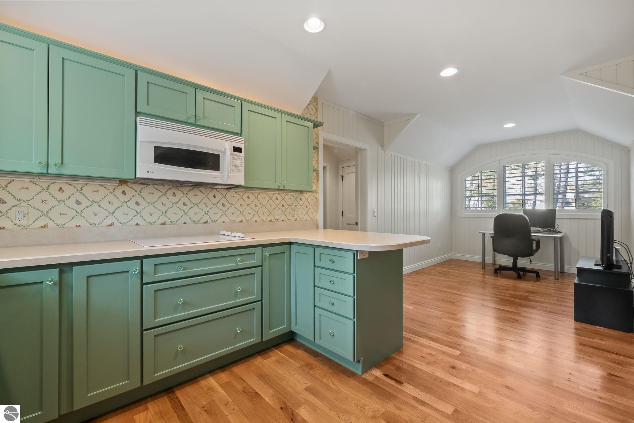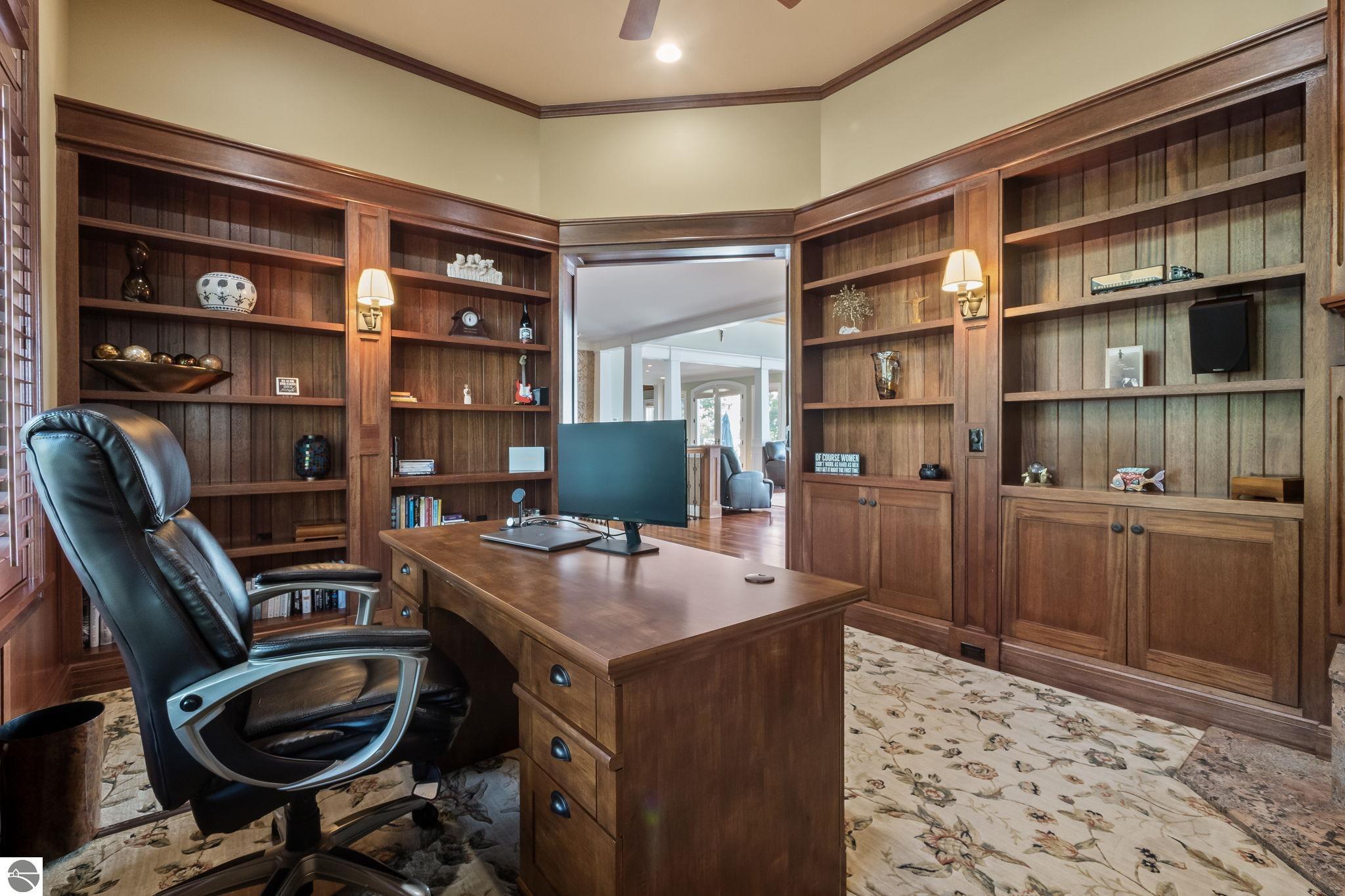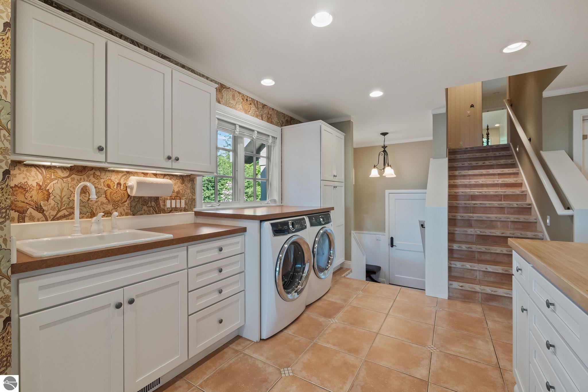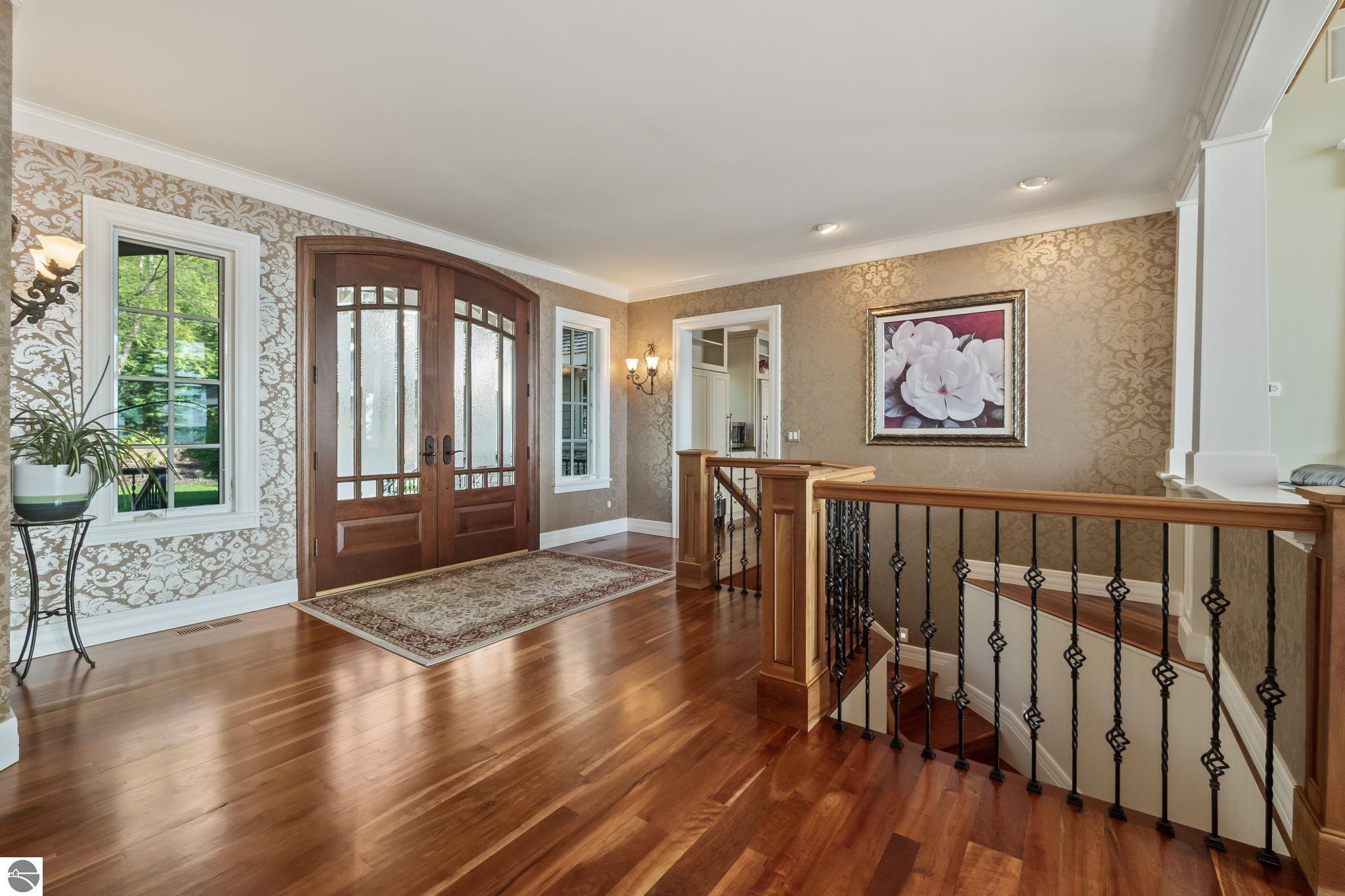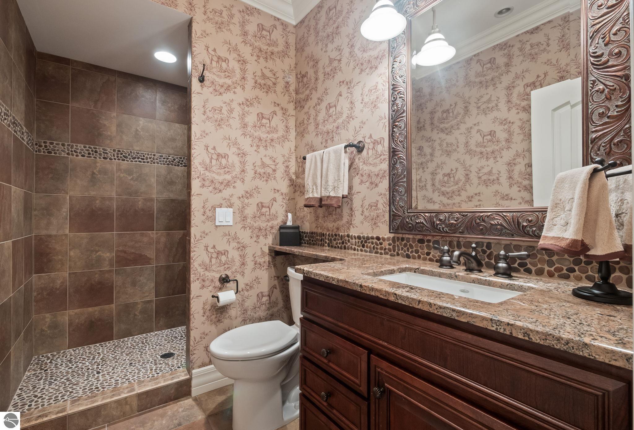 The name says it all-Beautiful Shores. This extraordinary property offers 150' of private West Grand Traverse Bay frontage with a beautiful sandy beach and sweeping west-facing views of Power Island and unforgettable sunsets. A true reflection of everything Traverse City has to offer. Set on an acre with incredible privacy, this 6300-square-foot Craftsman-style home was built by one of the areas top builders and exudes warmth, quality and character throughout. With four very sizable bedrooms, ensuites in the lower level and a jaw dropping master bath on the main floor the layout is functional and inviting. The closet space in this home is exceptional with solid built-ins in each of them. The heart of the home is a gourmet kitchen quipped with high-end appliances and top of the line timeless cabinetry. Just off the kitchen prepare to be in love with this thoughtfully designed multi-purpose mudroom, laundry room and a dedicated homework zone-perfect for the busy family. The lower level has a second laundry room, workout room and wet bar along with a comfortable and inviting family living space. Enjioy the ease of the elevator that goes to all three floors for convenience and generational assistance. "Above the garage, a private guest apartment-perfect for visiting family or in-laws, offers a full kitchenette, a spa like bath, and elevator access. A quiet space to make coffee, unwind and recharge after along day on the beach." Walls of windows flood the home with natural light and frame captivating views of the blue water. Outdoors, enjoy the lush, mature landscaping and a quiet, private drive with stone pillars-ready for a gate if added privacy is desired. A rare and coveted amenity: the added in-ground pool that overlooks West Bay, allowing you to swim and soak in the views. This once in a generation offering on one of Traverse City's most desirable shorelines. And those Sunsets!!!!