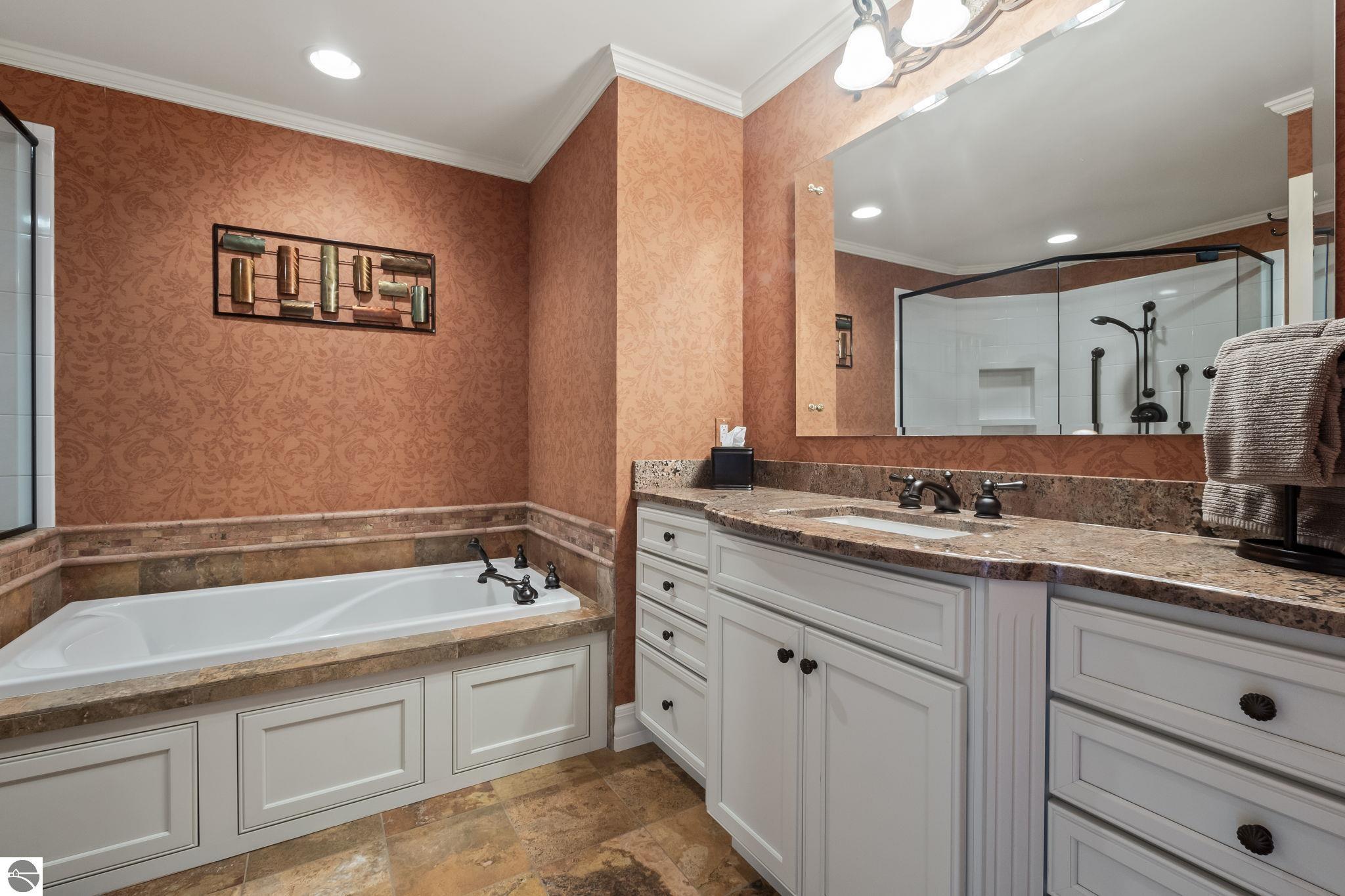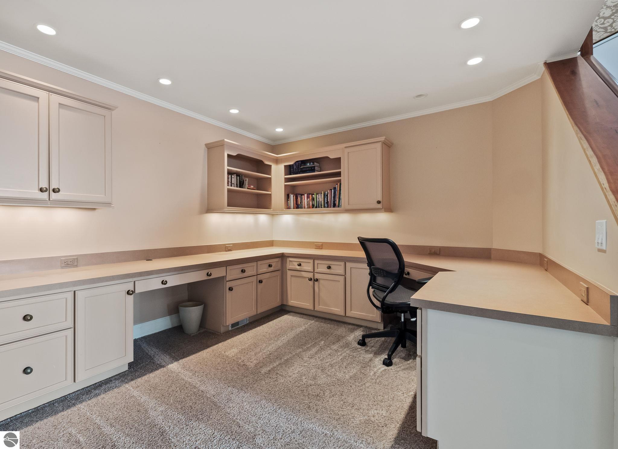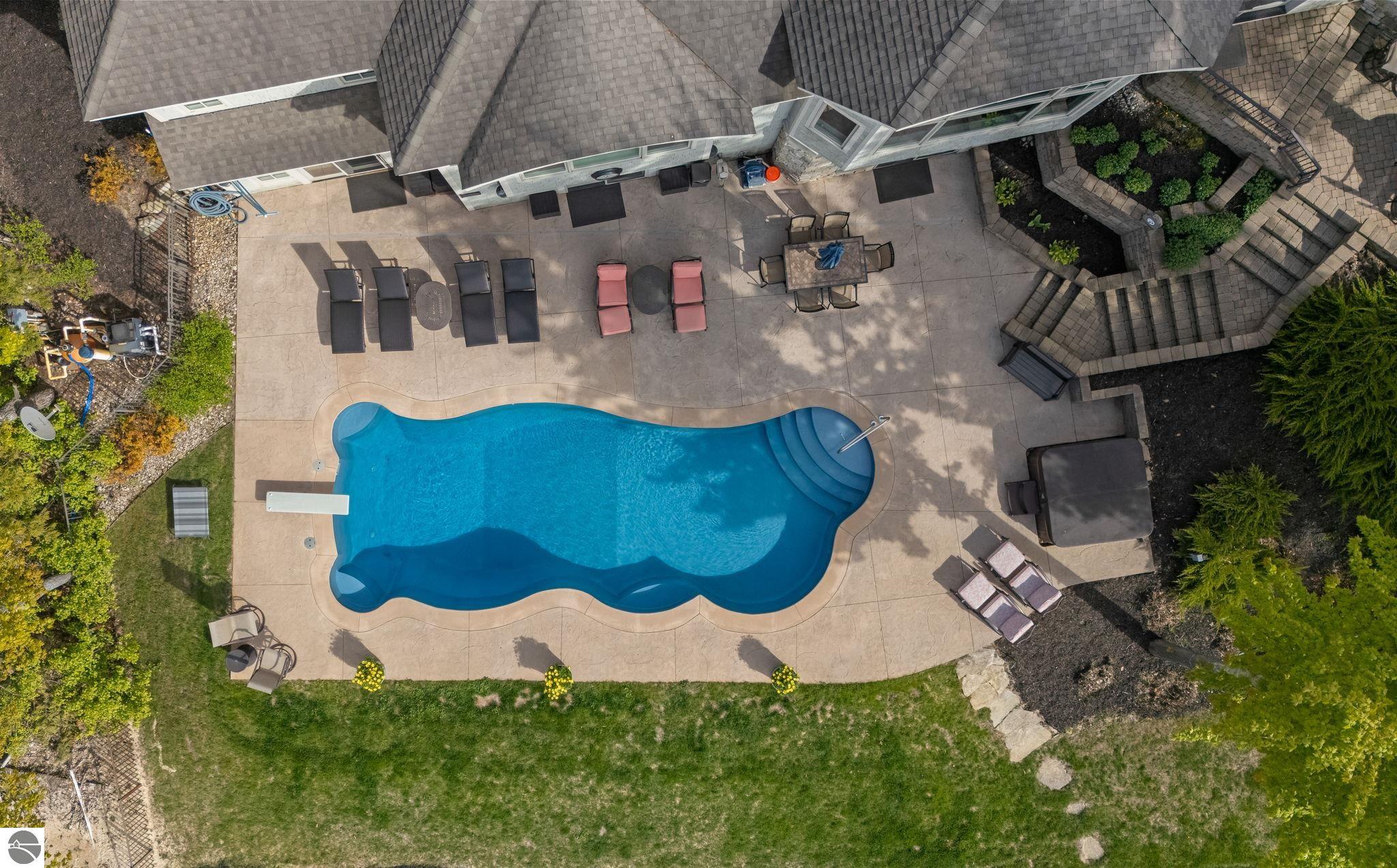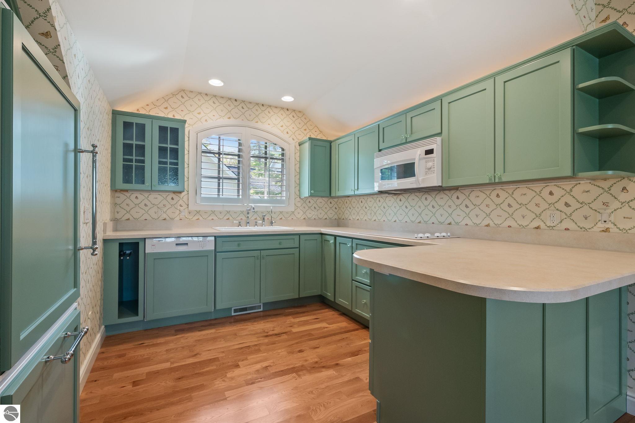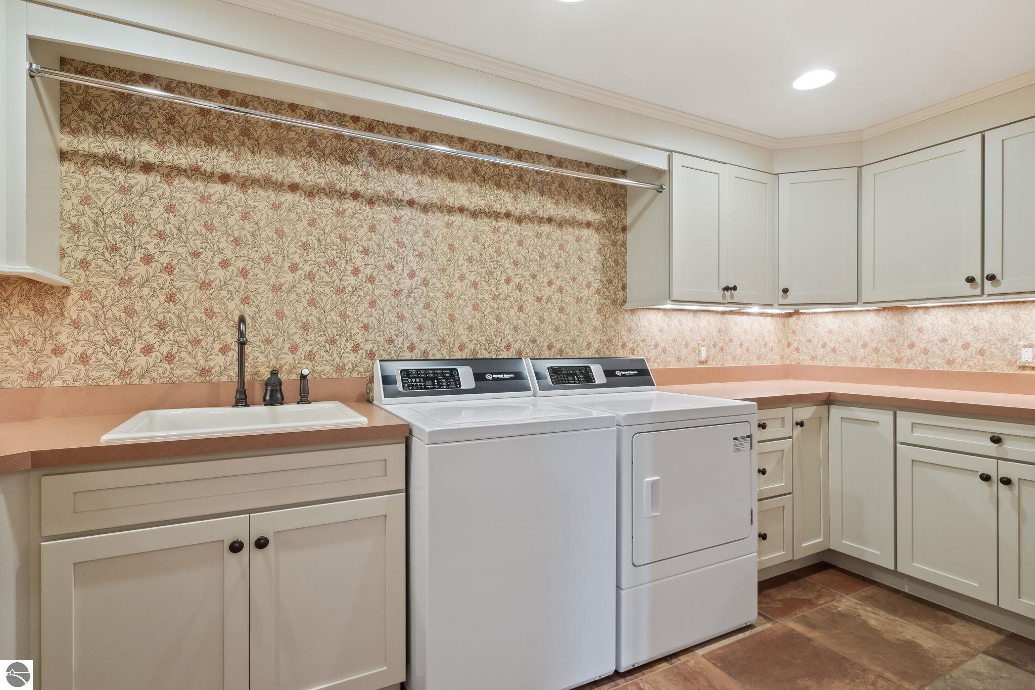 The name says it all-Beautiful Shores. This extraordinary property offers 150' of private West Grand Traverse Bay frontage with a beautiful sandy beach and sweeping west-facing views of Power Island and unforgettable sunsets. A true reflection of everything Traverse City has to offer. Set on an acre with incredible privacy, this 6300-square-foot Craftsman-style home was built by one of the areas top builders and exudes warmth, quality and character throughout. With four very sizable bedrooms, ensuites in the lower level and a jaw dropping master bath on the main floor the layout is functional and inviting. The closet space in this home is exceptional with solid built-ins in each of them. The heart of the home is a gourmet kitchen quipped with high-end appliances and top of the line timeless cabinetry. Just off the kitchen prepare to be in love with this thoughtfully designed multi-purpose mudroom, laundry room and a dedicated homework zone-perfect for the busy family. The lower level has a second laundry room, workout room and wet bar along with a comfortable and inviting family living space. Enjioy the ease of the elevator that goes to all three floors for convenience and generational assistance. "Above the garage, a private guest apartment-perfect for visiting family or in-laws, offers a full kitchenette, a spa like bath, and elevator access. A quiet space to make coffee, unwind and recharge after along day on the beach." Walls of windows flood the home with natural light and frame captivating views of the blue water. Outdoors, enjoy the lush, mature landscaping and a quiet, private drive with stone pillars-ready for a gate if added privacy is desired. A rare and coveted amenity: the added in-ground pool that overlooks West Bay, allowing you to swim and soak in the views. This once in a generation offering on one of Traverse City's most desirable shorelines. And those Sunsets!!!!